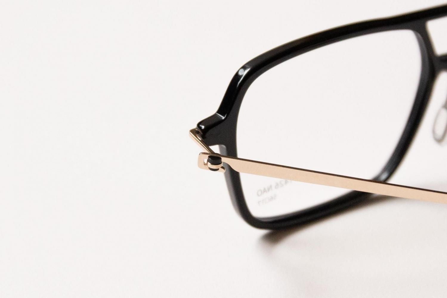 秘密は、ネジを使わない独自のエンゲージヒンジ構造。従来のメガネのようにネジを締めて固定するのではなく、計算されたテンションだけでフレームとテンプルがつながる設計になっている。