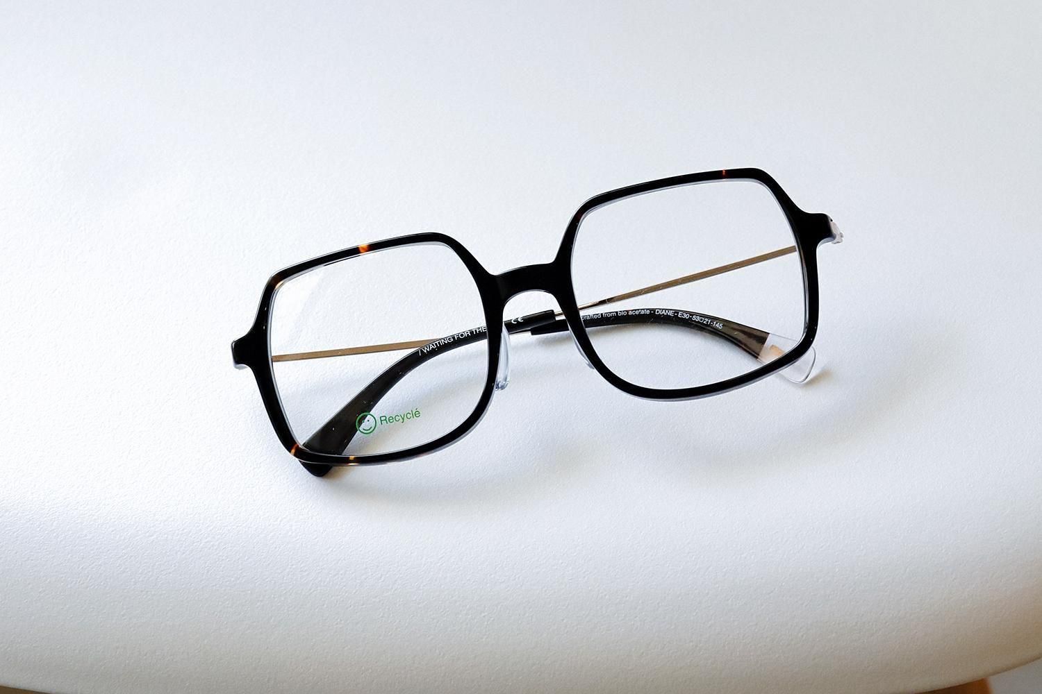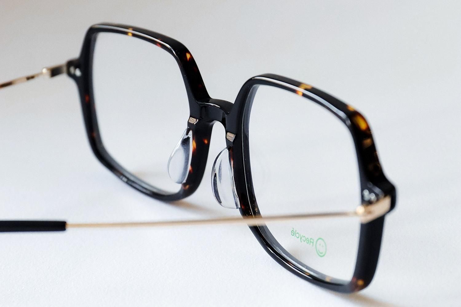 大胆な多角形シェイプに、濃いめのべっこう柄がのることで、まるでビンテージのアーカイブを再構築したような雰囲気。角ばっているのに、なんだか優しい。主張しているのに、どこか控えめ。