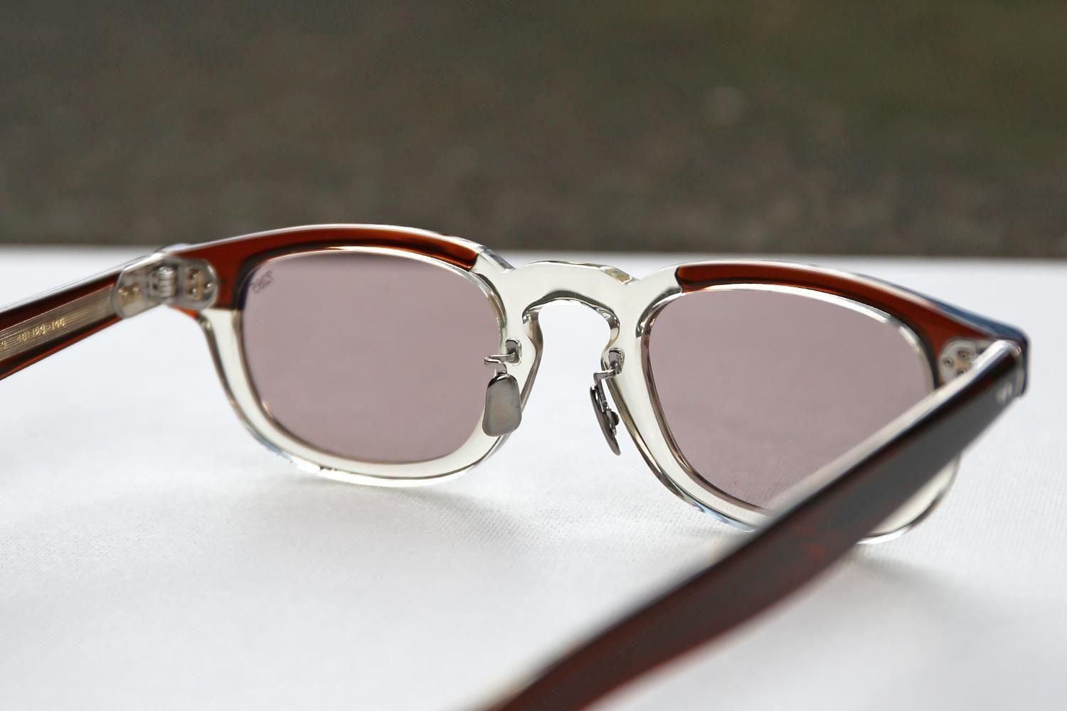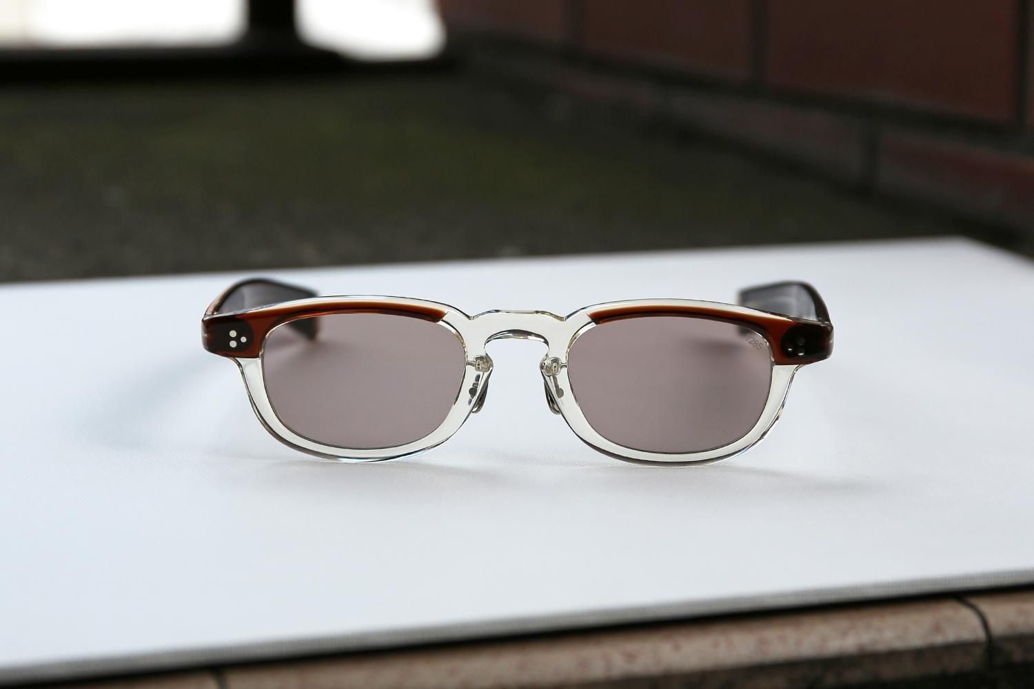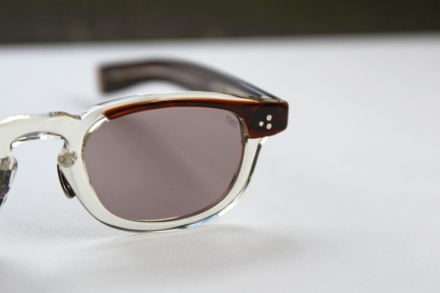 90年代に発売されたストリートブランドの名品の象徴的なスタイルを、今掛けたいバランスで表現したモデル。ディテールにおいては2+1PINカシメ(一つだけピンのサイズが違うカシメ構造)、ミリタリー丁番(ヴィンテージのミリタリーウェアのジッパーから着想を得た構造)など7285のアイコニックなパーツを用いた。サングラスは色味の調合からメーカーと開発したオリジナルの4ベースガラスレンズを採用(ORANGEとGREY RED MIRRORのみCR39)。GREY RED MIRRORレンズはメーカーの倉庫で適正な品質管理をされ保管されていたデッドストックの希少なレンズ。