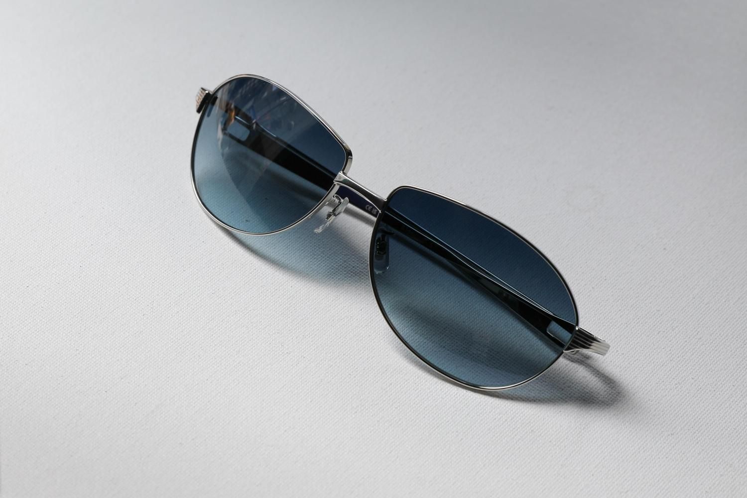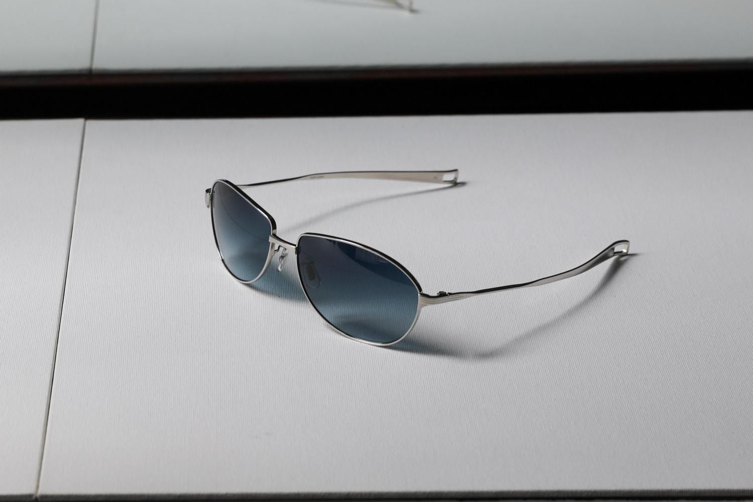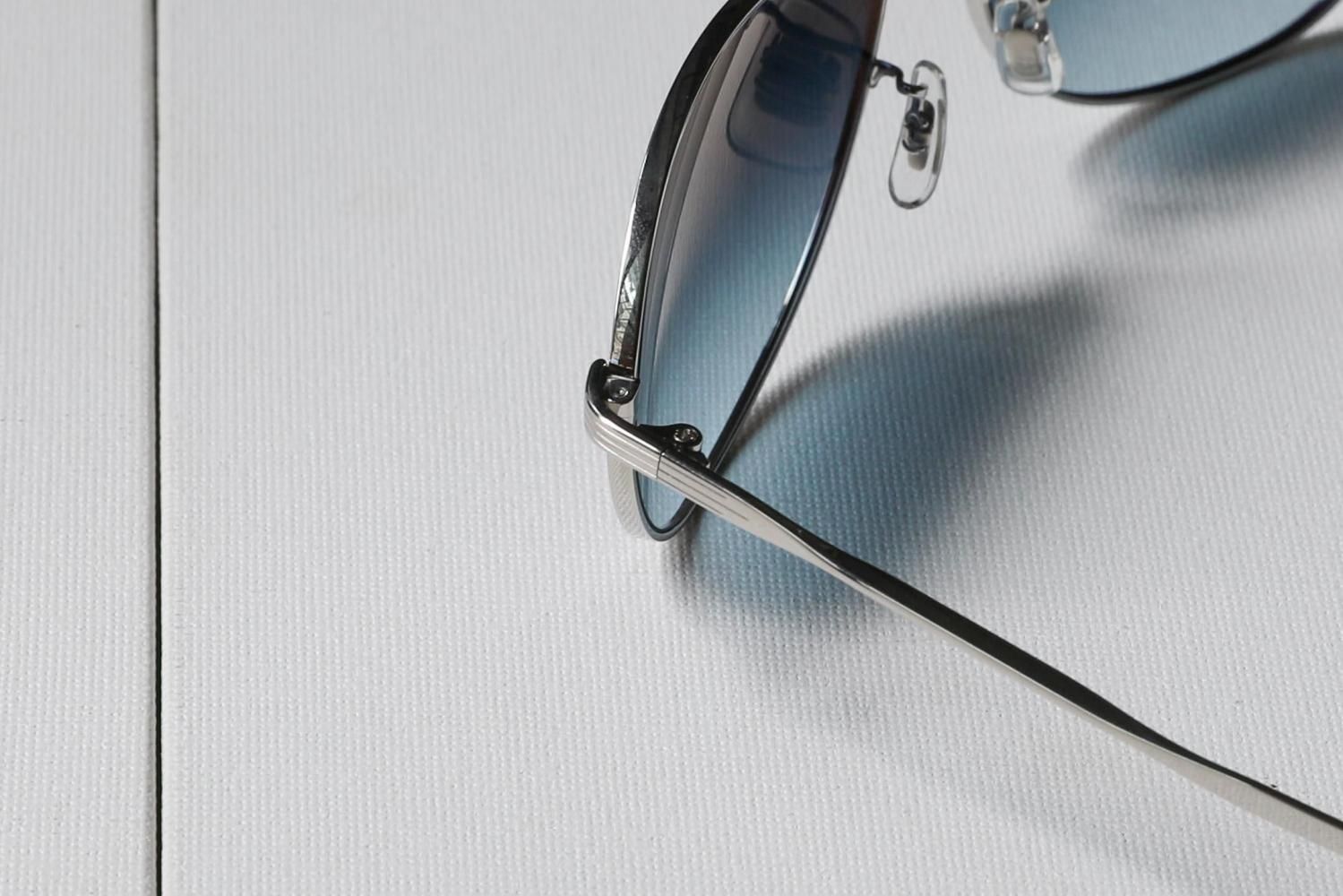 col.S-NV.FADE は艶のあるシルバーカラーに深いネイビー色のグラデーションレンズ。