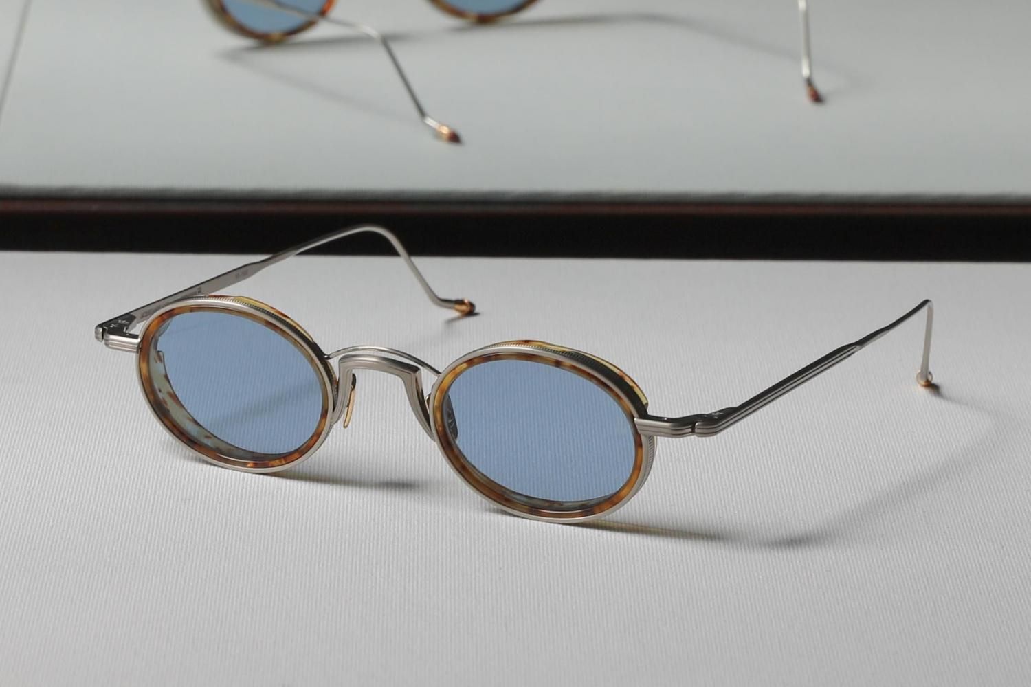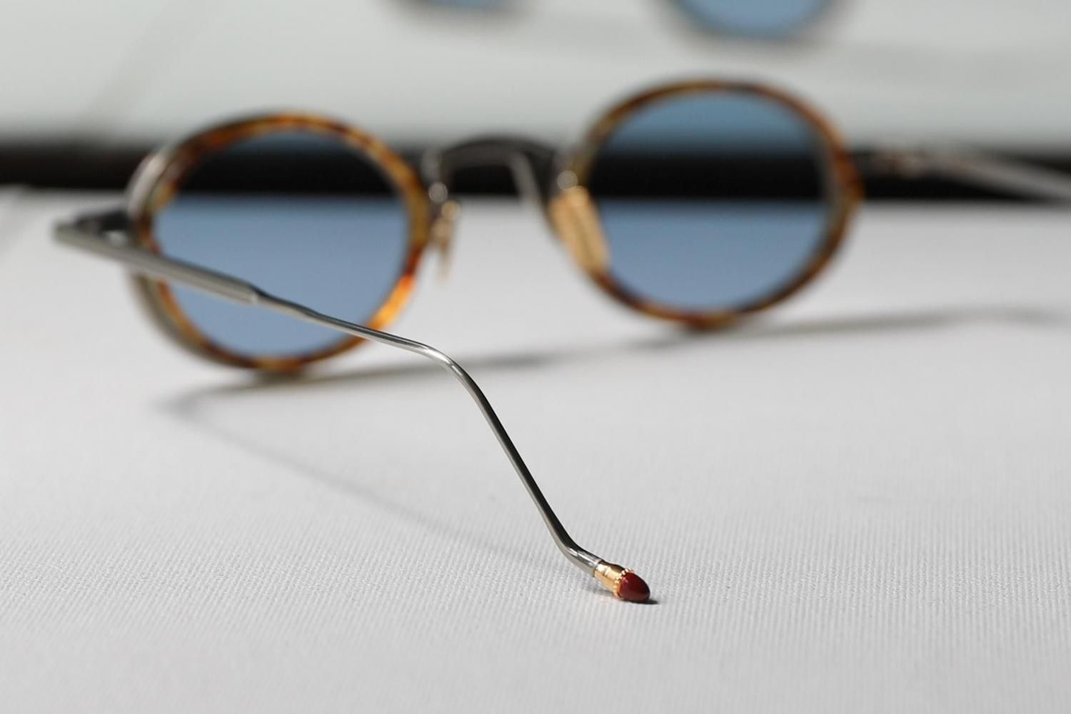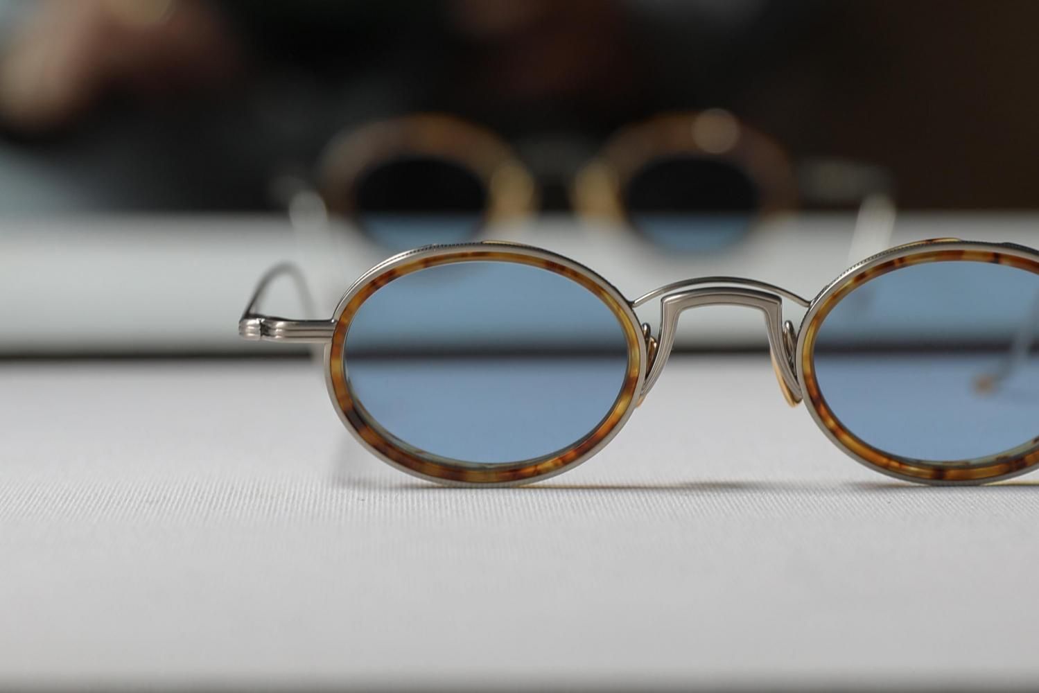 精緻に仕上げられたチタン製のリムには、繊細なエングレービングが施され、クラシカルな佇まいの中に未来的な静けさが宿ります。そして、フレーム内部にはアセテート製のインナーリムを組み合わせ、異素材のコントラストが生む立体感と奥行きが、他にはない存在感を生み出しています。