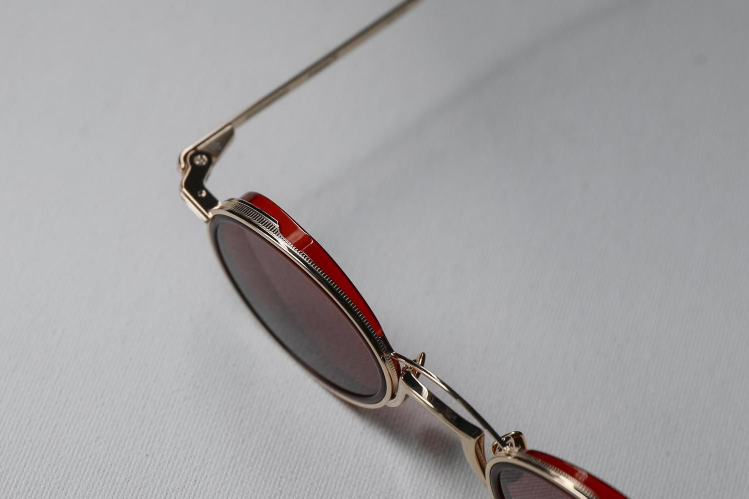 精緻に仕上げられたチタン製のリムには、繊細なエングレービングが施され、クラシカルな佇まいの中に未来的な静けさが宿ります。そして、フレーム内部にはアセテート製のインナーリムを組み合わせ、異素材のコントラストが生む立体感と奥行きが、他にはない存在感を生み出しています。