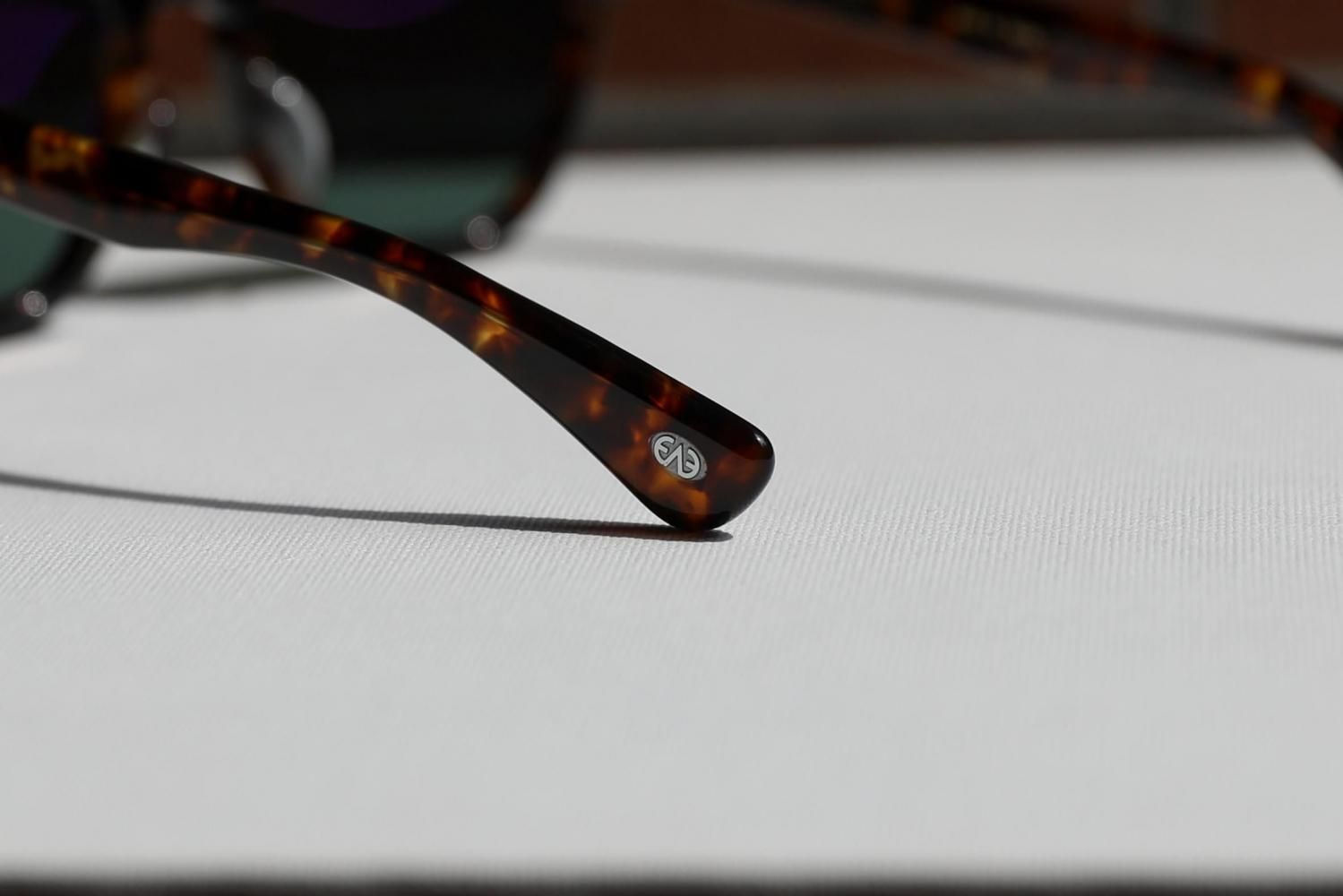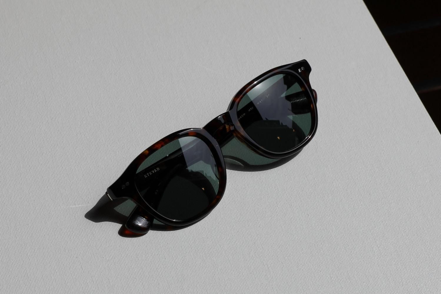 EYEVANの定番であるクラシックトートイズ柄に、グレイッシュなコールドグリーンレンズを組み合わせた配色は、ヴィンテージ感と現代的なセンスが共存する一本。