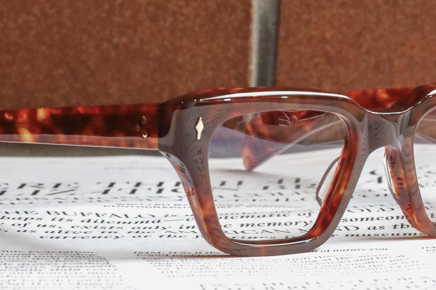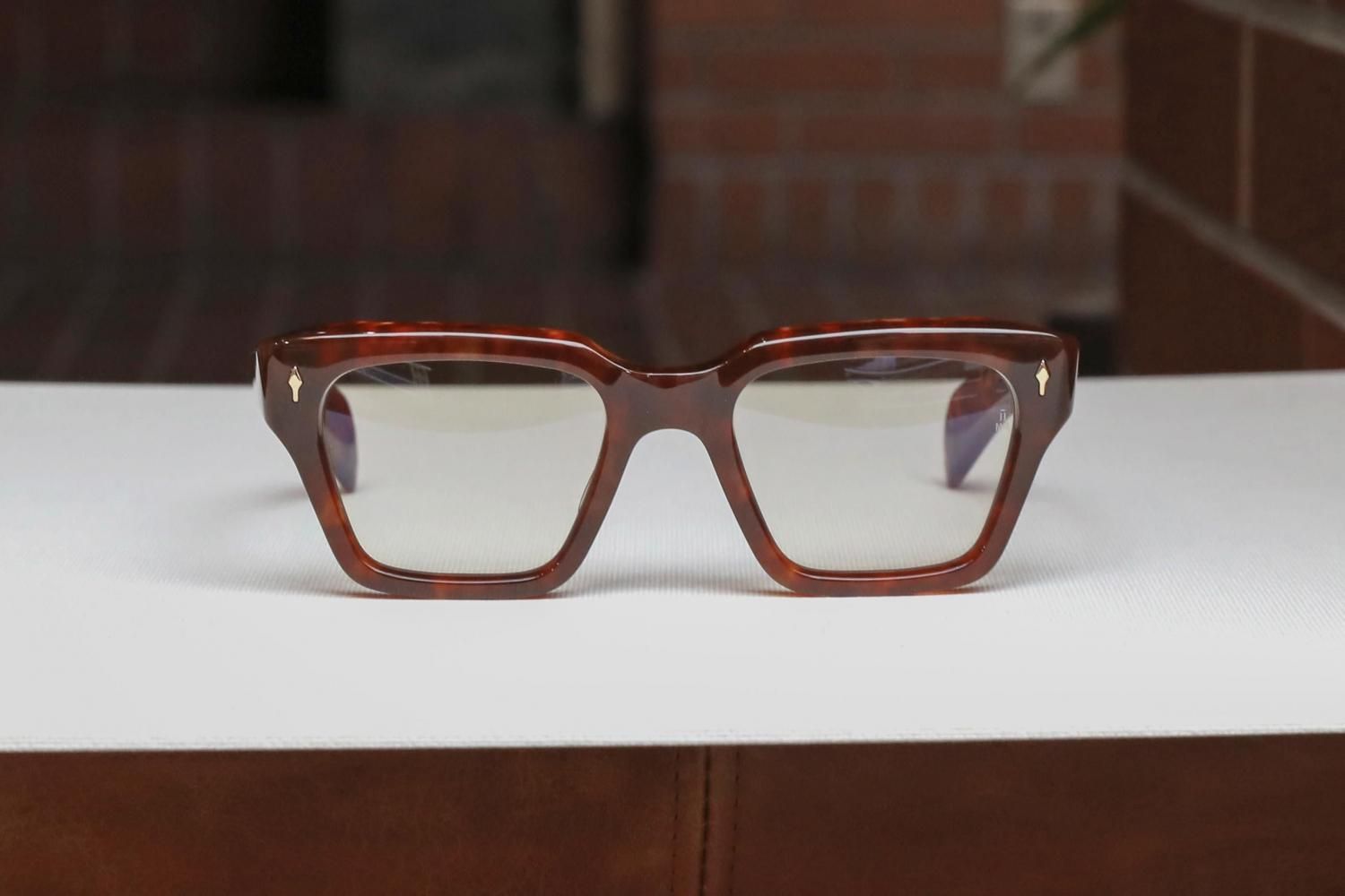 フレームカラーはややくすみ感のある赤茶の鼈甲柄。