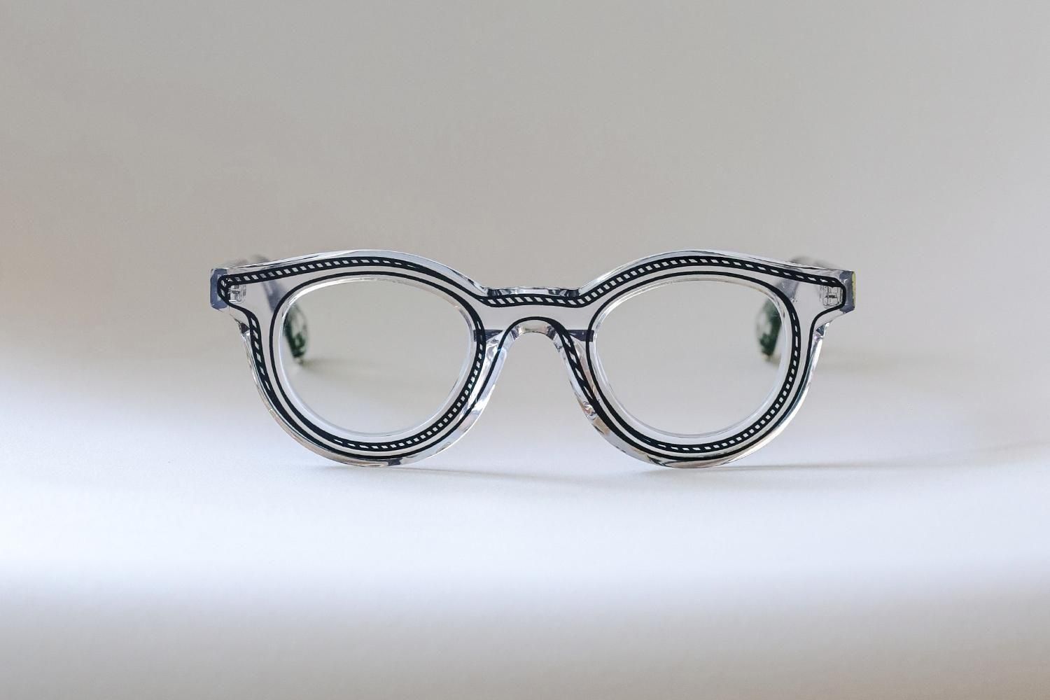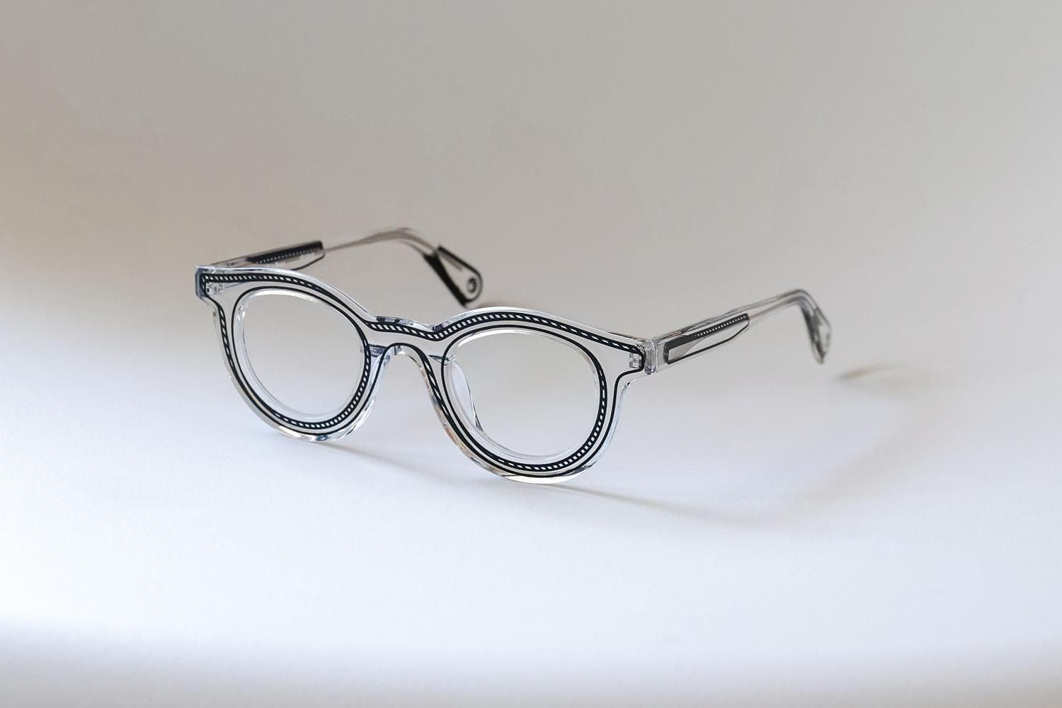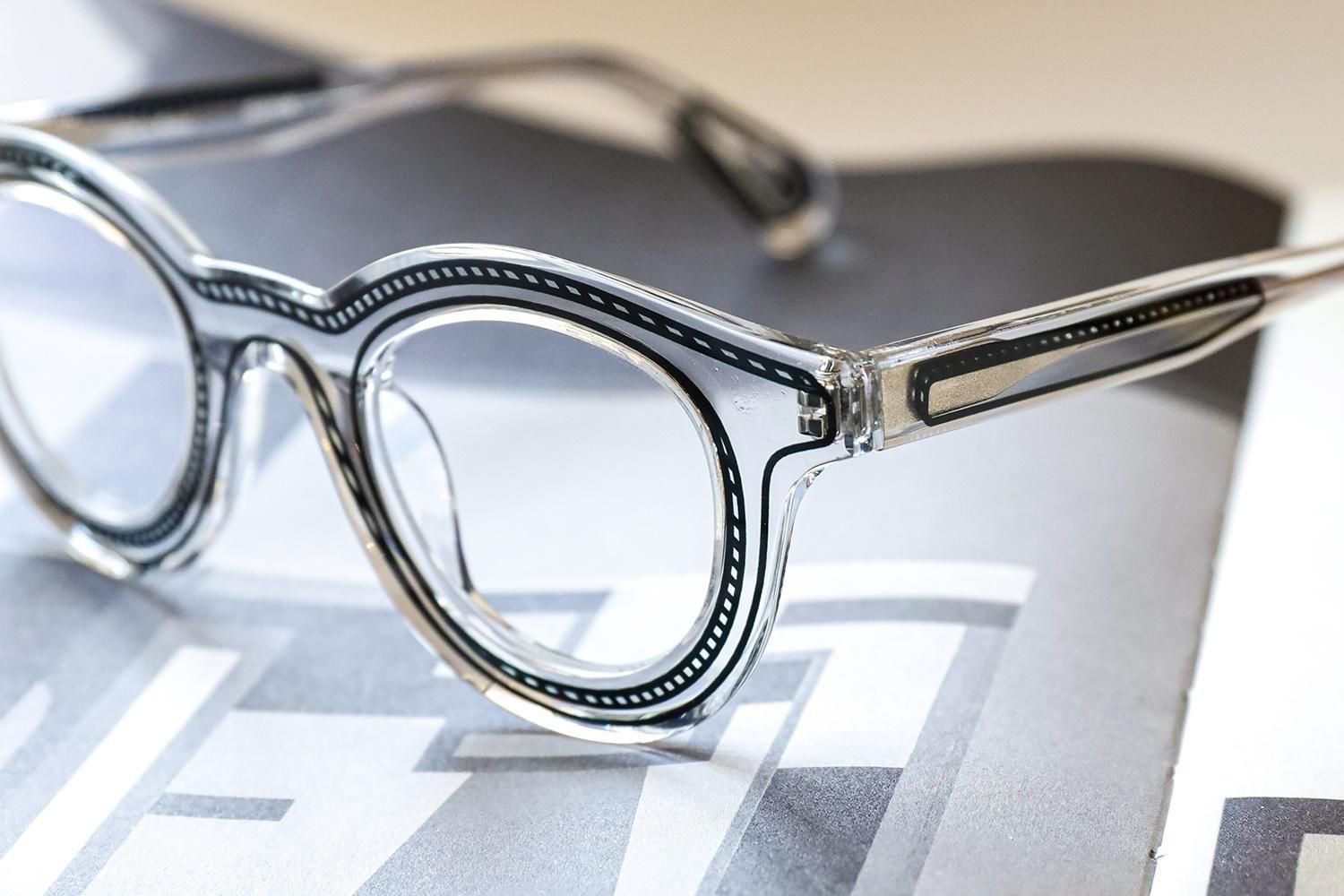 クリアな生地に映えるそのディテールは、まさに顔にかけるグラフィックデザイン。
