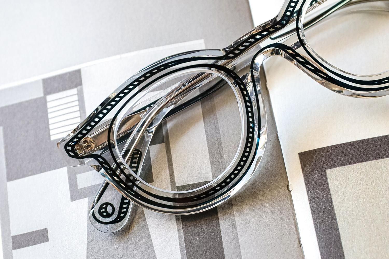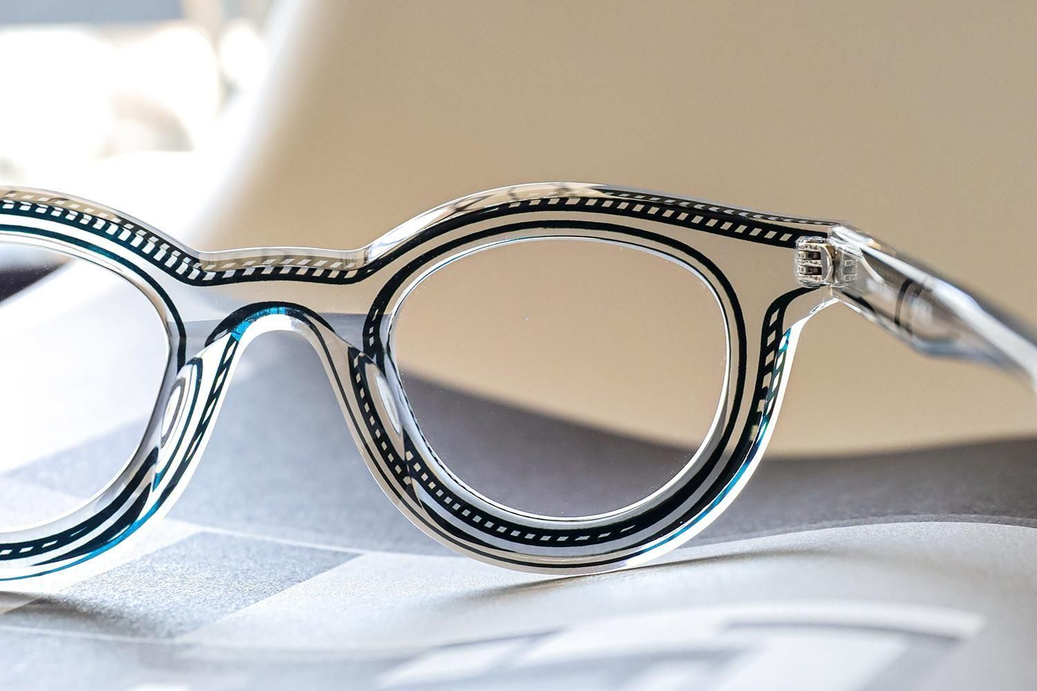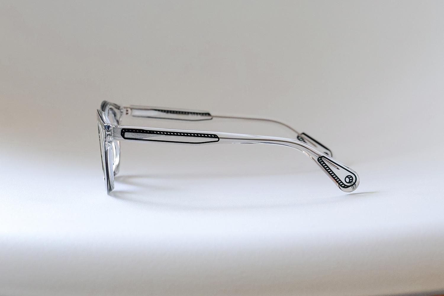 クリアな生地に映えるそのディテールは、まさに顔にかけるグラフィックデザイン。