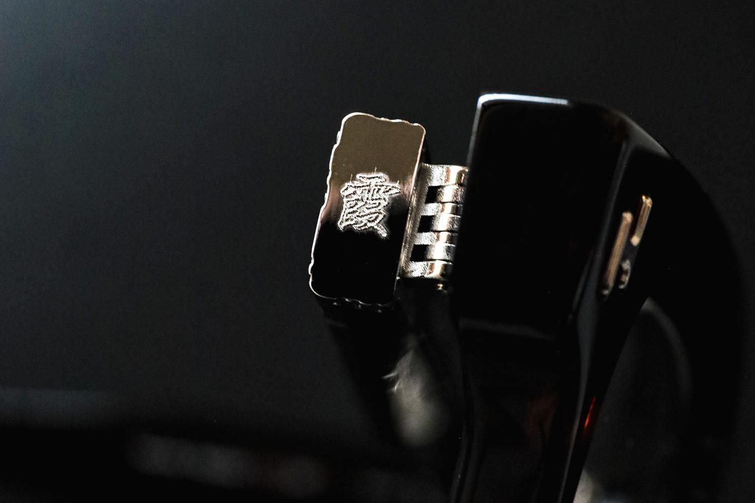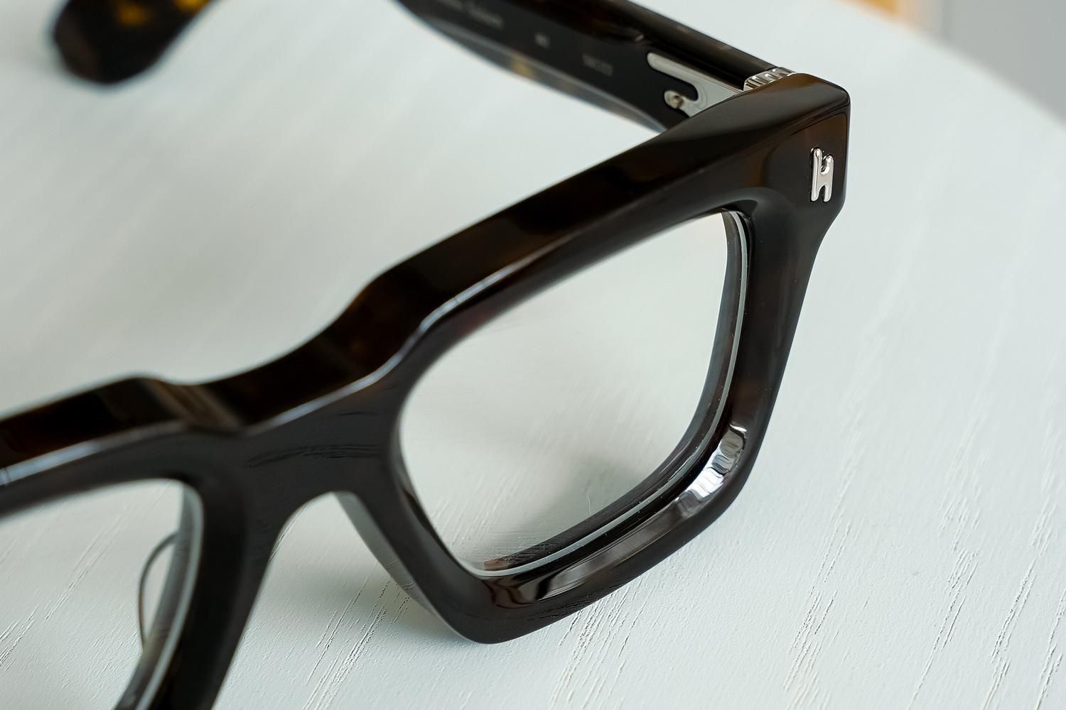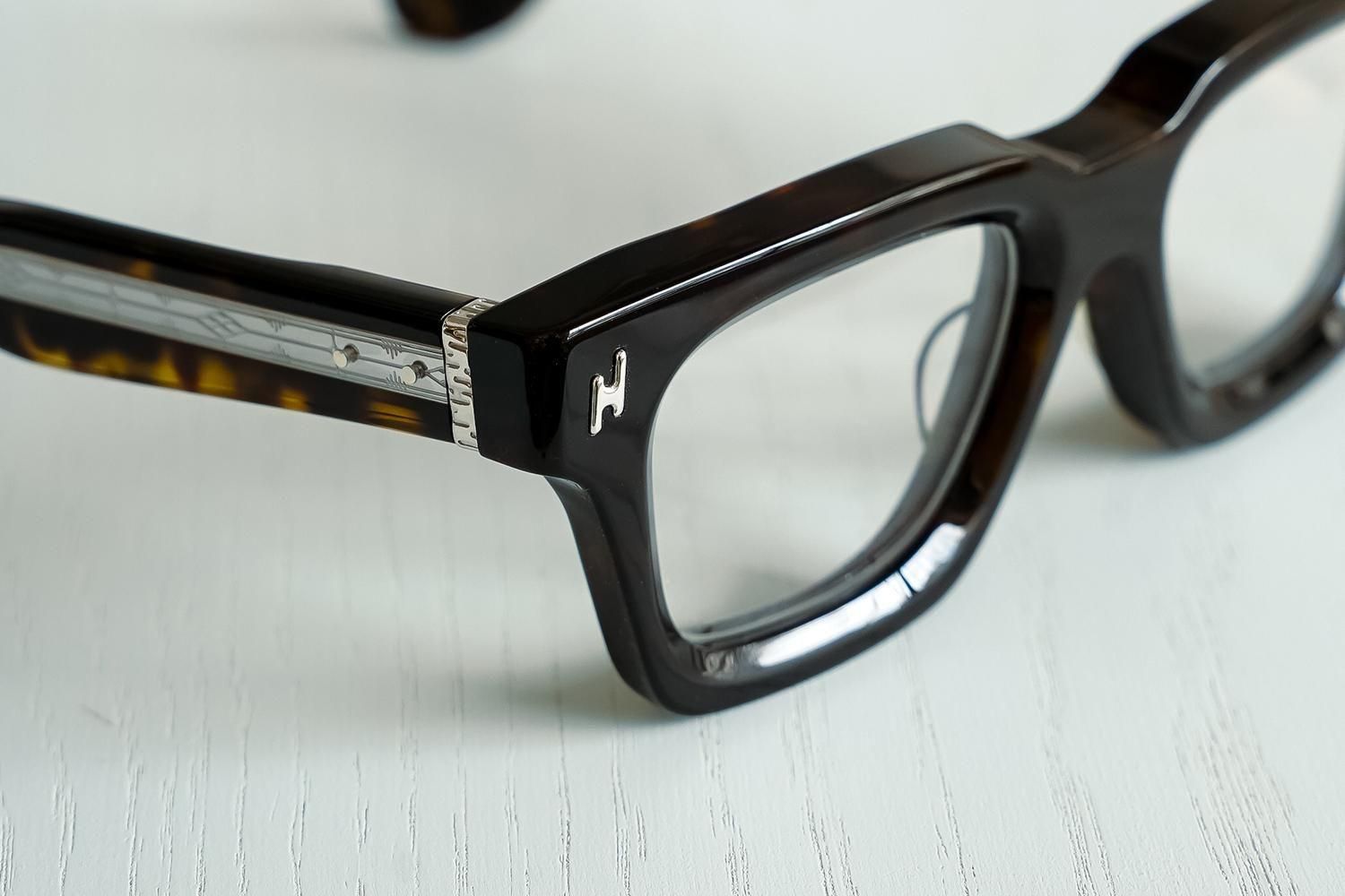 極太のテンプルを支える7枚蝶番仕上げ。