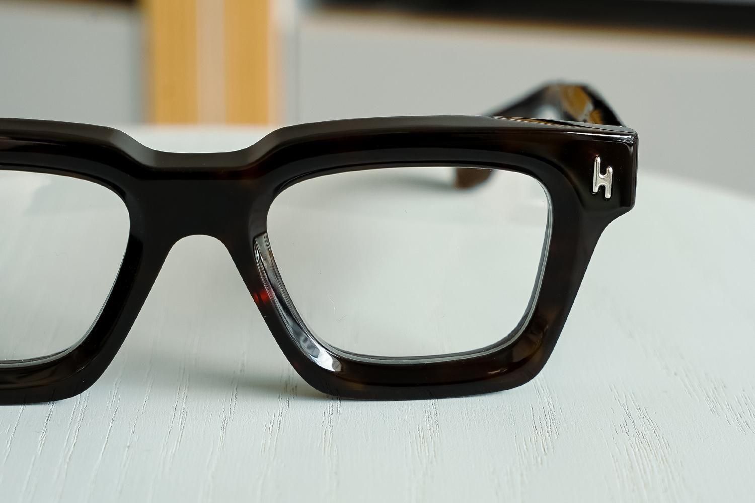 シャープで直線的なブローラインが目元を力強く見せるウェリントンシェイプの玉型。
