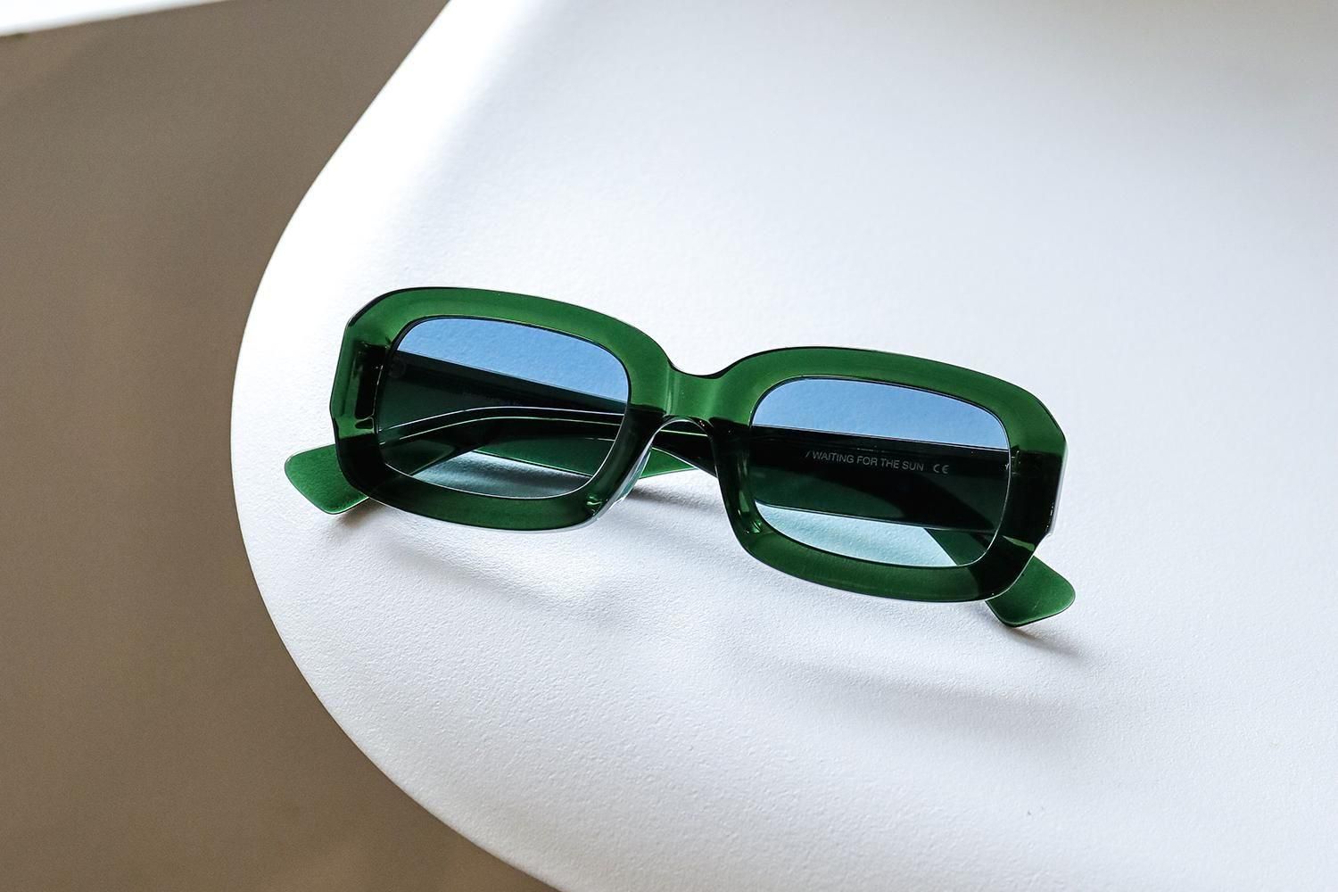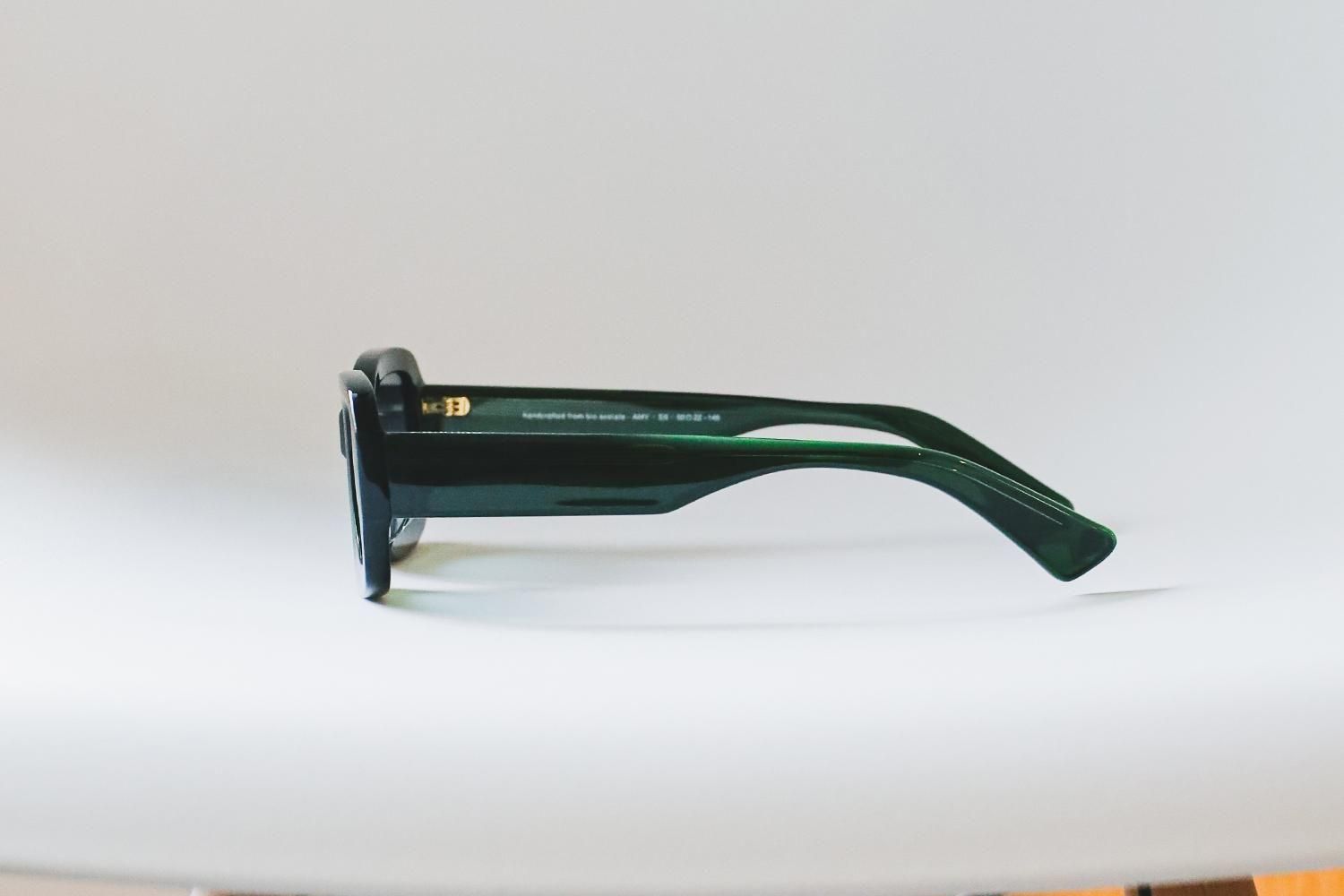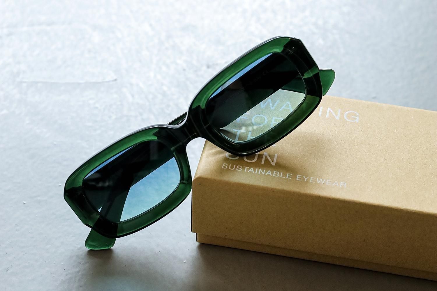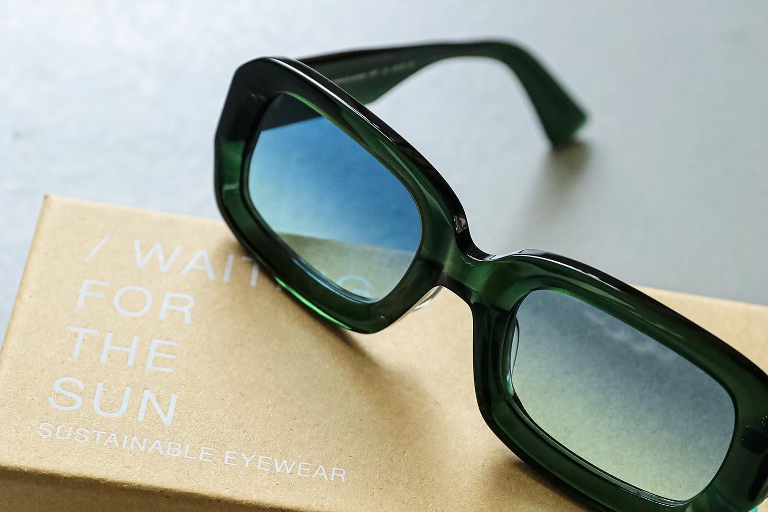 一方、深みのあるグリーンは、ブルーグラデーションレンズとの掛け合わせで都会的なクールさを演出。