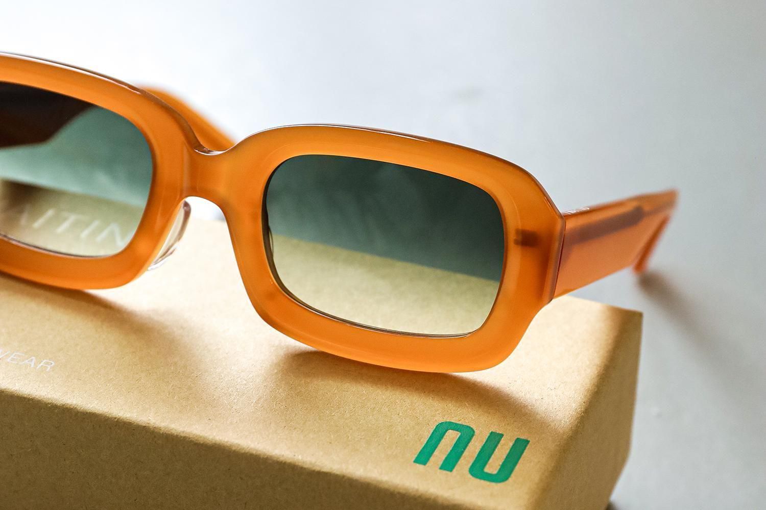 一方、深みのあるグリーンは、ブルーグラデーションレンズとの掛け合わせで都会的なクールさを演出。