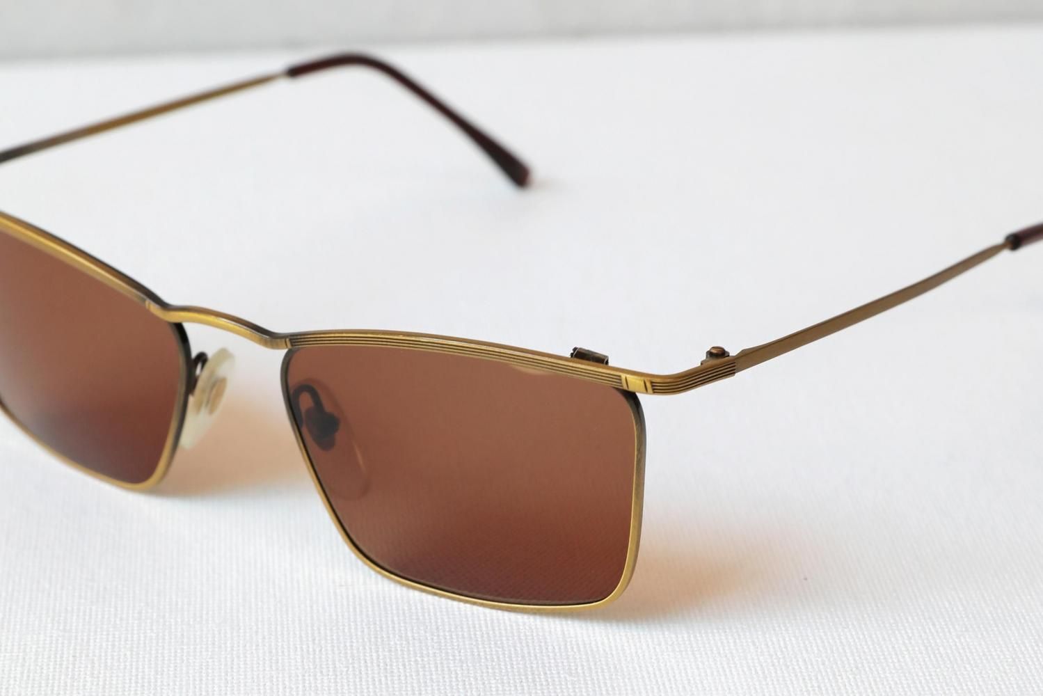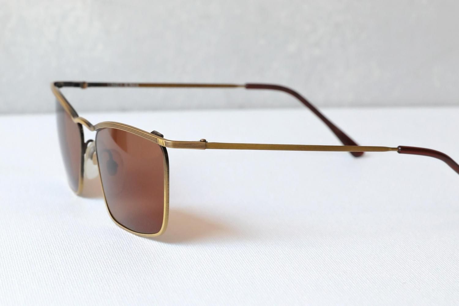 トップのブローラインから長方形のレンズをぶら下げた、所謂「カールトン」と言われる型を緩やかにアレンジしたデザインが80年代を感じさせます。