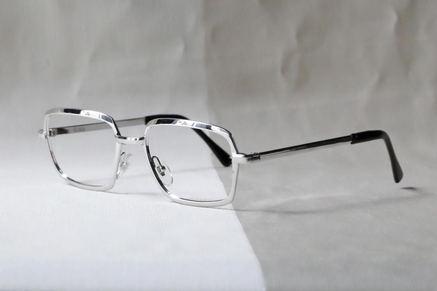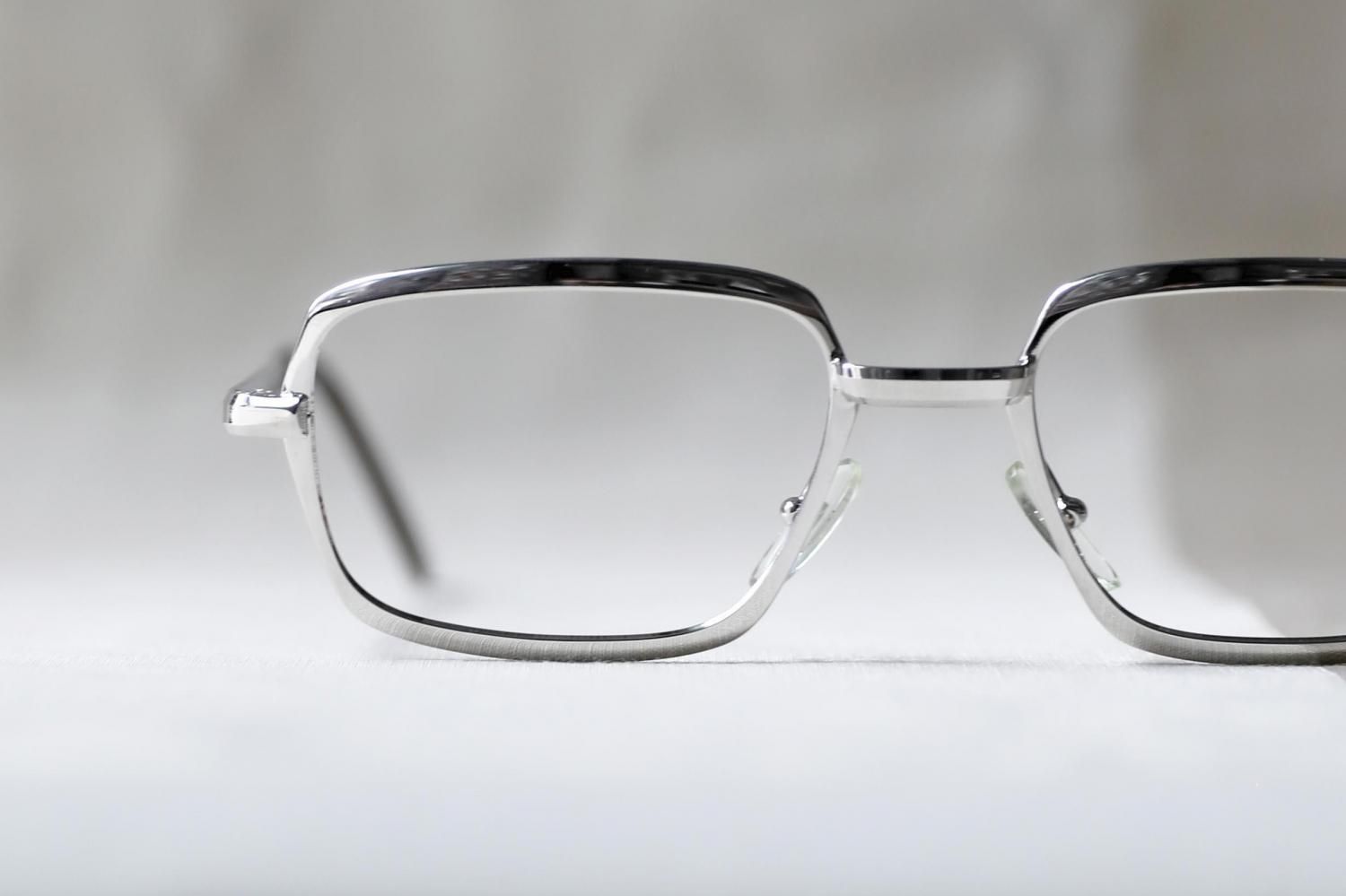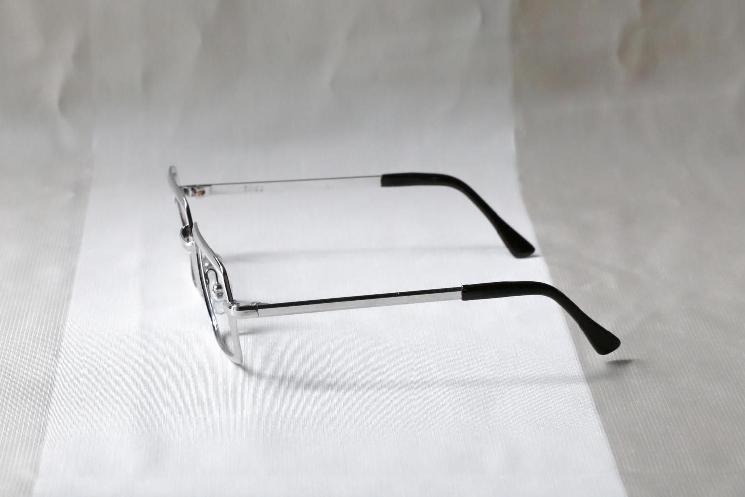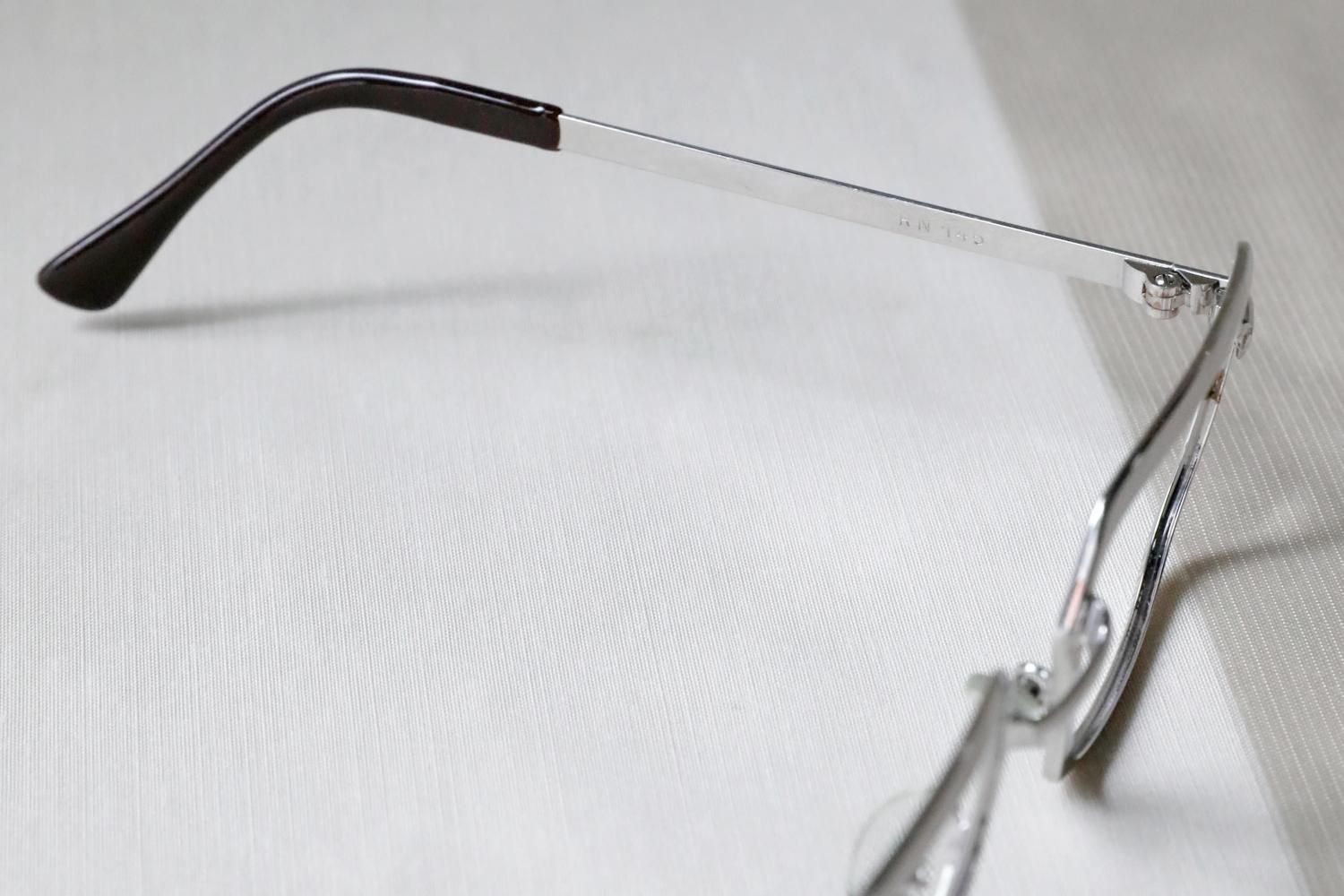 リム幅のあるメタルフレームにロジウムプレーティングを施した、メタルの工房ならではの逸品。