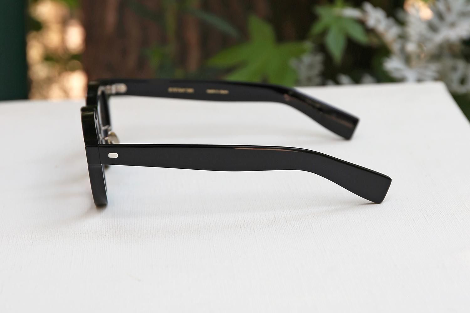この厚みがもたらすのは、ただの重厚感ではありません。熟練の職人により、通常の5倍の時間をかけた高度なカッティングと研磨によって、どっしりとした重厚な存在感だけでなく、そのフロントに最適なバランスを保つテンプルの太さ、チタンパッドの繊細さに美学を感じる一本です。