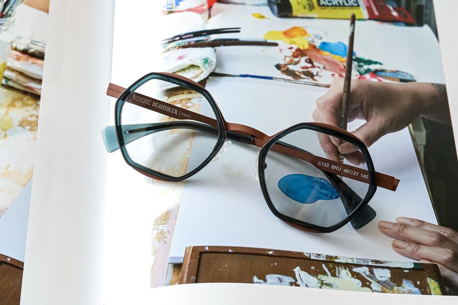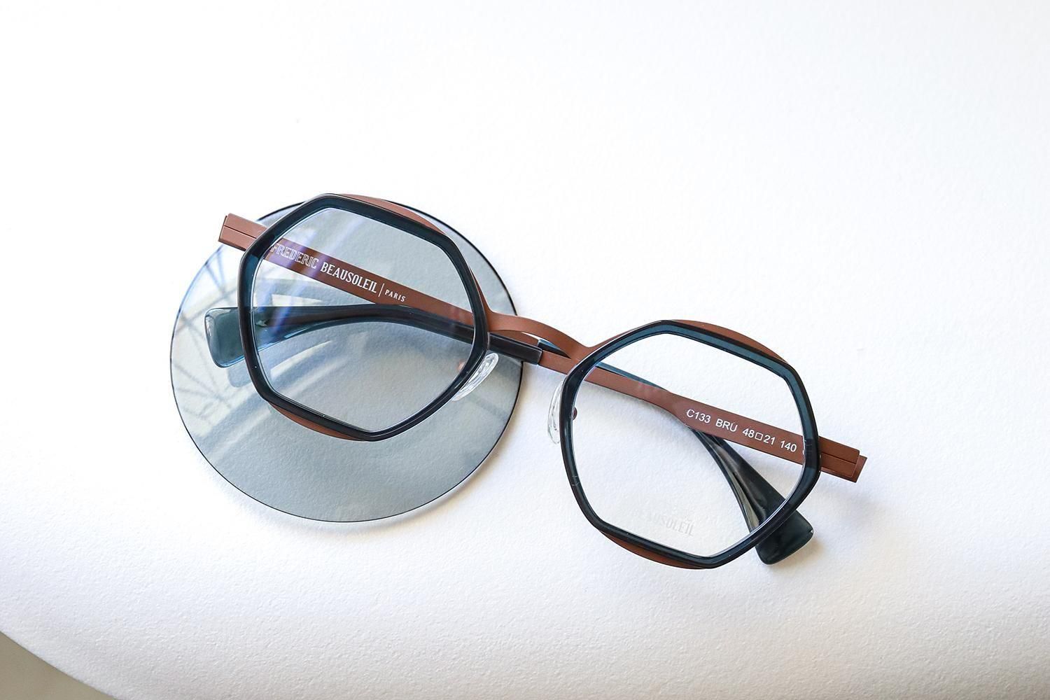 デザイナーであるフレデリック ボーソレイユは、自然や都会の風景など、ありとあらゆるものからインスピレーションを受け、メガネのデザインに取り入れます。アセテートはマツケリ社へオリジナル生地を発注。
