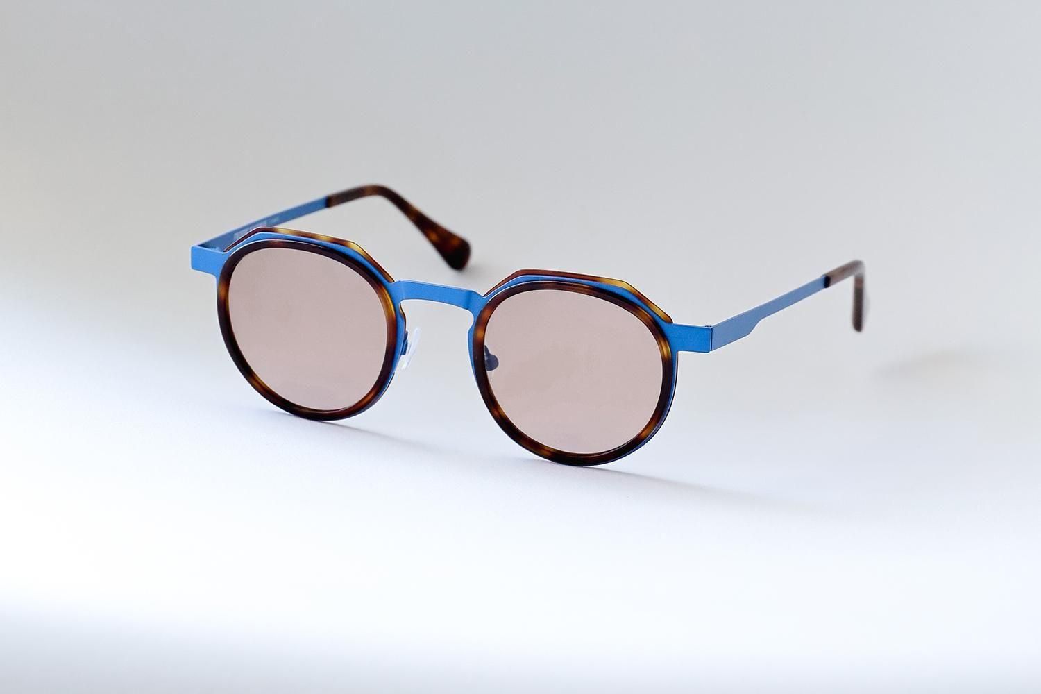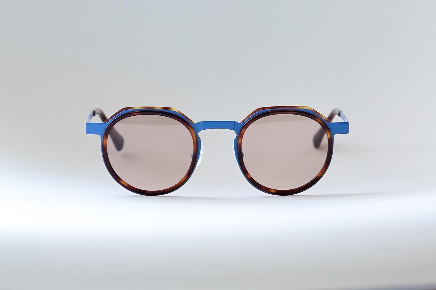 ブルー×べっ甲の個性を、淡ブラウンが中和。
