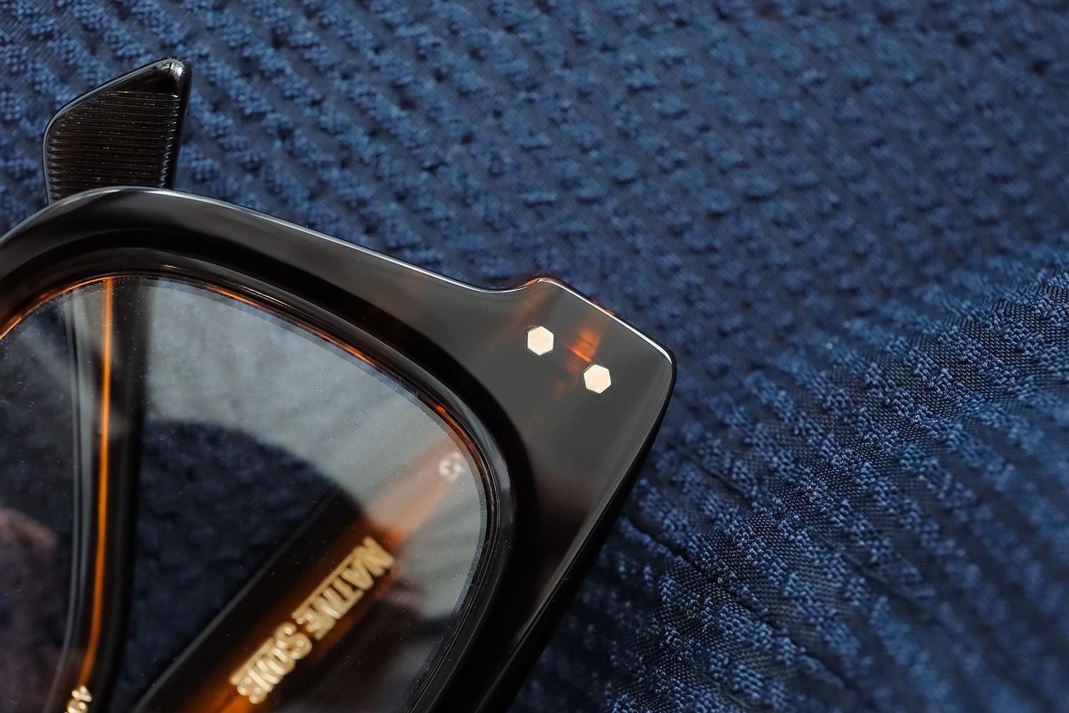 テンプルエンドには少し丸みがつけてあり、掛け外しの所作まで美しく。