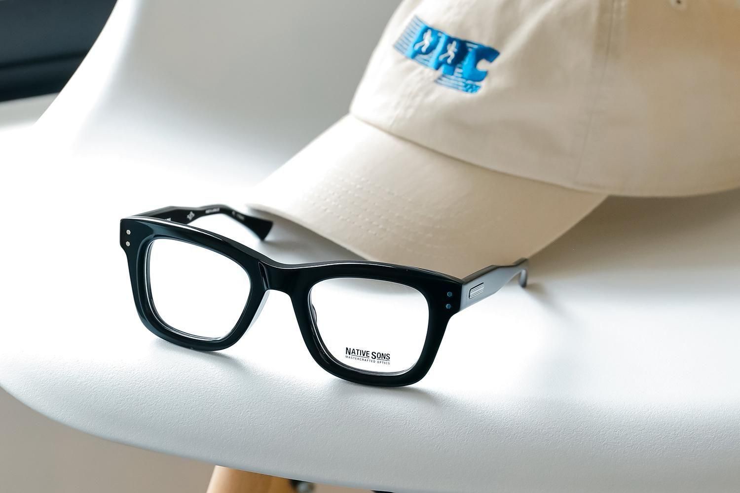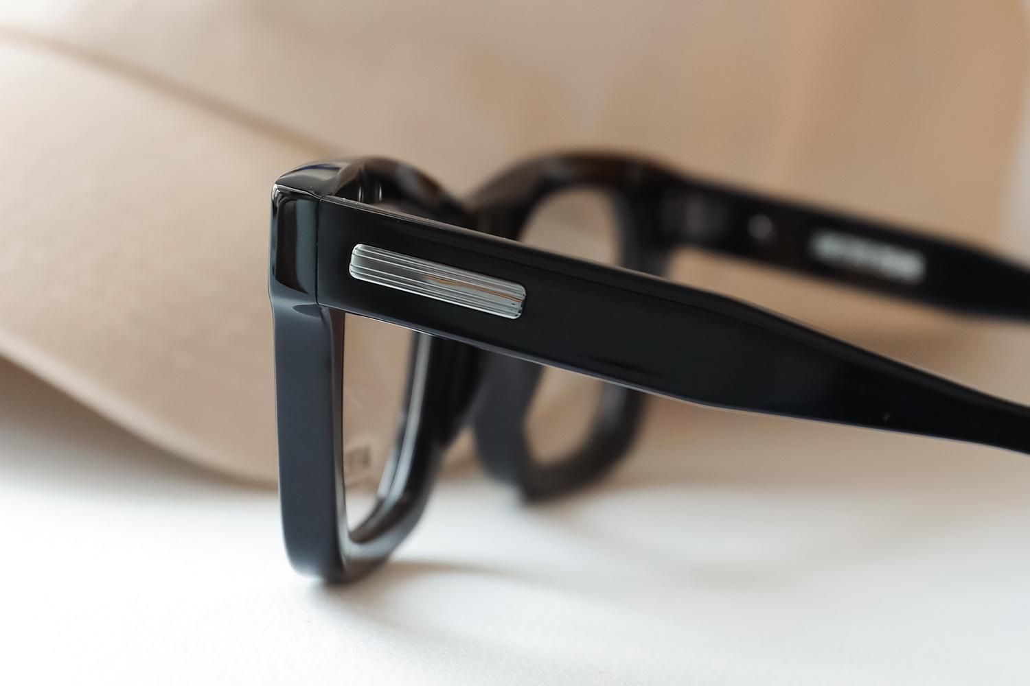 テンプルの金属プレートは光の角度で表情が浮かび、どこか工業的で無骨なムードを添えます。