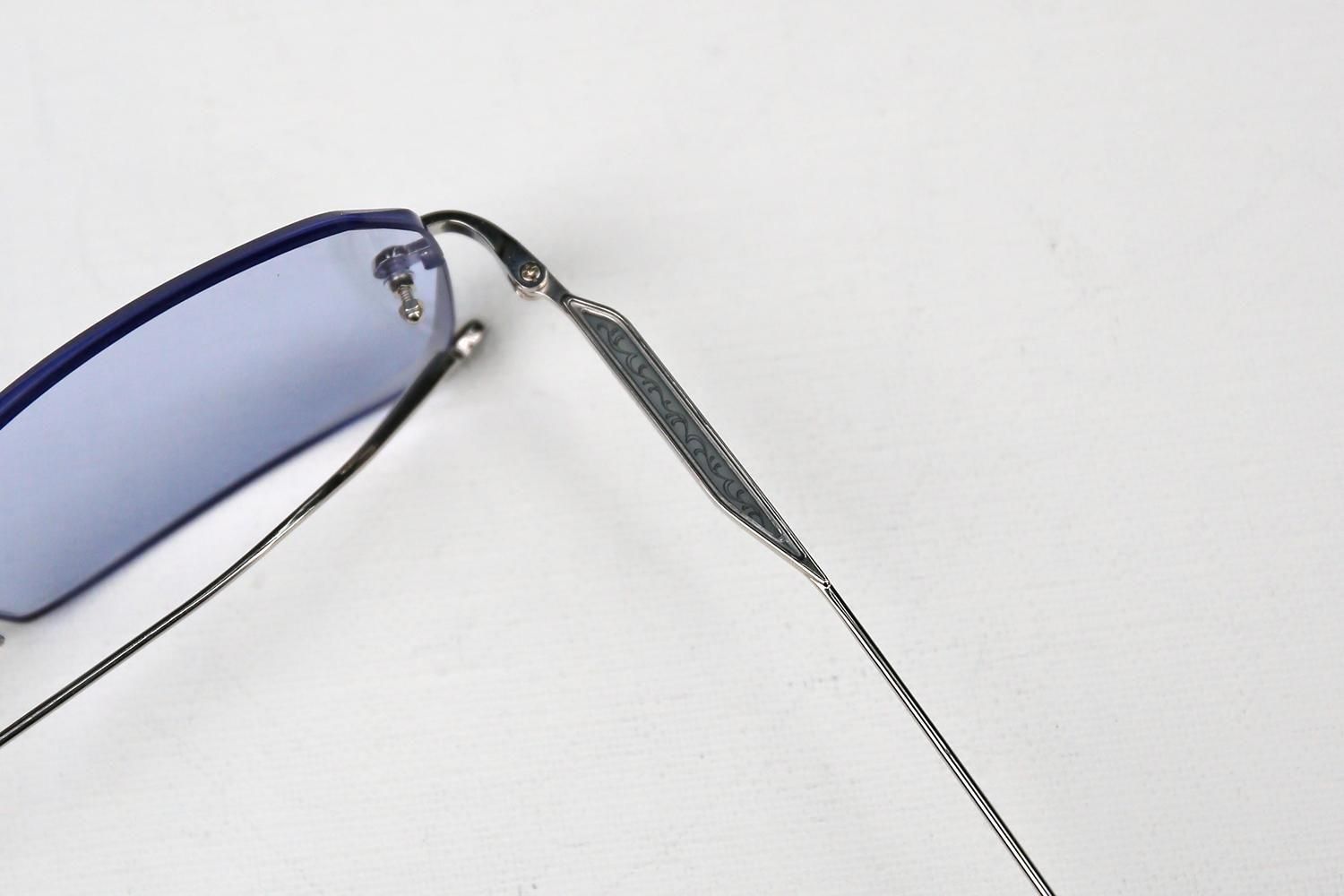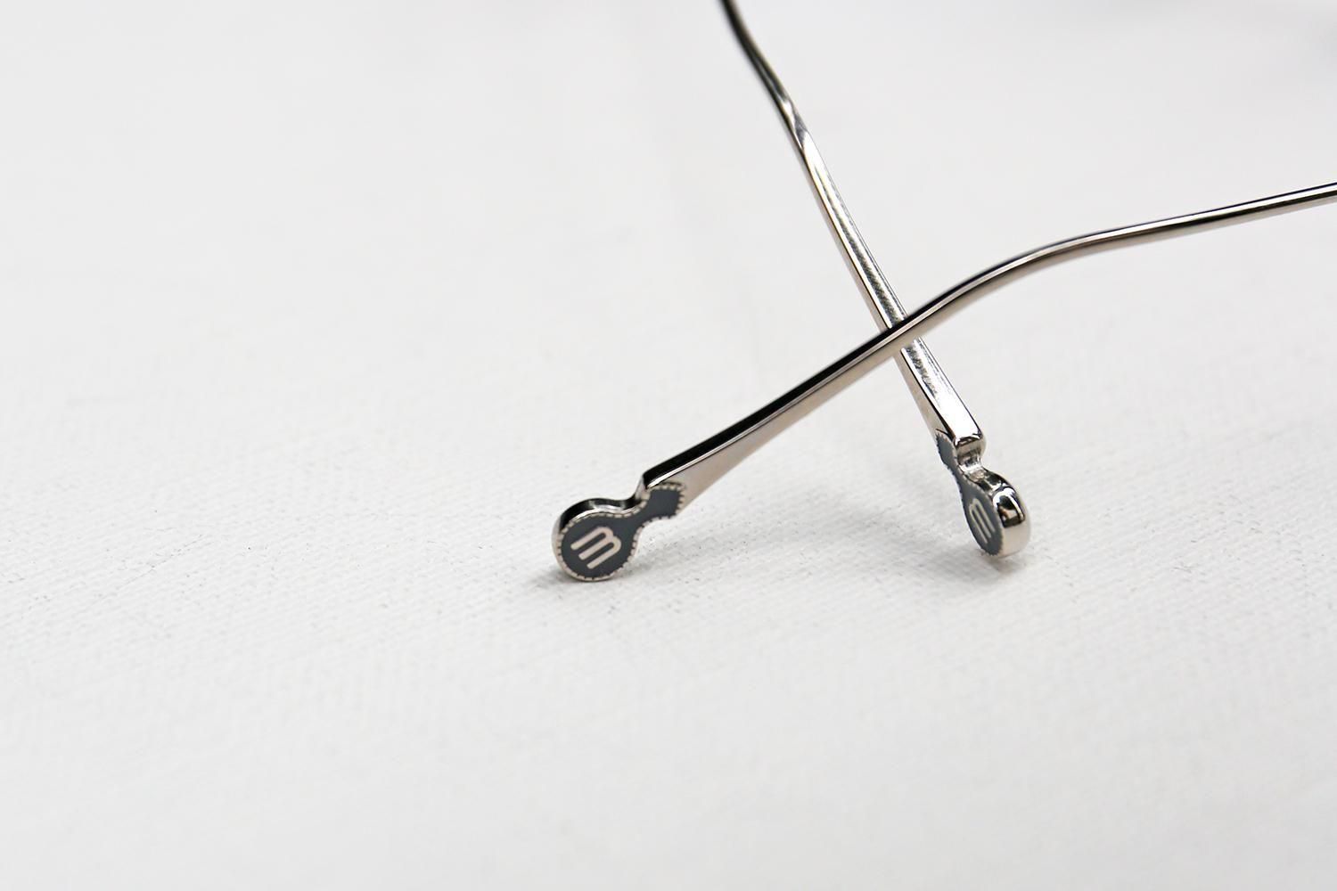 テンプル(つる)やブリッジ(鼻部分)には、ブランドのアイコンでもある精緻な彫金が施すことでチープさを廃し、さらにはステンドグラスを模した智元のデザインが目元に彩りをプラスすることで、上下左右、どの角度から見ても魅力的なデザインとなっています。
