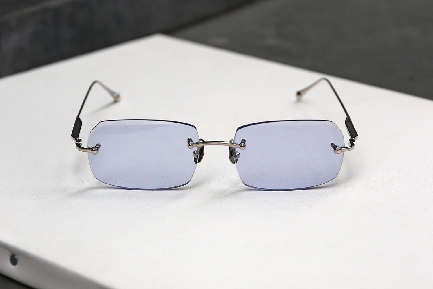 多角的にカットされたこの加工は、光の角度によって表情を変え、まるで宝石のような煌めきを放ちます。これにより、通常のツーポイントフレームが持つクールでシンプルなイメージは、一瞬にしてエレガントでファッショナブルなオーラを纏います。