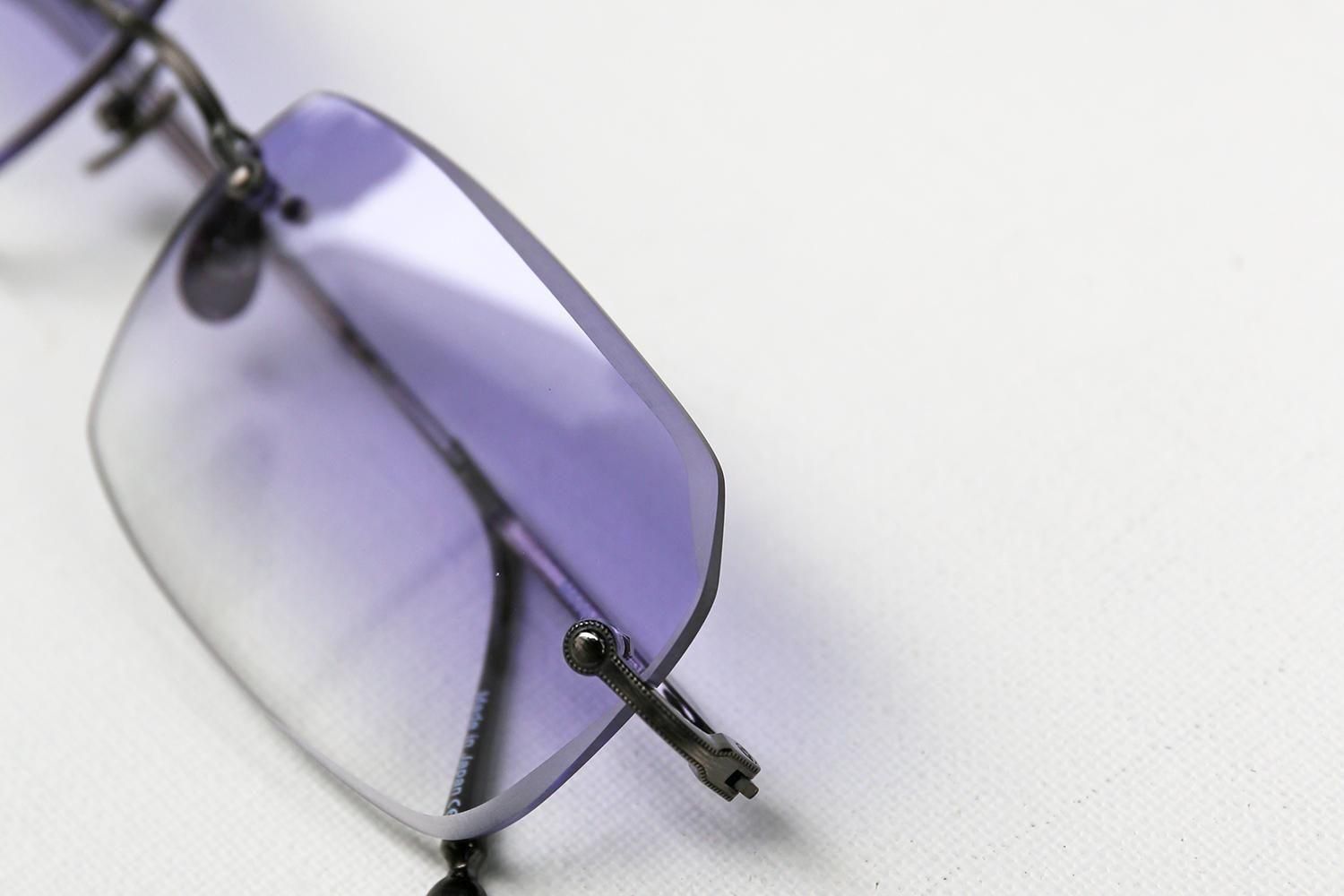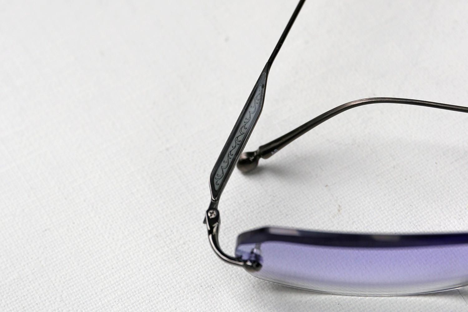 テンプル(つる)やブリッジ(鼻部分)には、ブランドのアイコンでもある精緻な彫金が施すことでチープさを廃し、さらにはステンドグラスを模した智元のデザインが目元に彩りをプラスすることで、上下左右、どの角度から見ても魅力的なデザインとなっています。