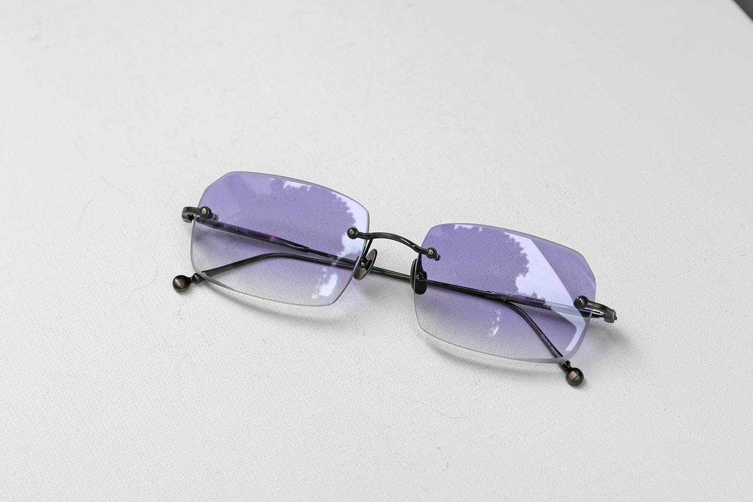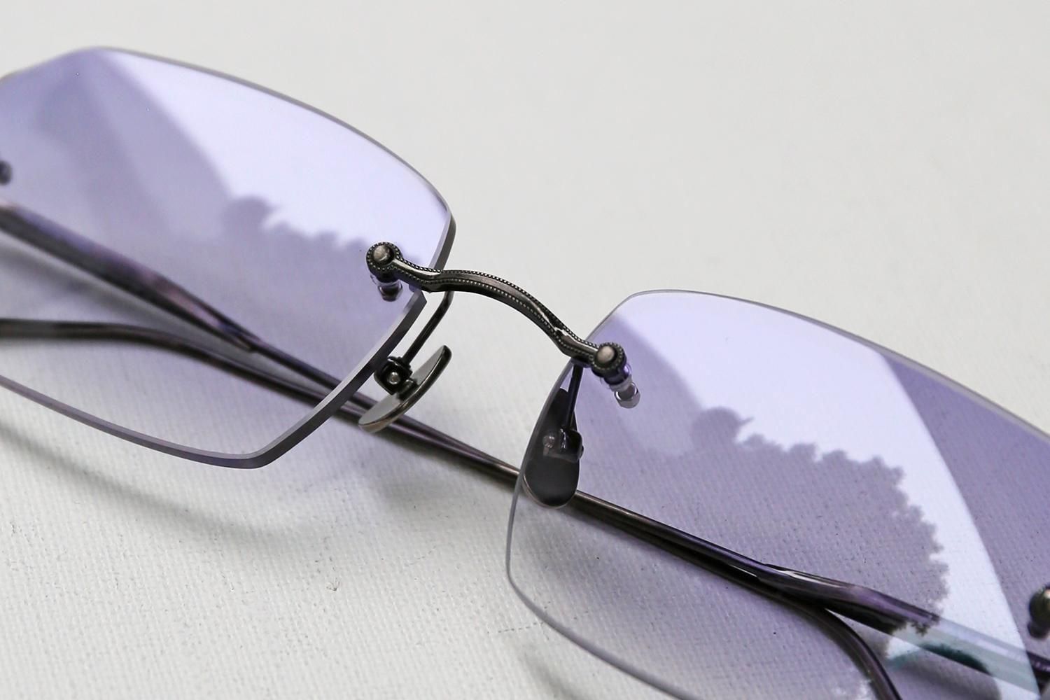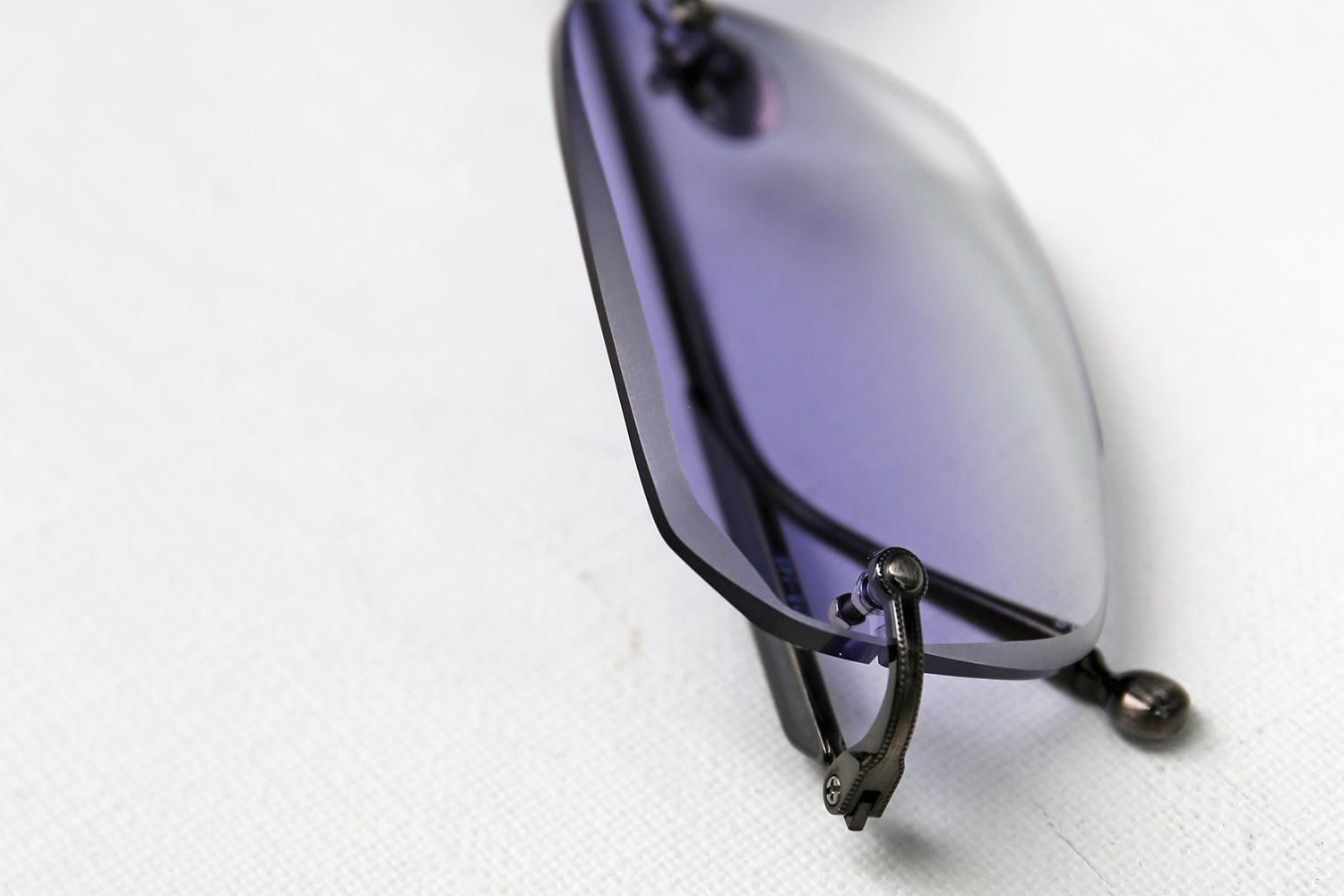 多角的にカットされたこの加工は、光の角度によって表情を変え、まるで宝石のような煌めきを放ちます。これにより、通常のツーポイントフレームが持つクールでシンプルなイメージは、一瞬にしてエレガントでファッショナブルなオーラを纏います。