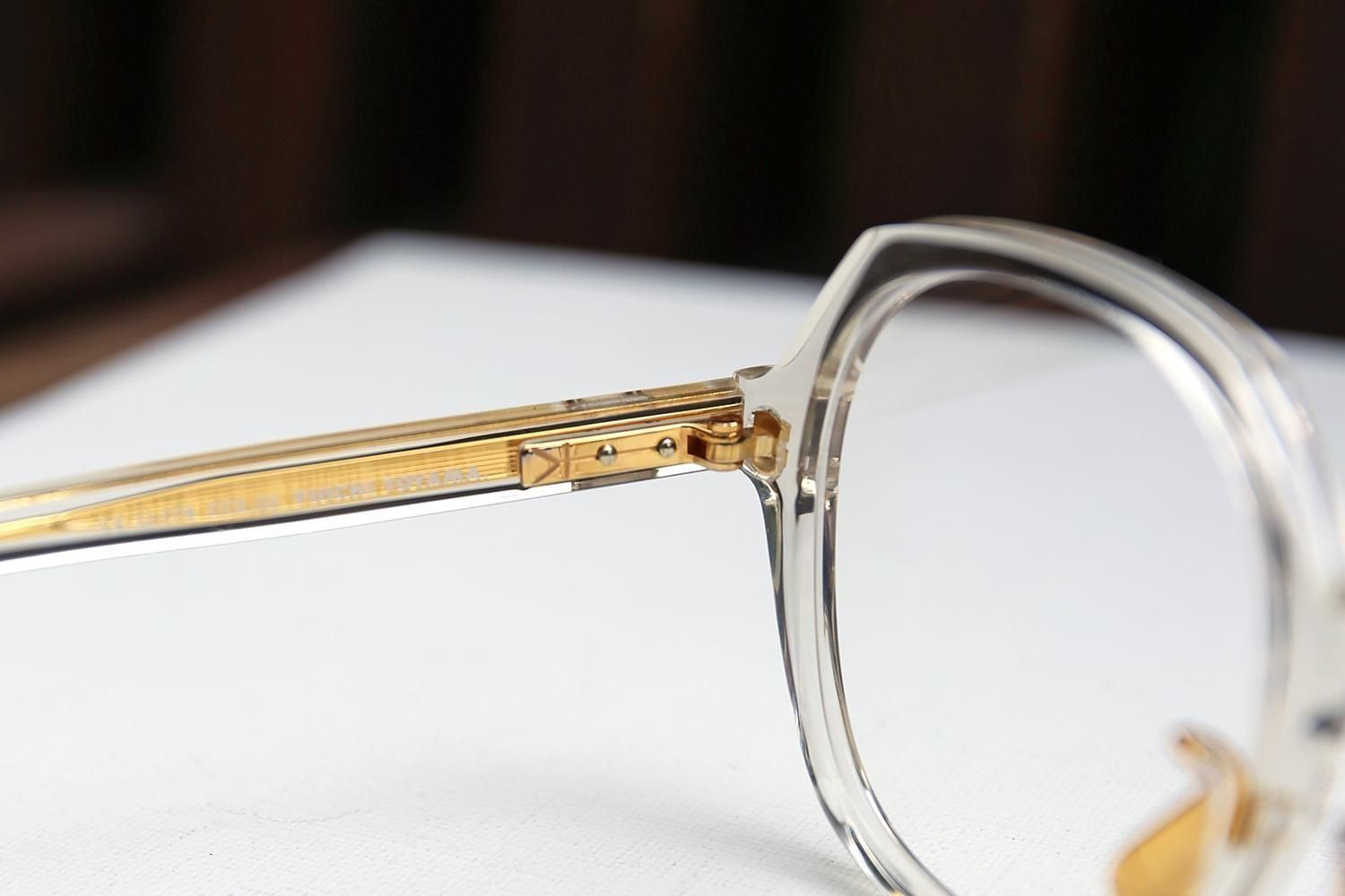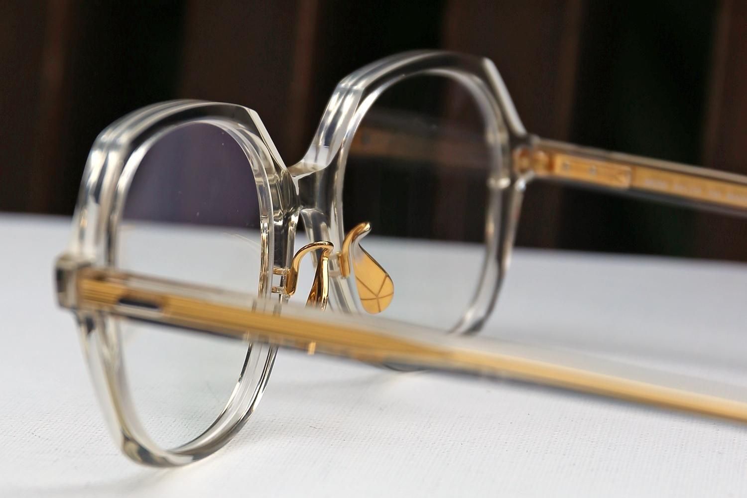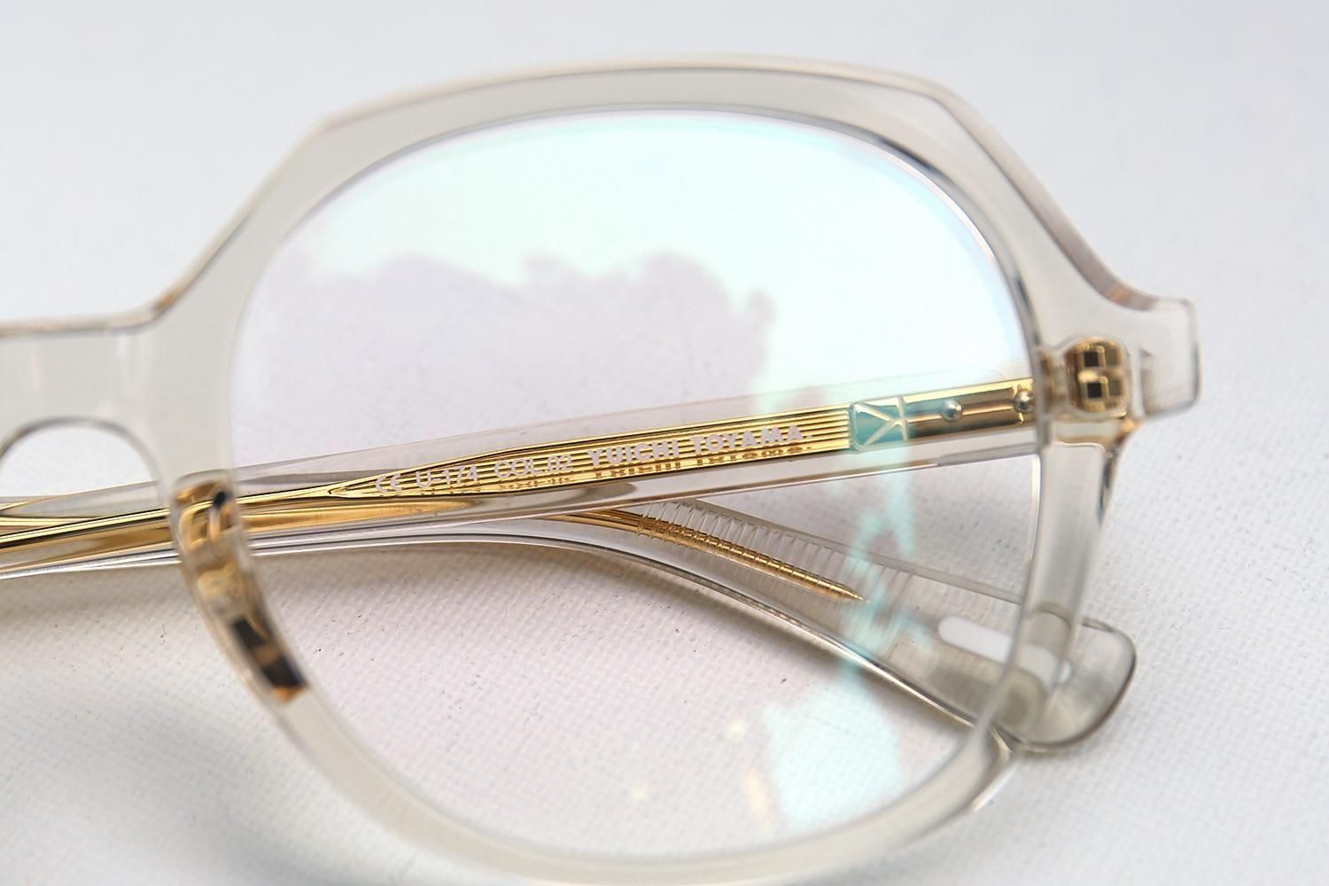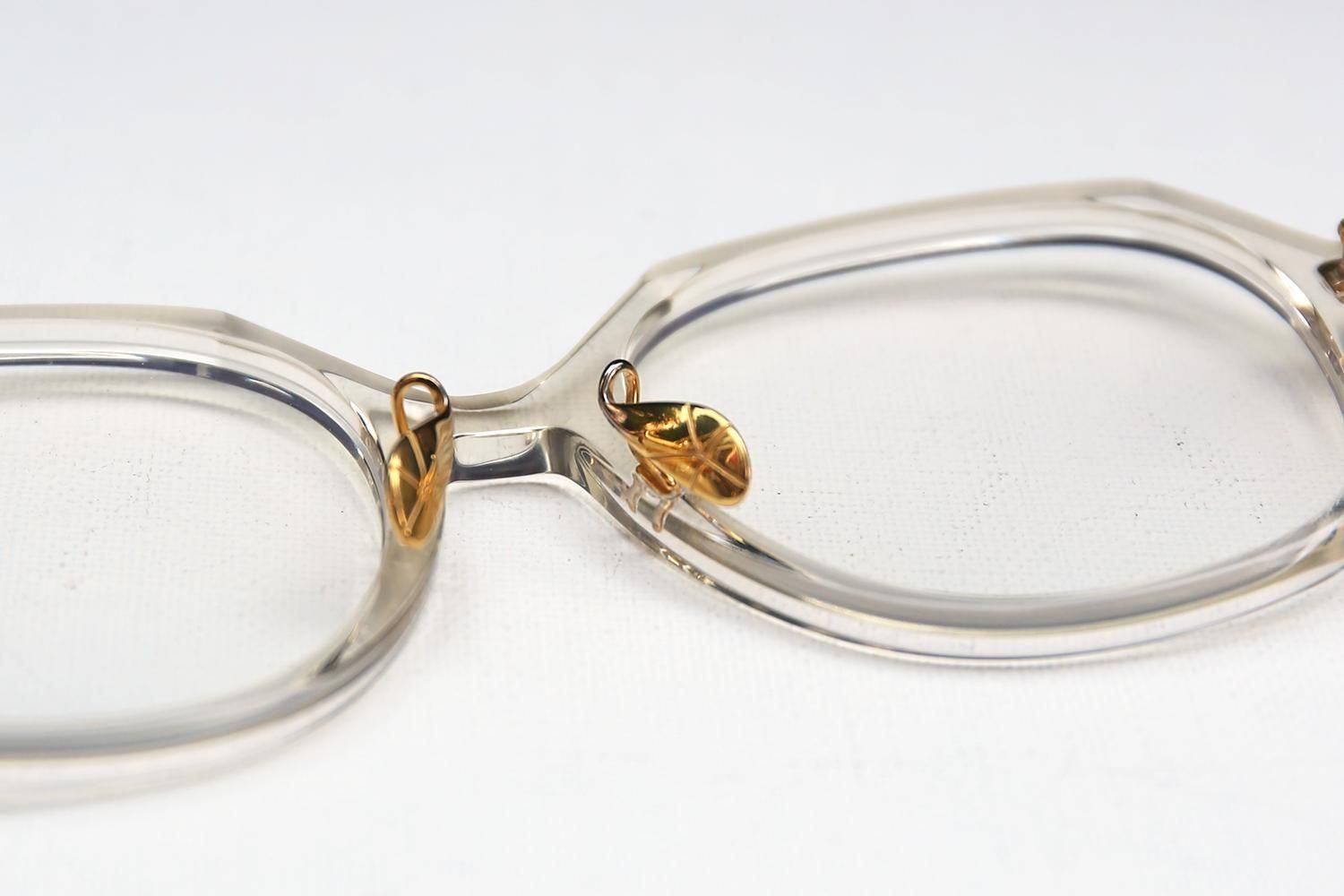 YUICHI TOYAMAのフレーム達はデザイン性だけでなく、機能性にも優れており、クリングスアームは美しい曲線を描くスプーンのようなチタン製パッドを採用し、繊細な調整が可能になっております。これにより、一人ひとりのお顔にフィットし、快適な掛け心地を実現します。テンプルにはブランドロゴが刻印され、ゴールドのメタルパーツが全体を上品に彩ります。
