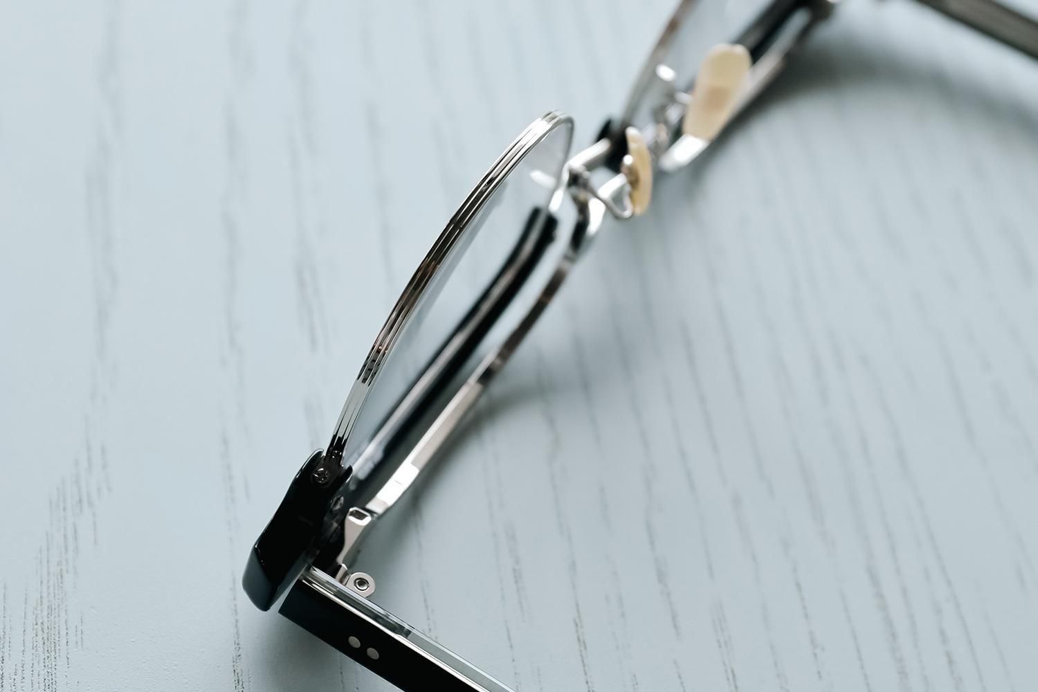ベークライト調の鼻パッドは、抱き込み式でクラシックな空気を醸し出します。