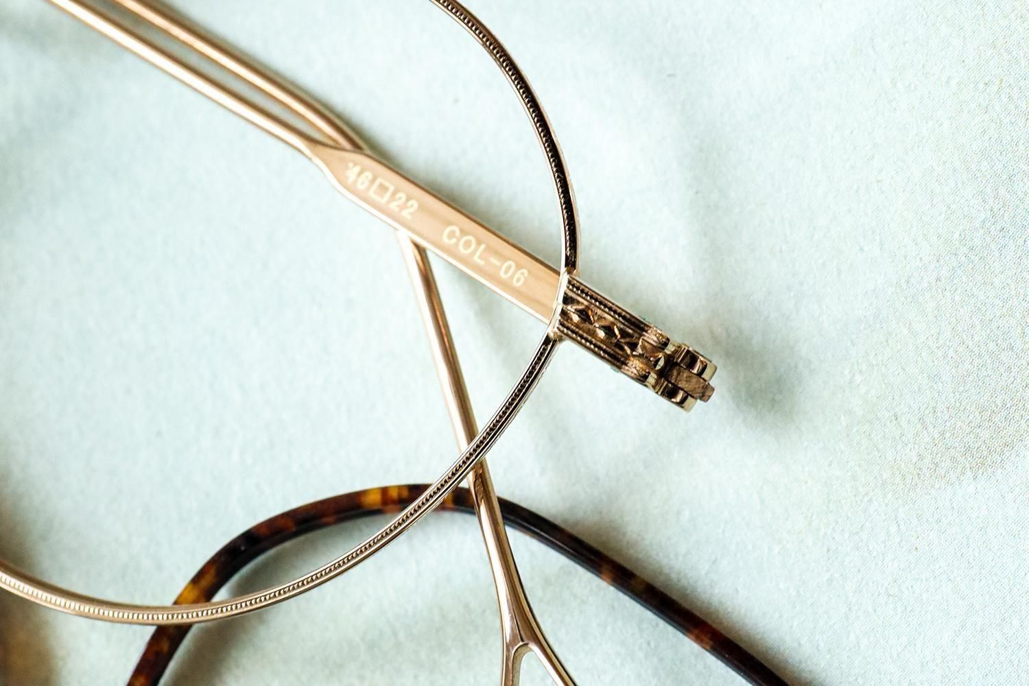 リム(レンズ部分の縁)やテンプル(腕)にシンプルな装飾を用いた、