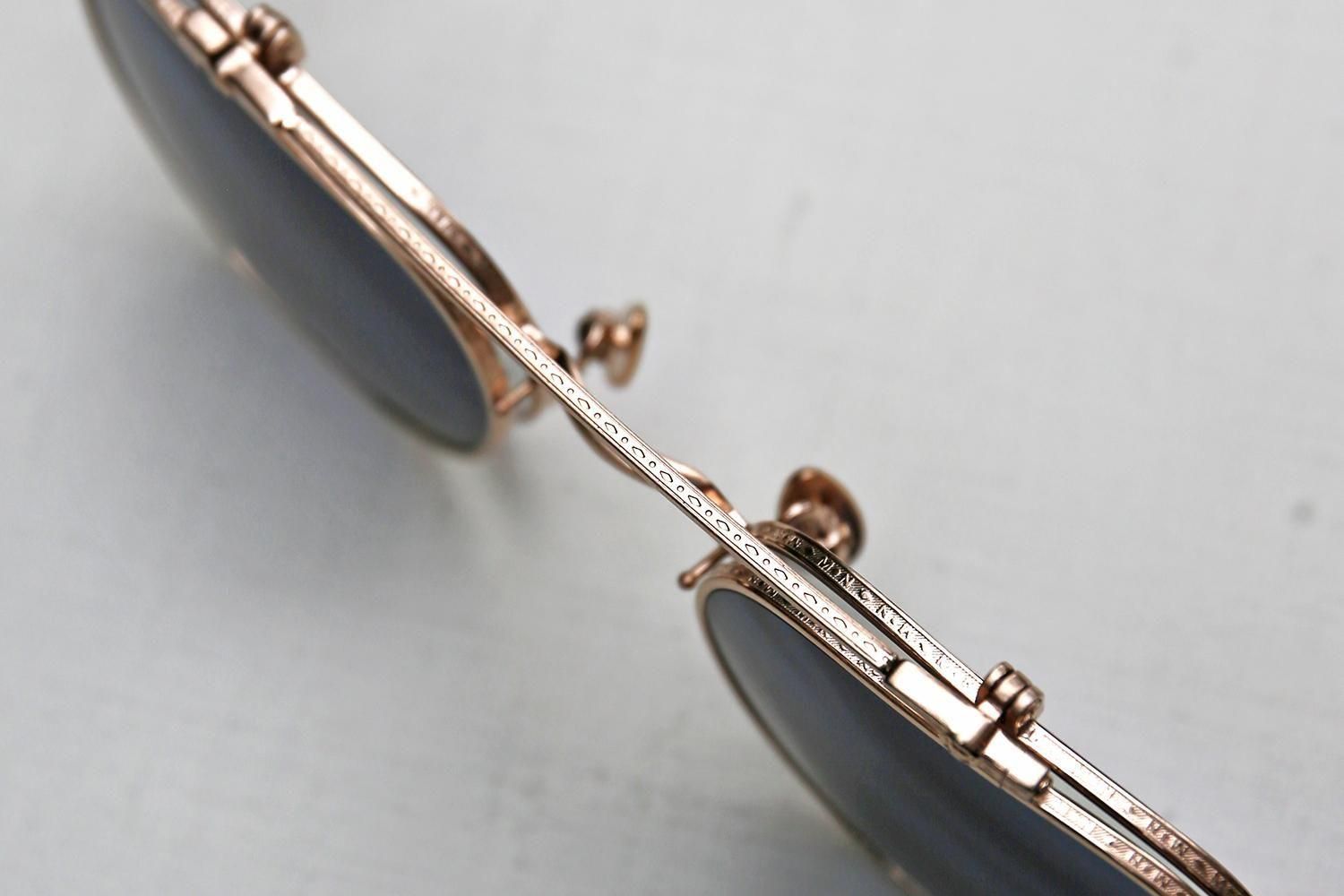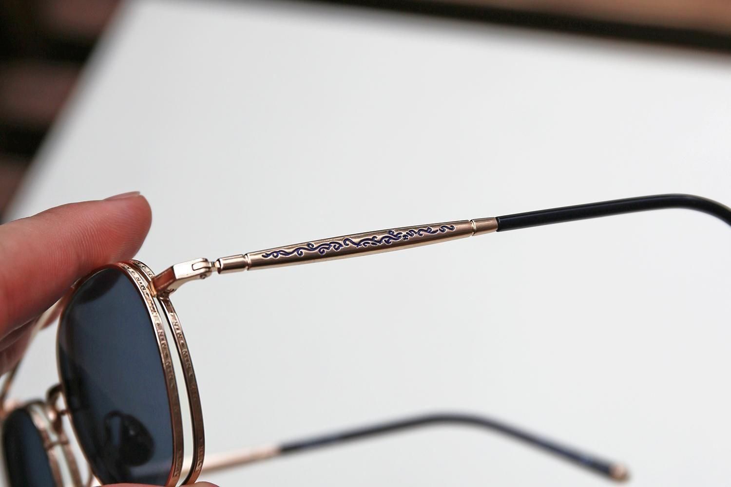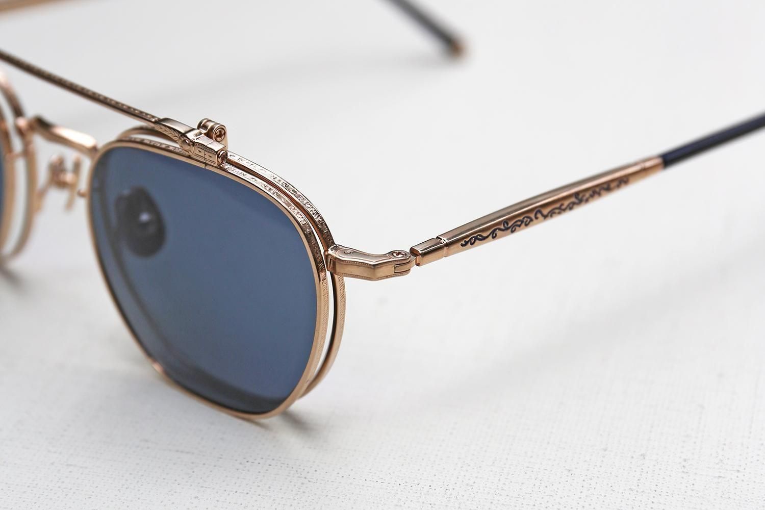 リムやブリッジ、そしてテンプルにも贅沢に彫金を施した、MATSUDAらしい重厚でラグジュアリーな雰囲気を持つ1本。