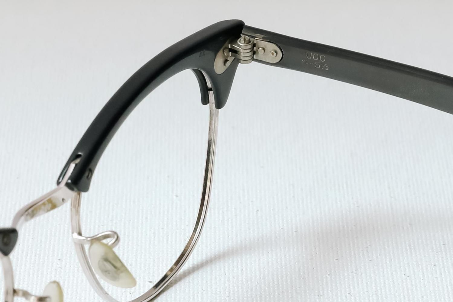 「Universal Optical」は、20世紀前半から中期にかけてアメリカで数多くのフレームを生み出した老舗ブランドです。実用性に優れた堅牢な構造と、時代の流行を捉えたデザインを両立させ、1950〜60年代には数多くの眼鏡店や光学機器店で取り扱われました。当時のアメリカにおいて、普遍的で信頼できるメガネを供給してきた存在であり、いまではヴィンテージ市場で知る人ぞ知るブランドとして評価されています。