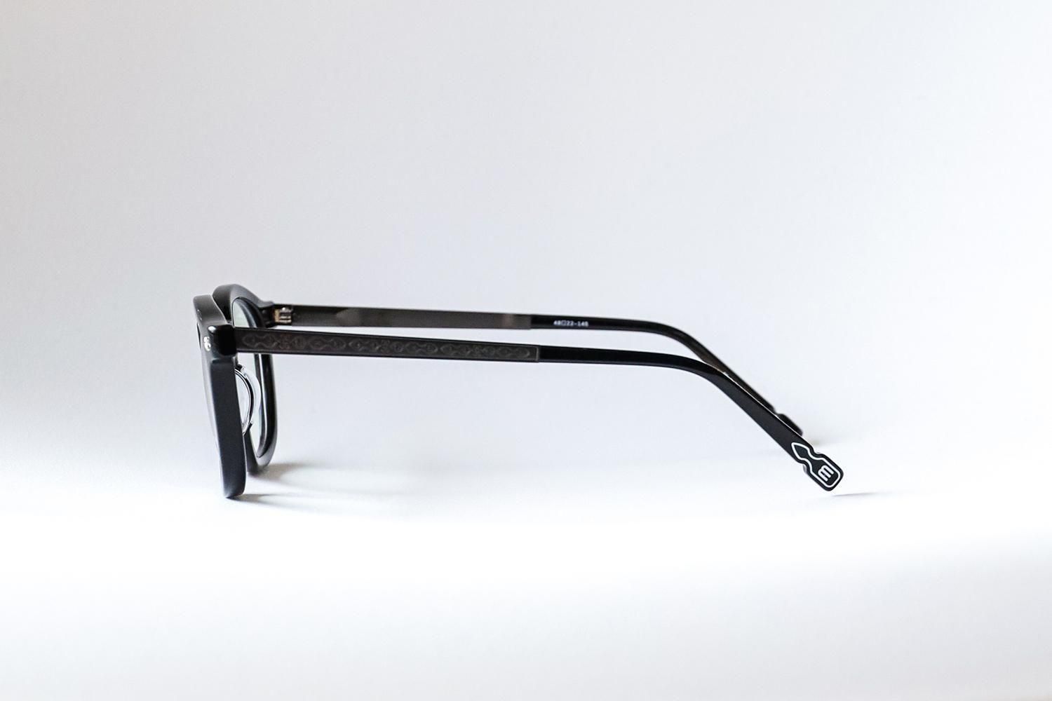 パリジャン型の美しいカーブを描くフロントと、太めのテンプルが組み合わさることで、顔に立体感と奥行きを生み出します。