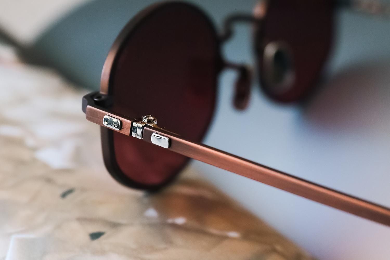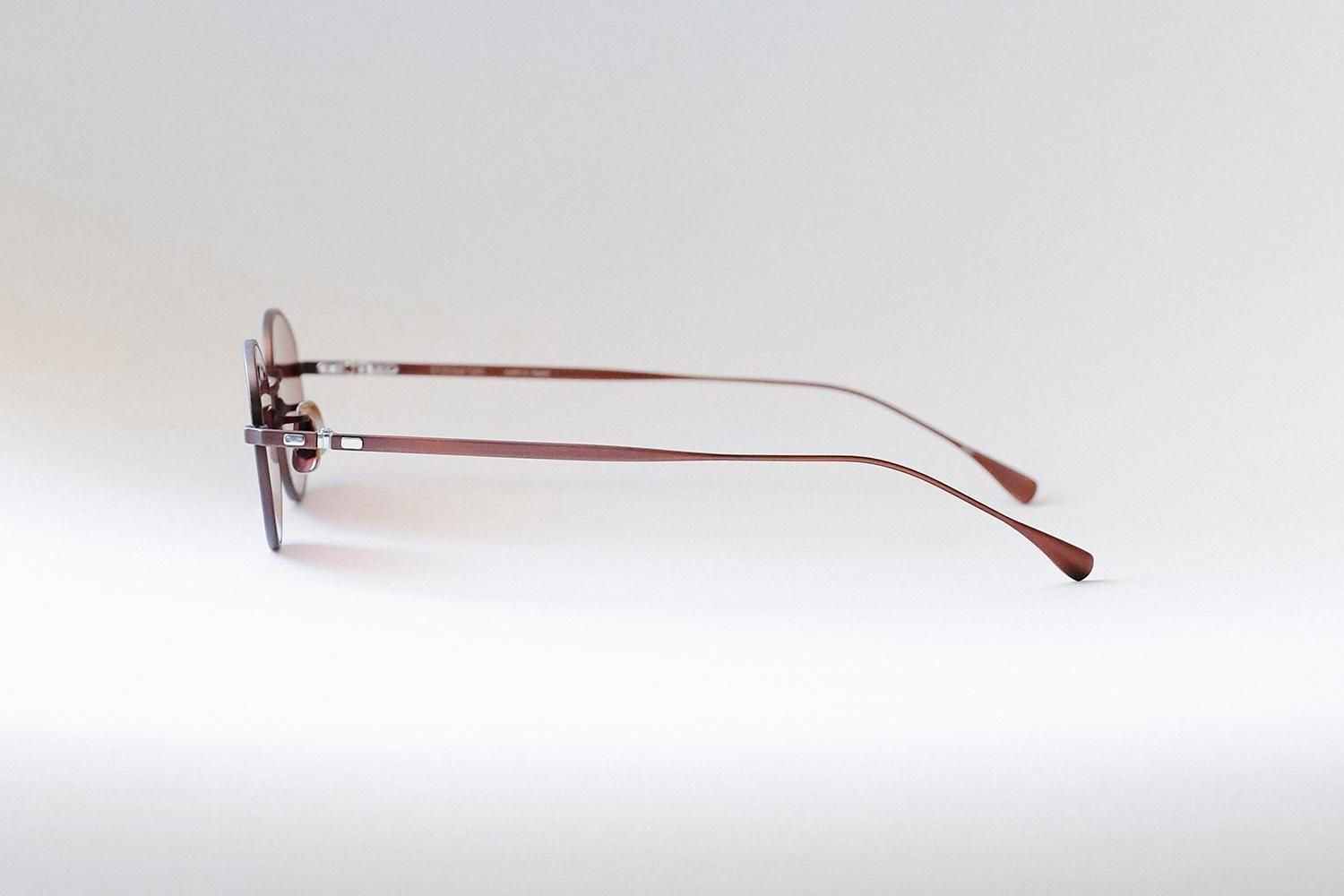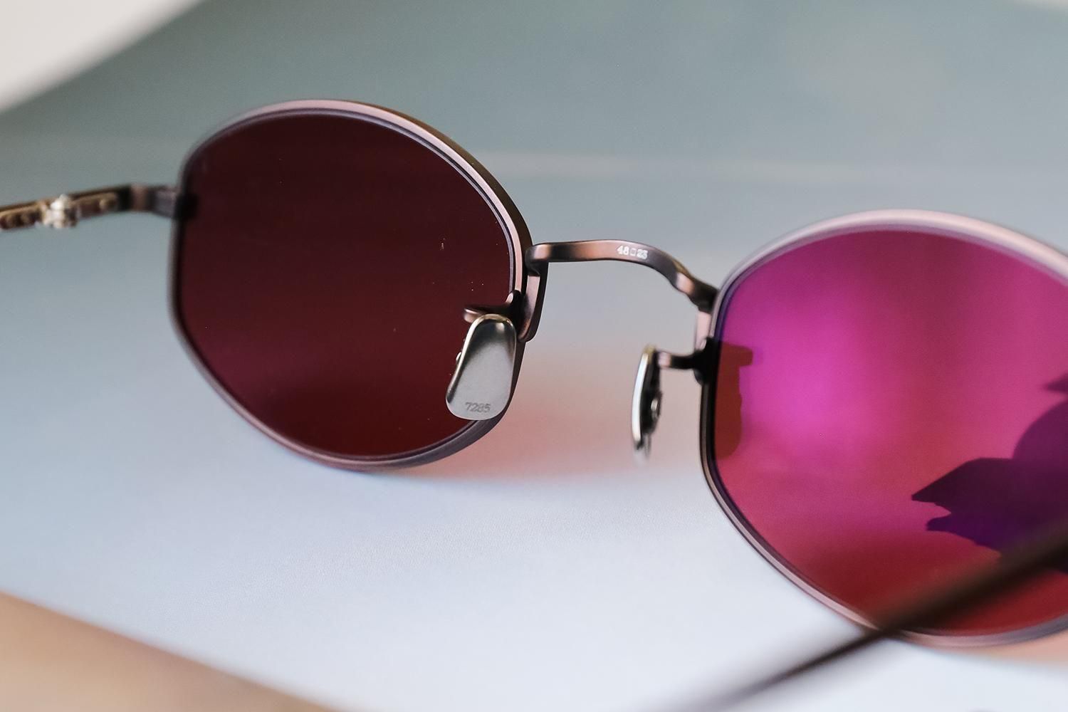 無駄な装飾を一切削ぎ落とし、素材そのものの美しさを最大限に引き出した繊細なメタルフレームは、かける人の個性を邪魔しません。テンプルには、精密なネジやパーツが美しく計算され配置されており、その技術力の高さに驚きつつも納得のコストパフォーマンスだとかみしめます。