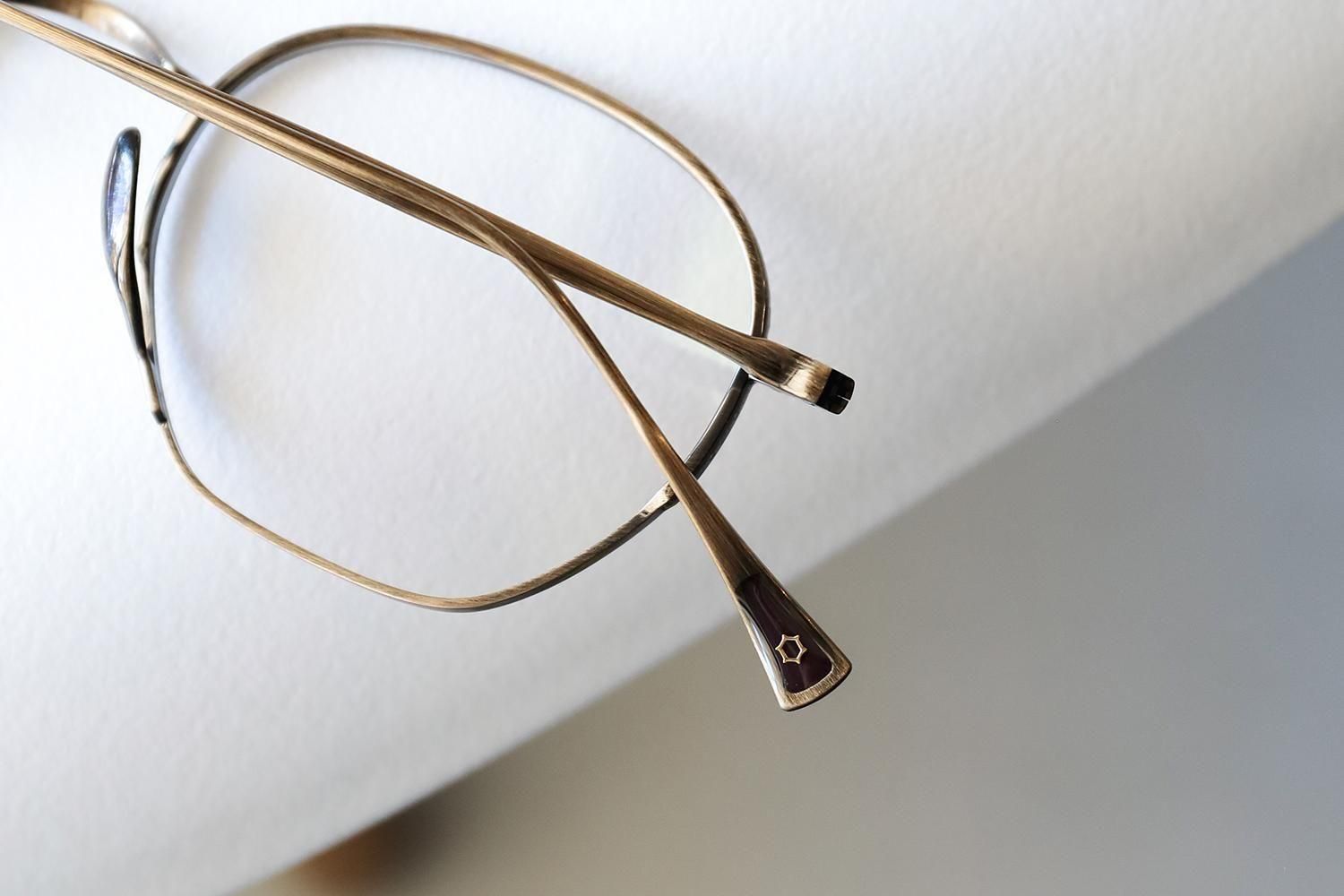 テンプルエンドにはアイコニックな亀の意匠を施し、ブランドらしさを控えめに表現しています。