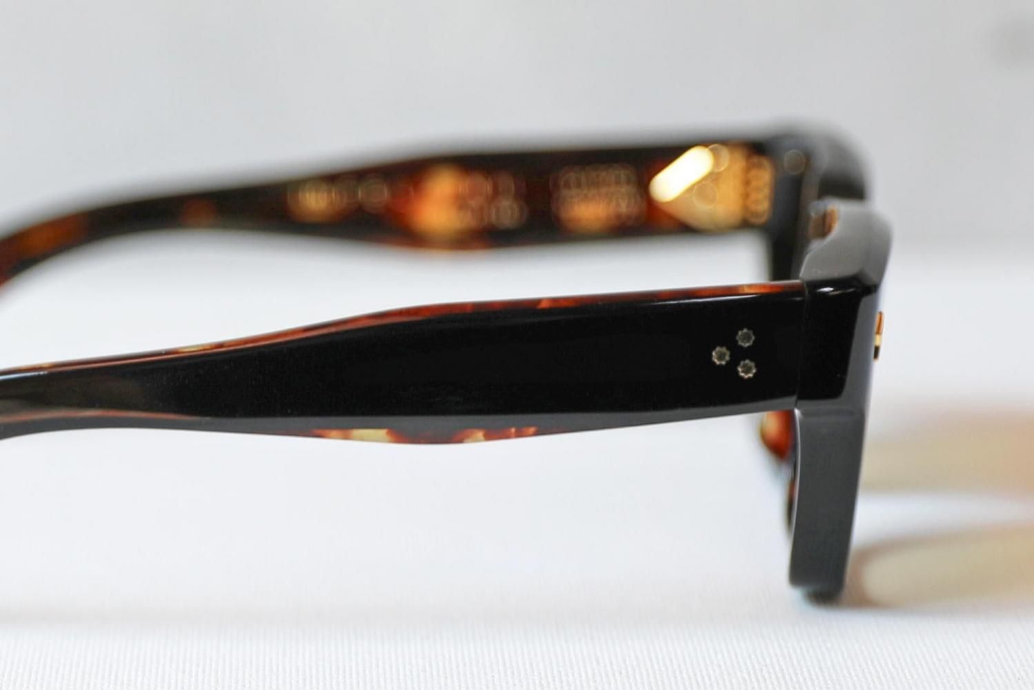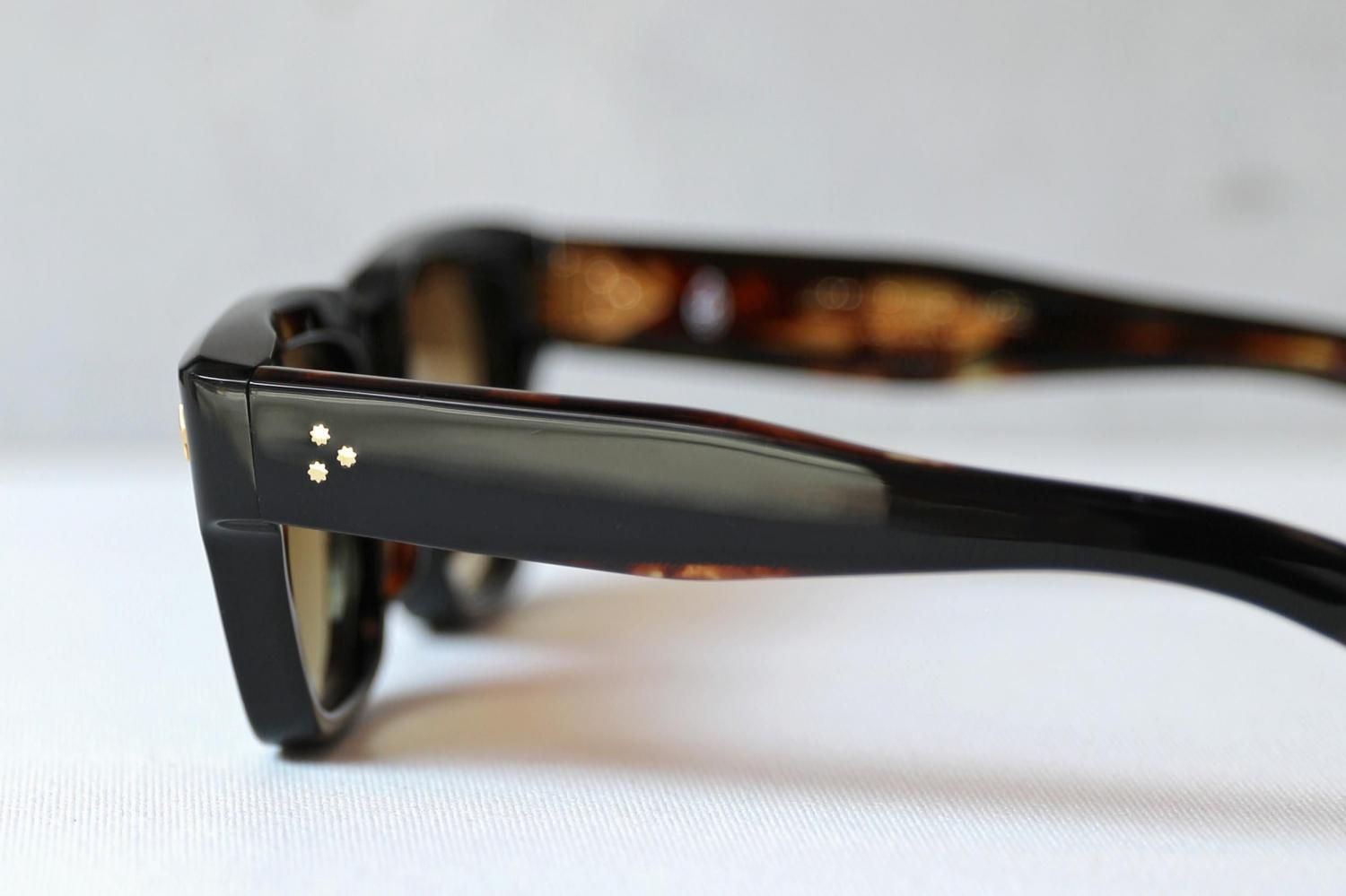 col,NOIR 15 はブラックをベースとしつつ、テンプルを鼈甲柄で切り替えたカラーリング。レンズはブラウンのグラデーションカラーレンズを搭載しております。