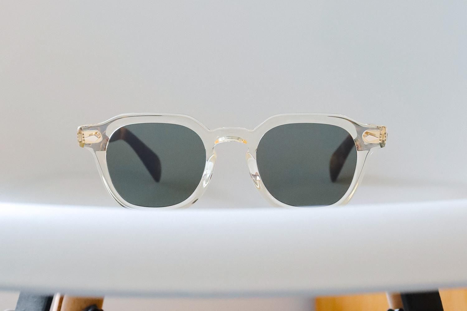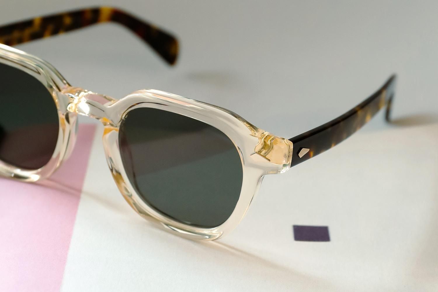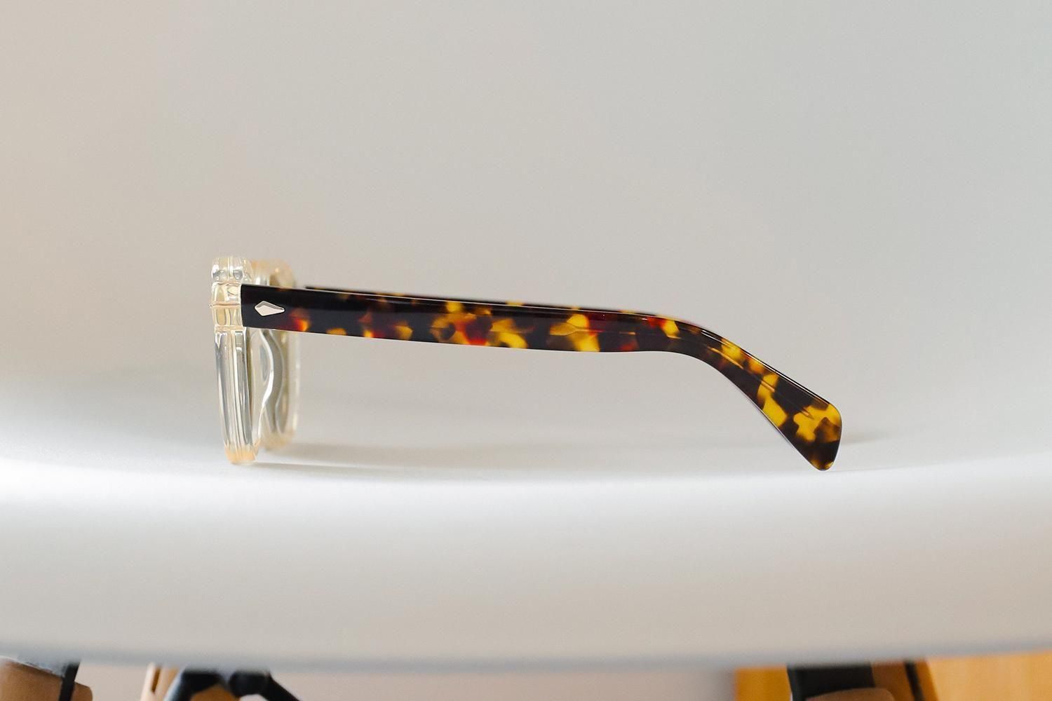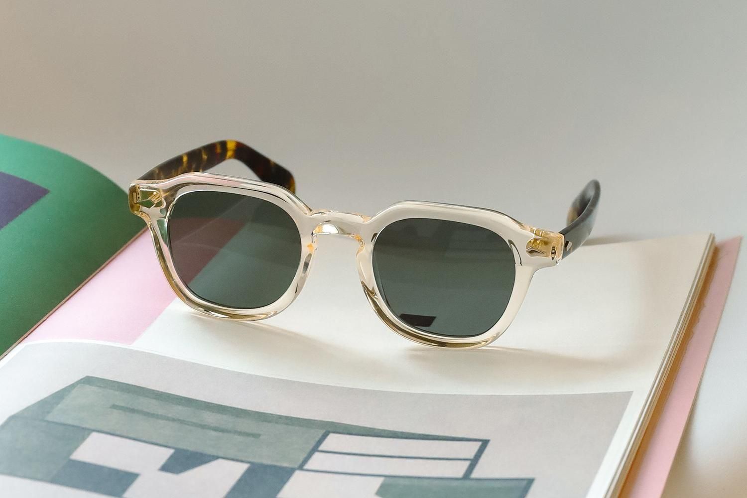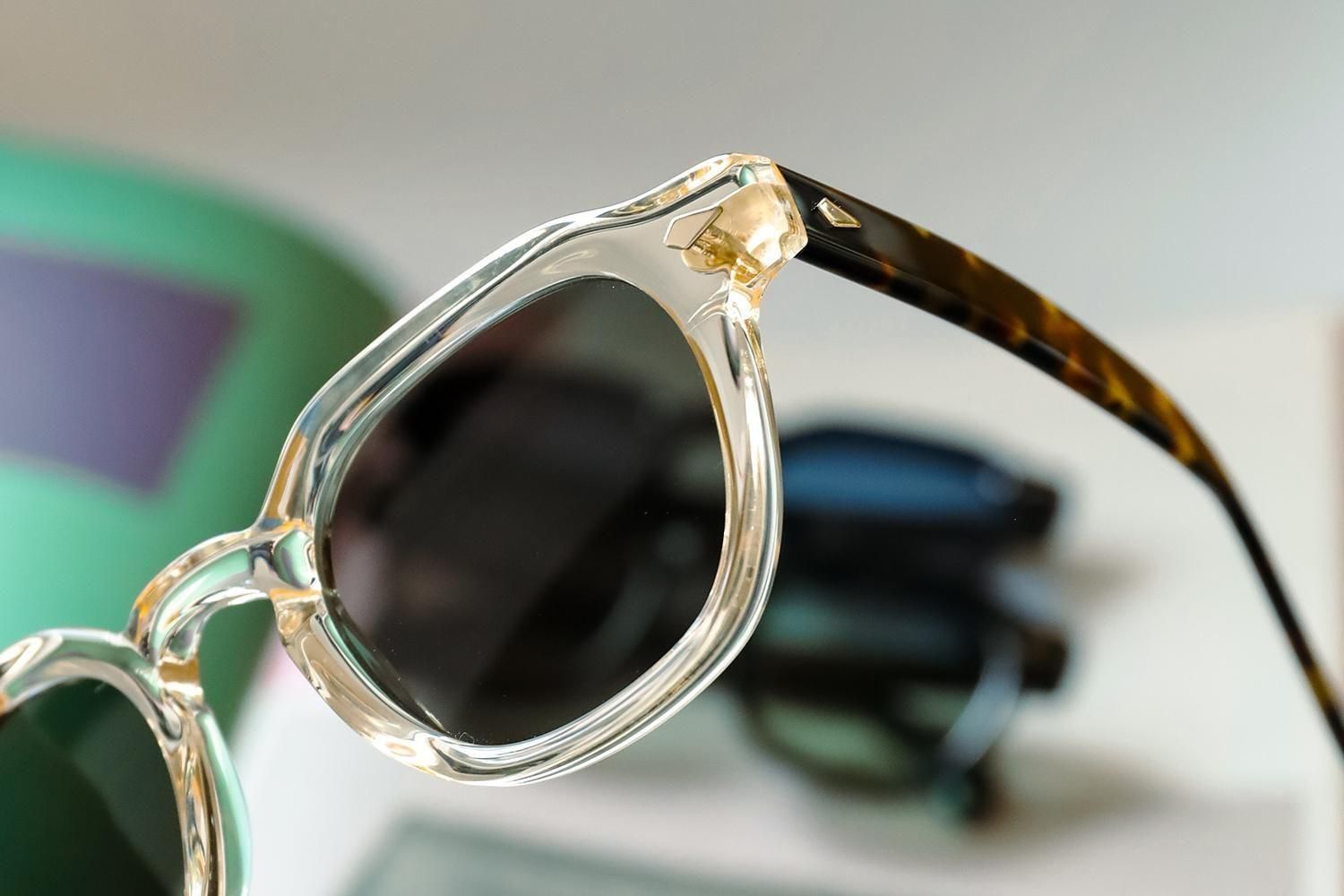 透明感のある飴色“キハク”に、濃いめのダークグリーンレンズを組み合わせた一本。