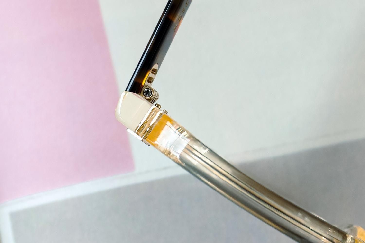 太めのテンプルには滑り止め加工を施し、見た目の存在感と掛け心地の快適さを両立。
