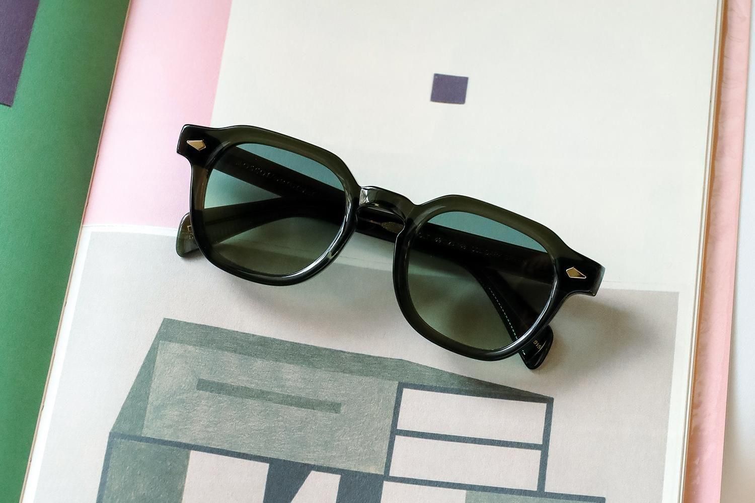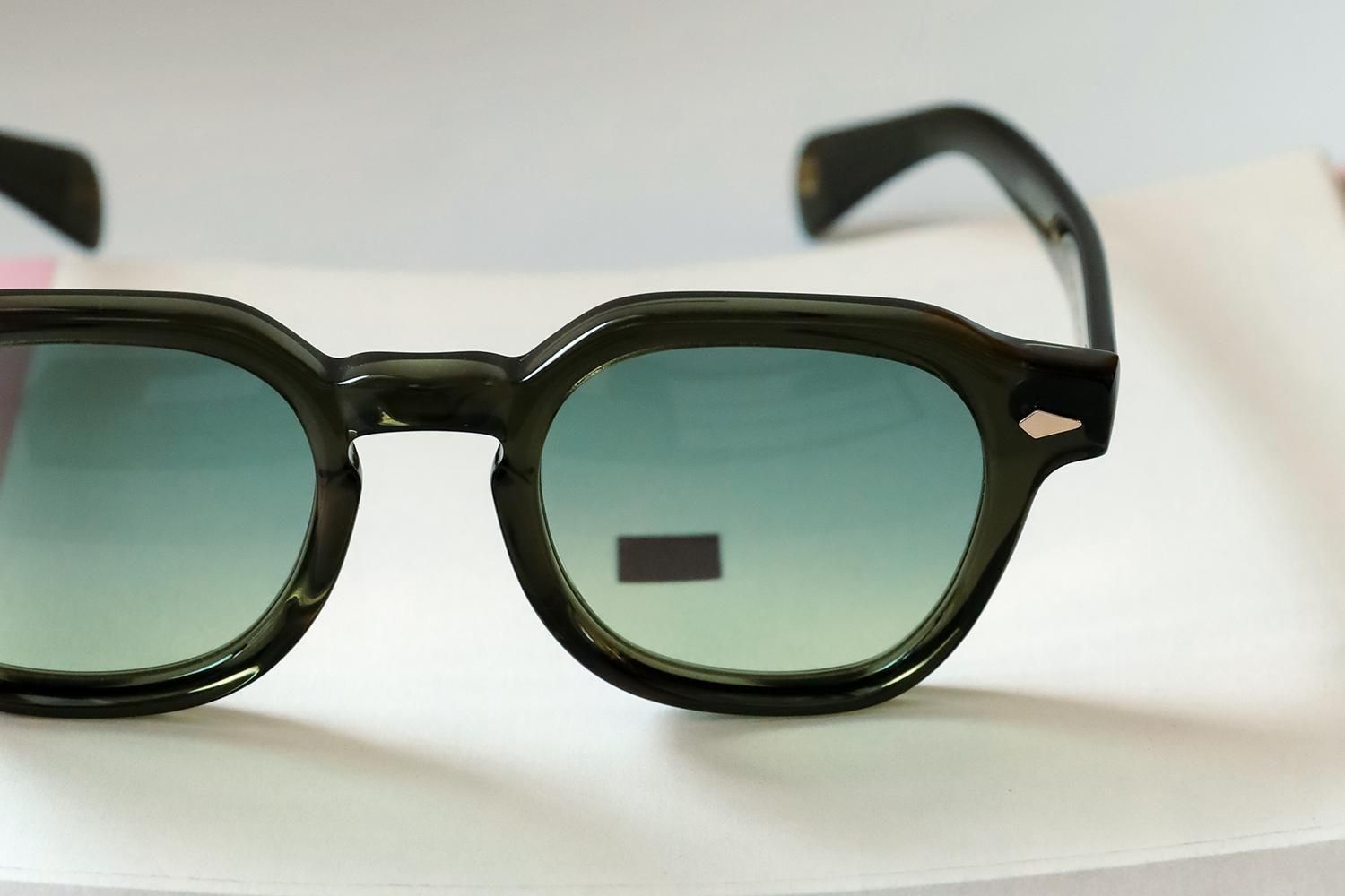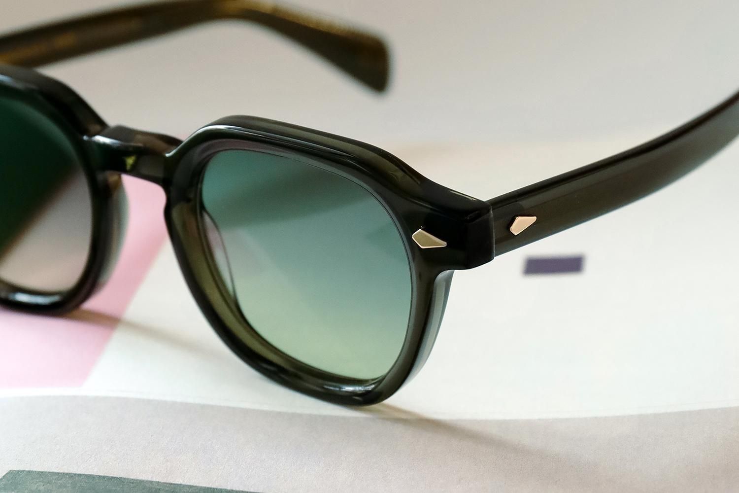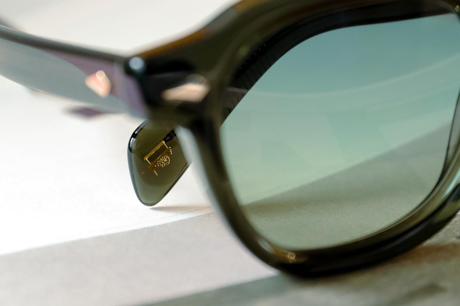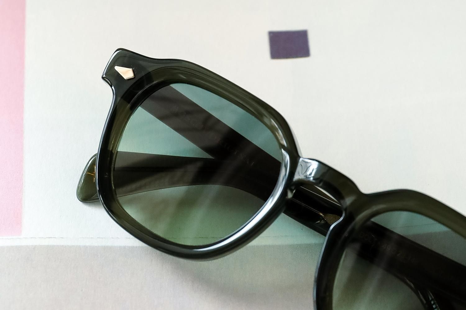ダークグリーンのフレームに、トーンを合わせたグリーンレンズを搭載。