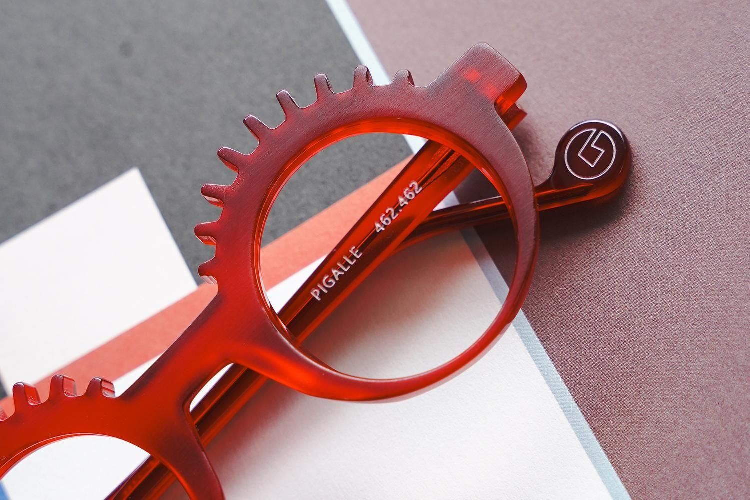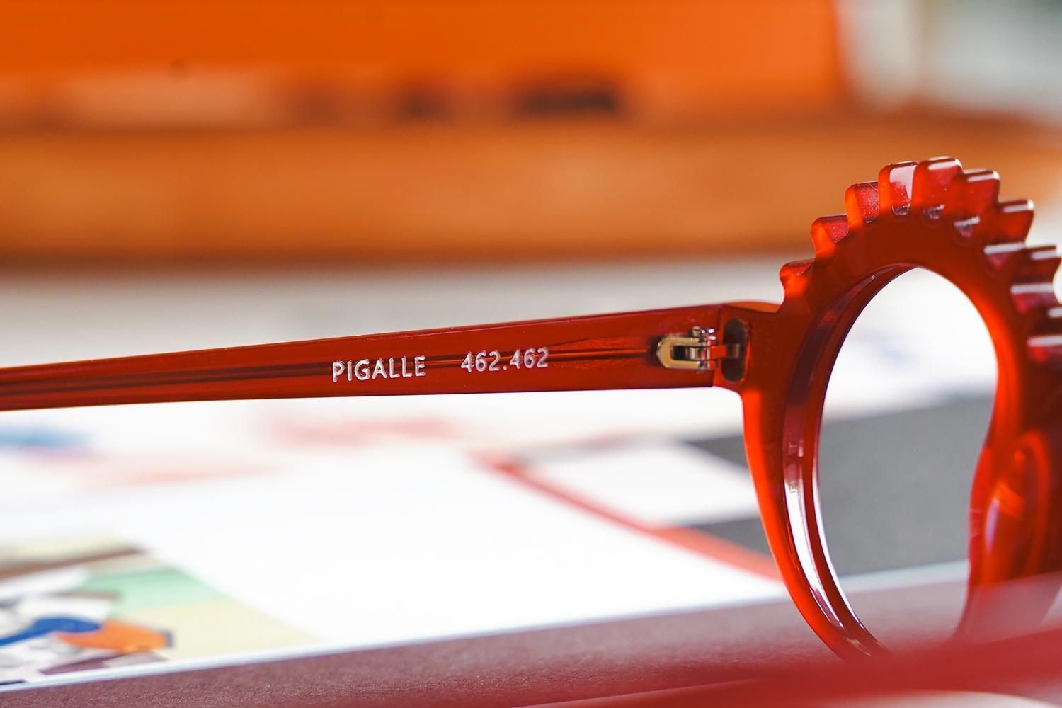 ラウンドのメガネにまつ毛のようなデザインをあしらったPIGALLE