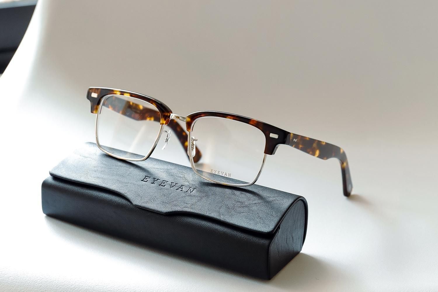 1970年代のUSヴィンテージをベースにした、EYEVAN初となるビッグシェイプのサーモントブロウモデル「Grater」。