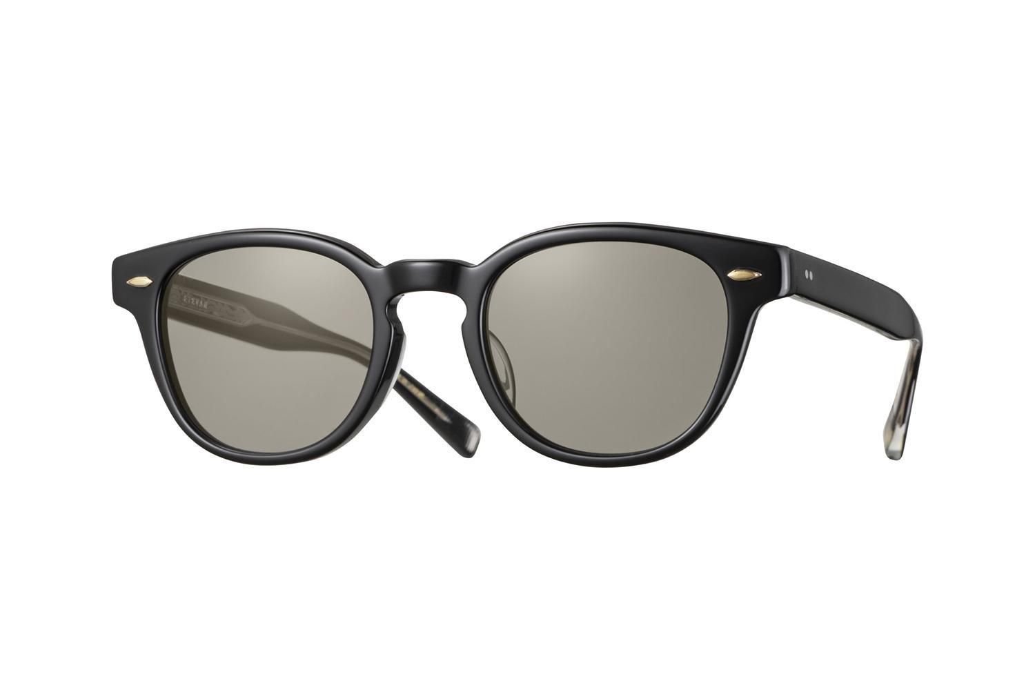 ボストンウェリントンフロントに、オリジナルのカシメ飾り丁番を採用したセルフレームのサングラス。