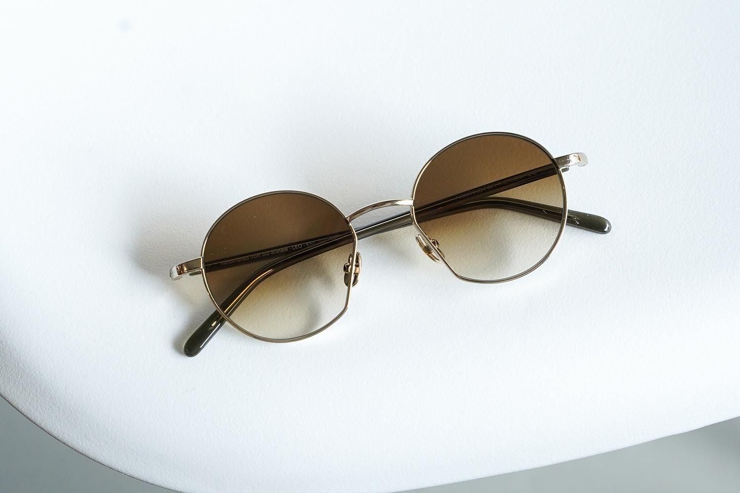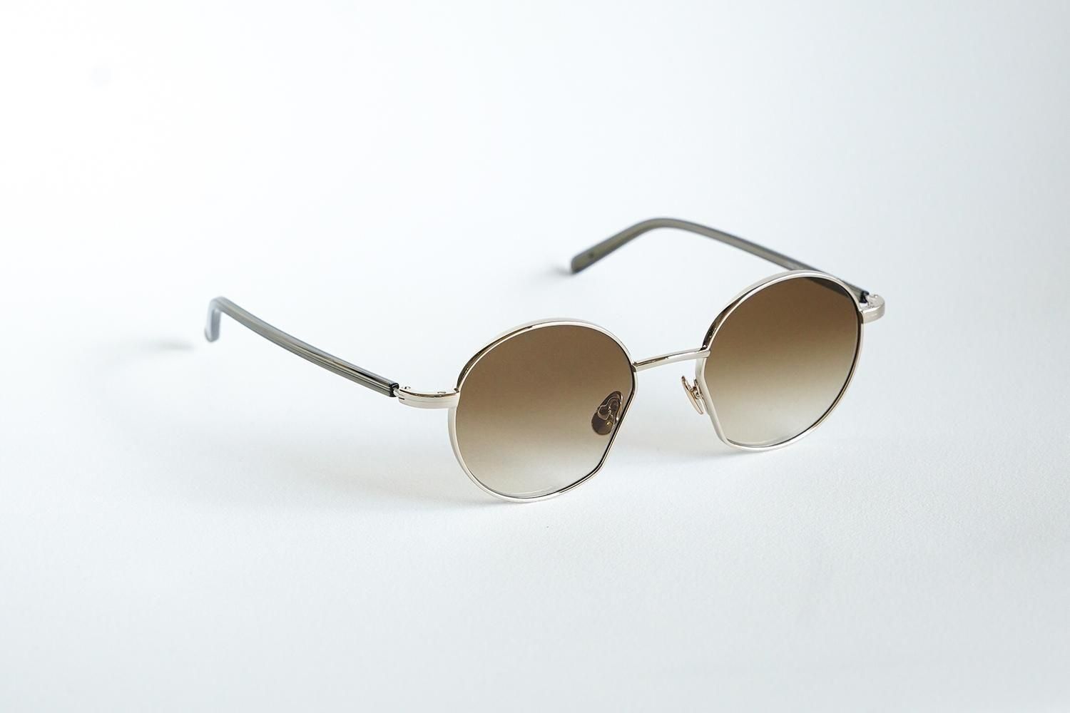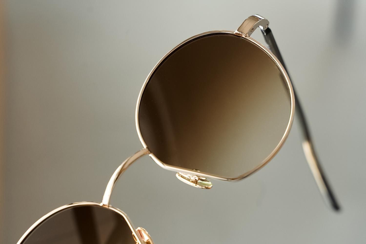 柔らかいゴールドメタルとダークブラウンのグラデーションレンズの組み合わせは、落ち着きと上品さを兼ね備えた大人のサングラスです。
