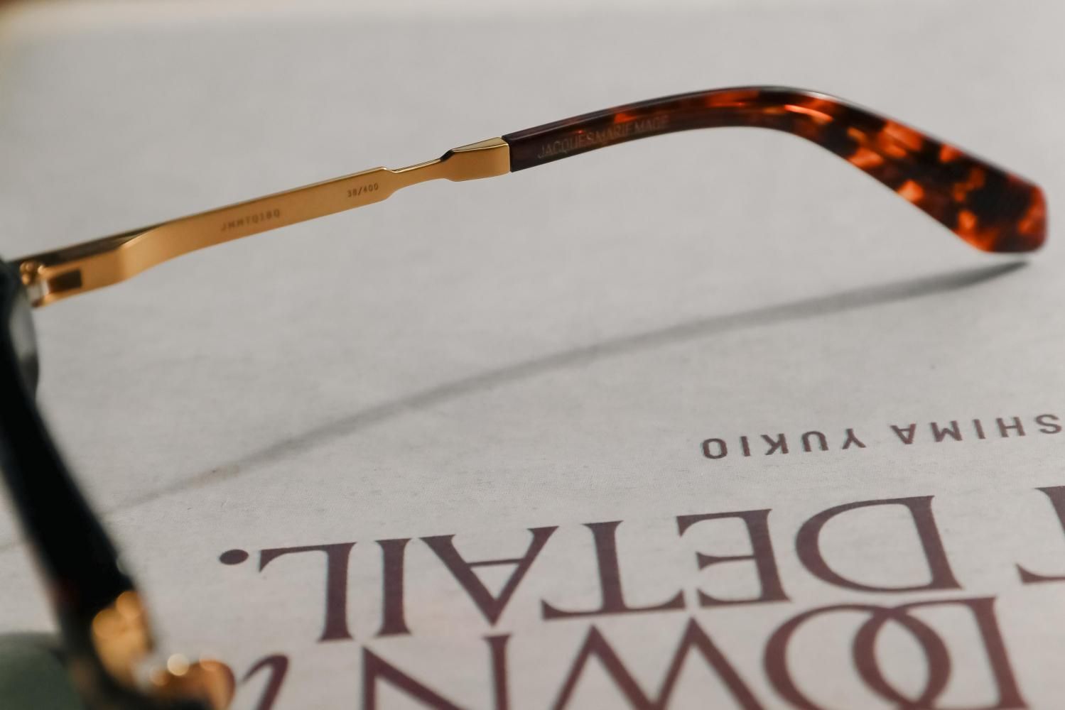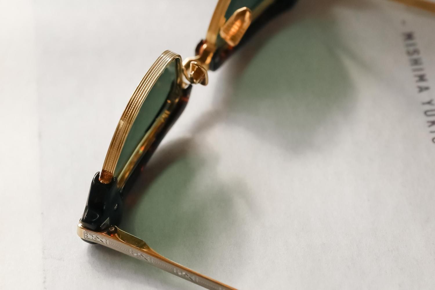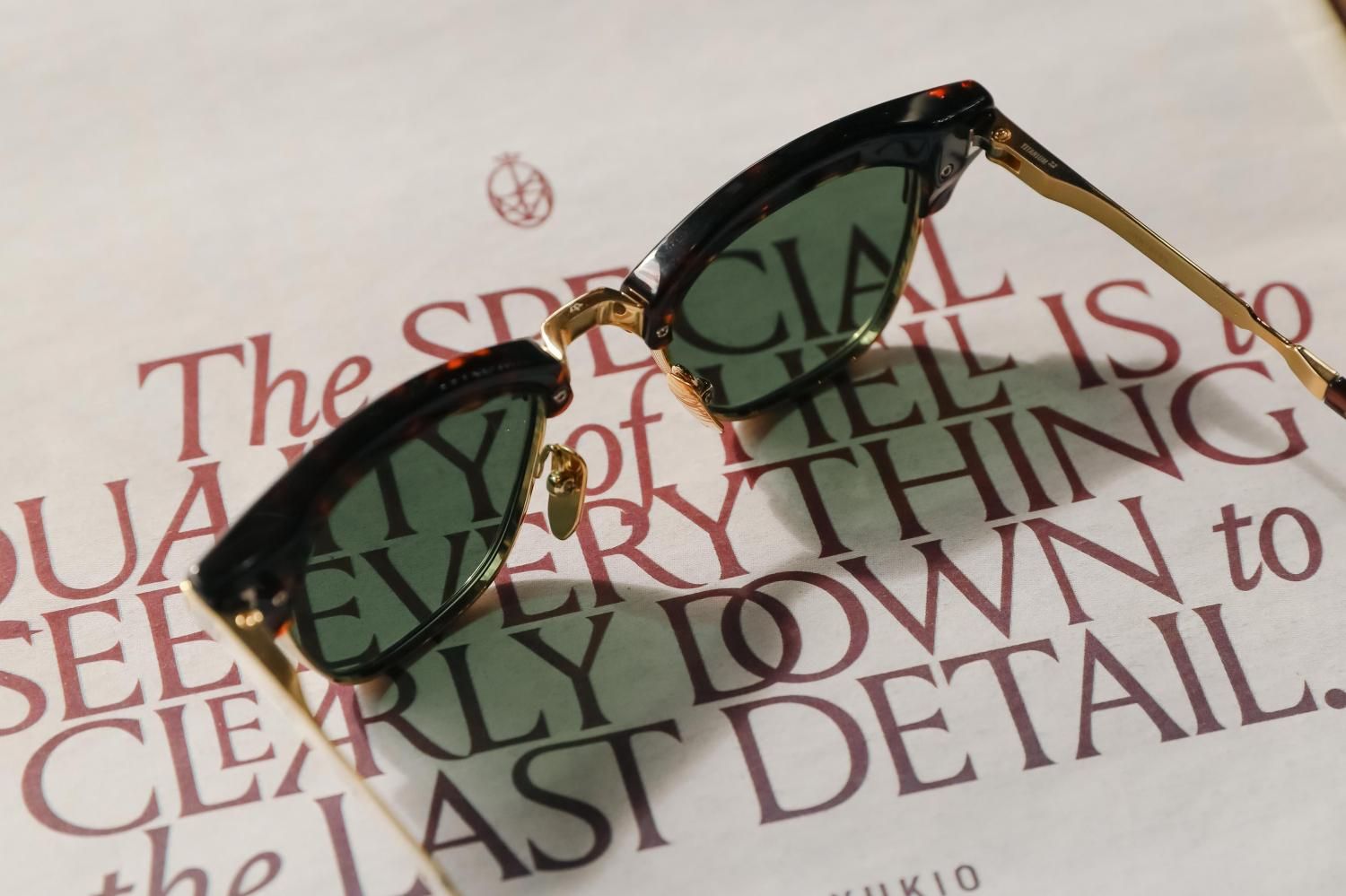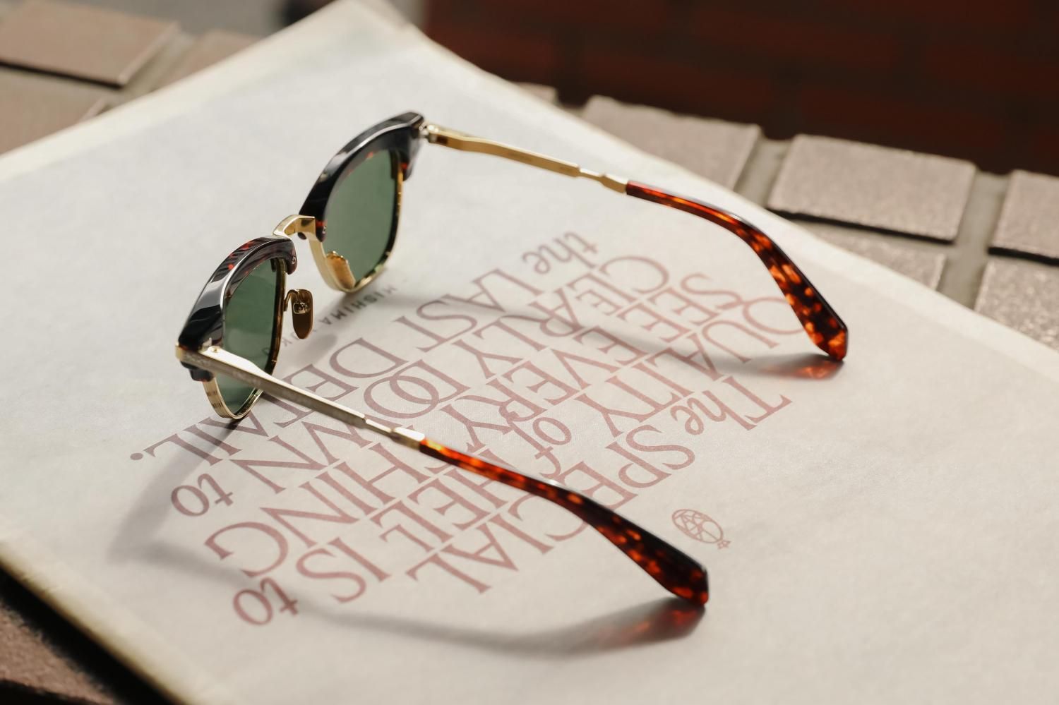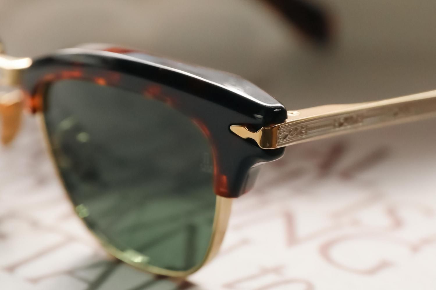 さらに、刻印入りのテンプルや独自のアローヘッドモチーフ、立体的なアセテートチップなど、細部に至るまで緻密なこだわりを表現しています。