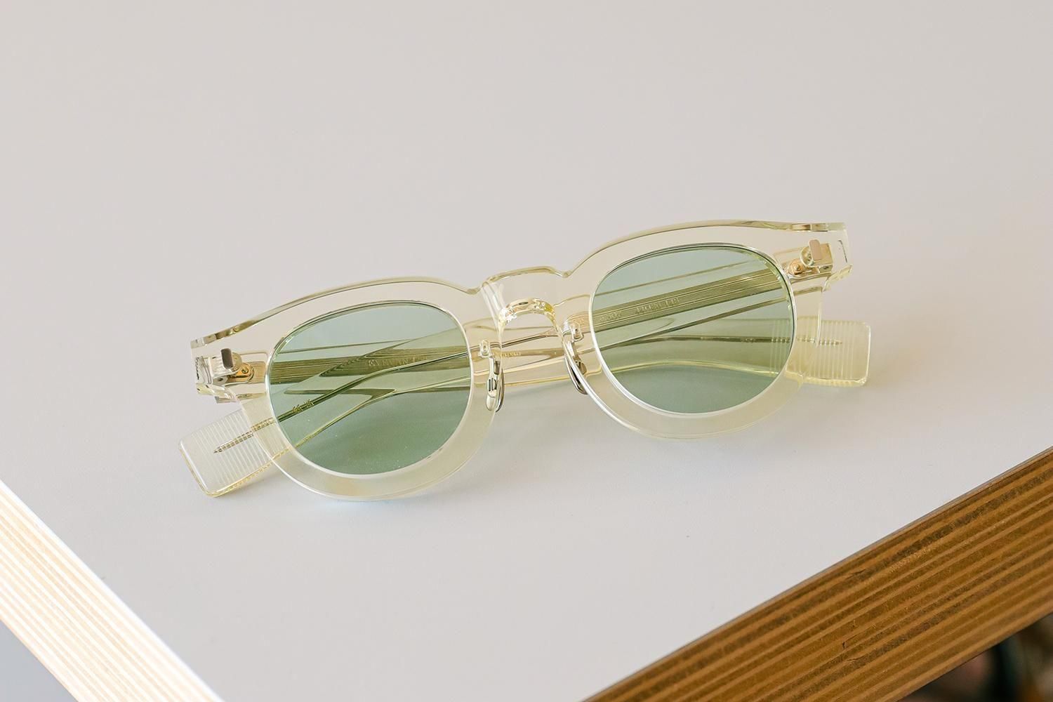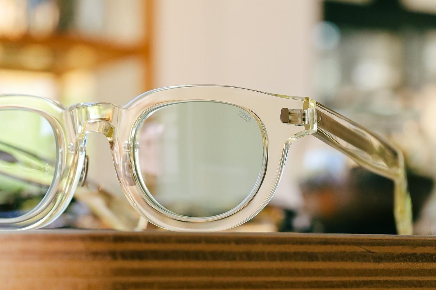 ブランドのシグネチャーパーツであるミリタリー丁番をテンプル内側に配した仕様で、ヴィンテージにはない、今を生きる人間達のアイデアと技術で作りあげたコンテンポラリーなプロダクトとなっております。