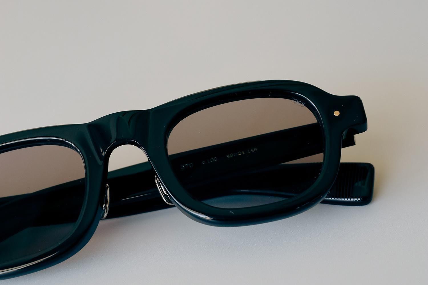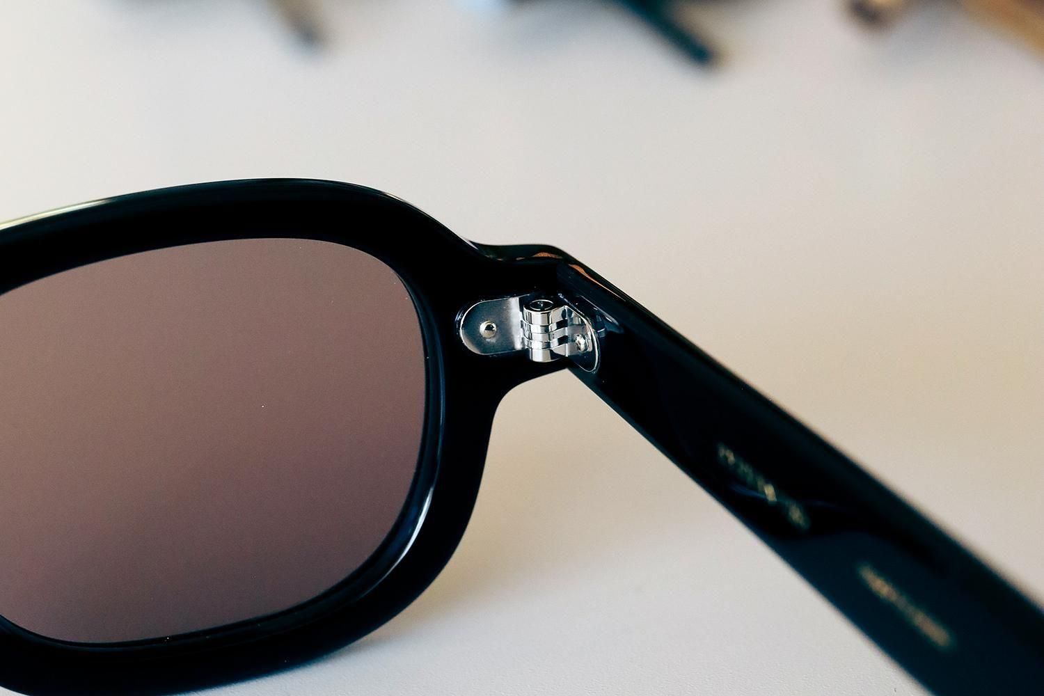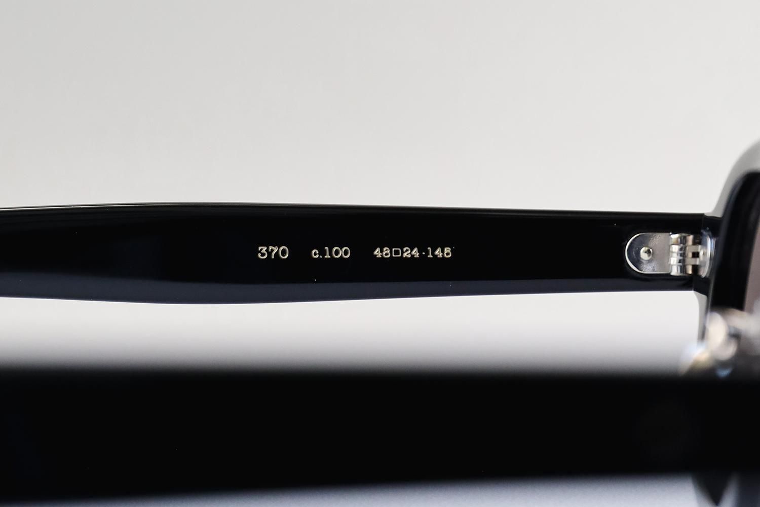 漠然としたシェイプデザインを具現化した「370」は、厚めの生地感や天地幅のあるブリッジなどが創出する無骨なイメージとK10の1PINや精緻な設計の埋め込みカシメ丁番が持つ繊細なイメージが同居した形容しがたいユニークな存在感を放ちます。