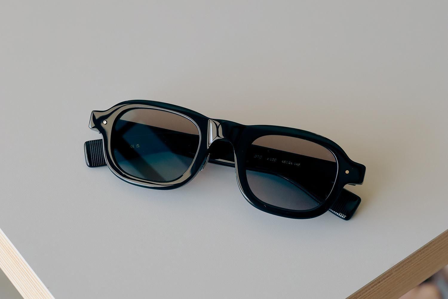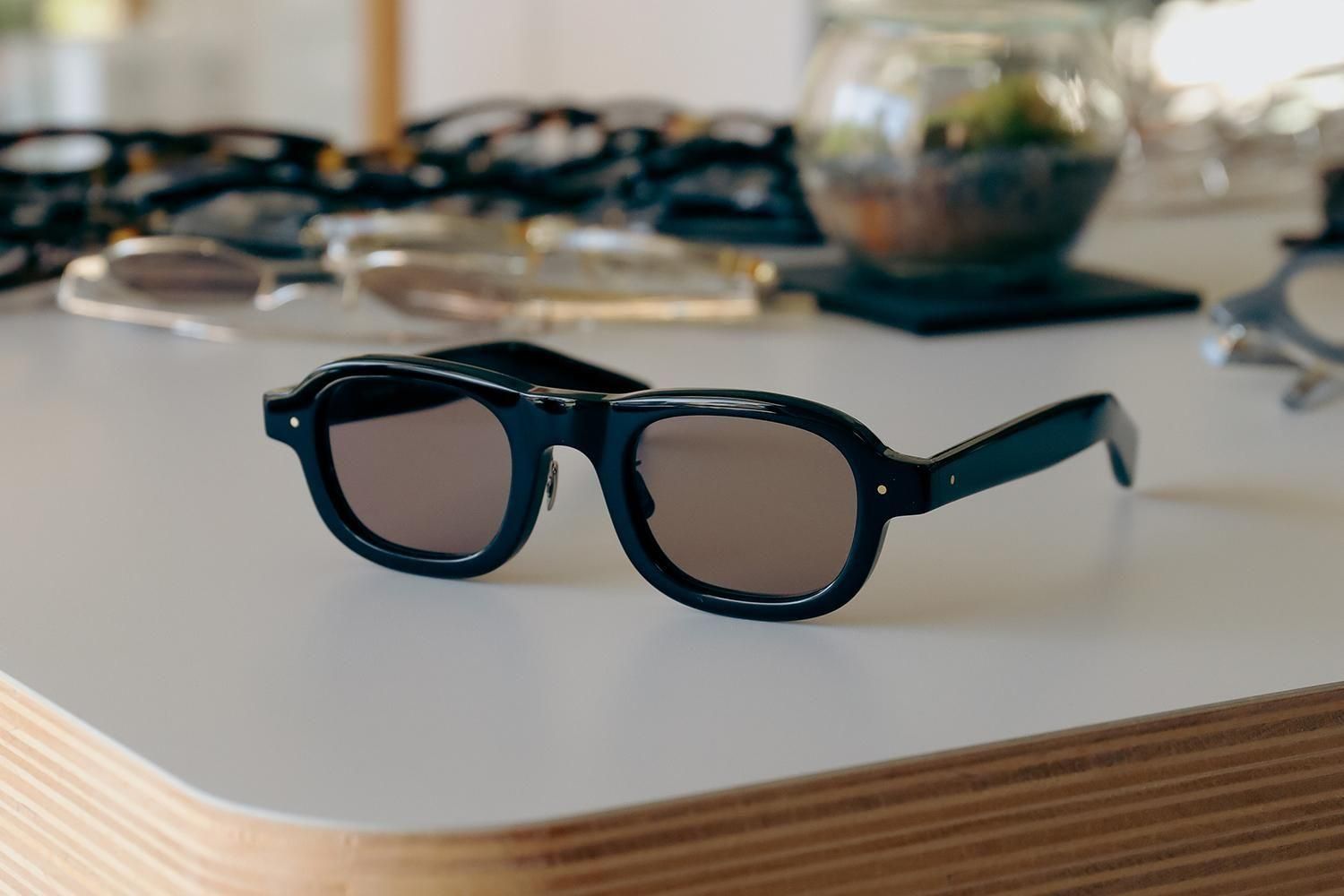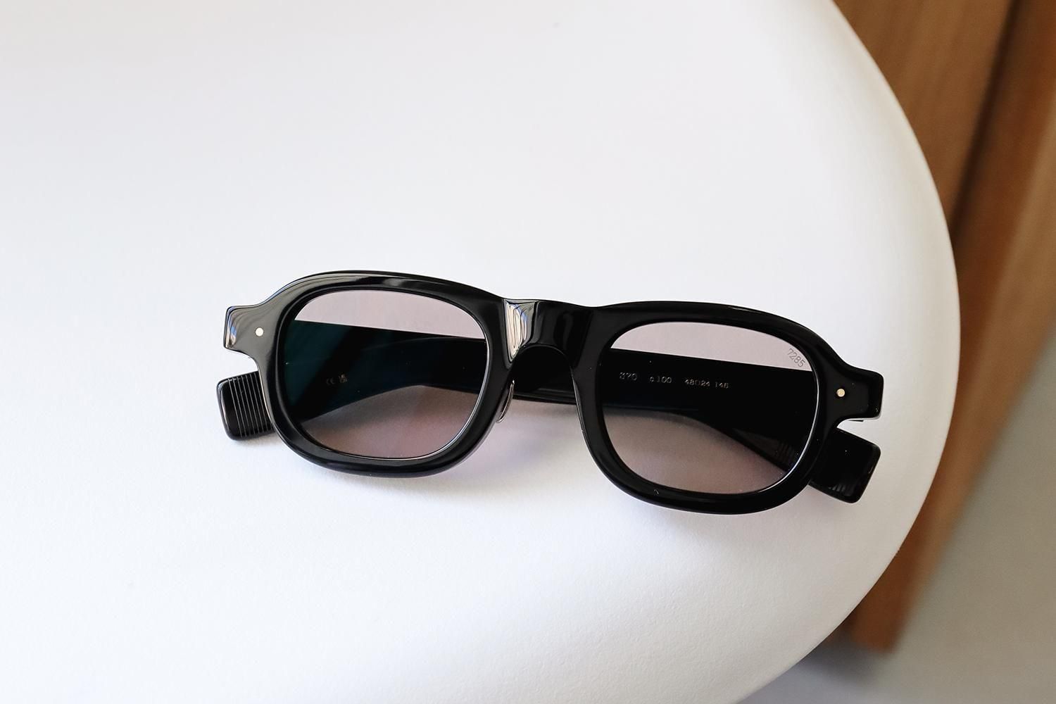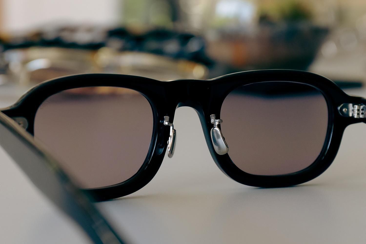 漠然としたシェイプデザインを具現化した「370」は、厚めの生地感や天地幅のあるブリッジなどが創出する無骨なイメージとK10の1PINや精緻な設計の埋め込みカシメ丁番が持つ繊細なイメージが同居した形容しがたいユニークな存在感を放ちます。