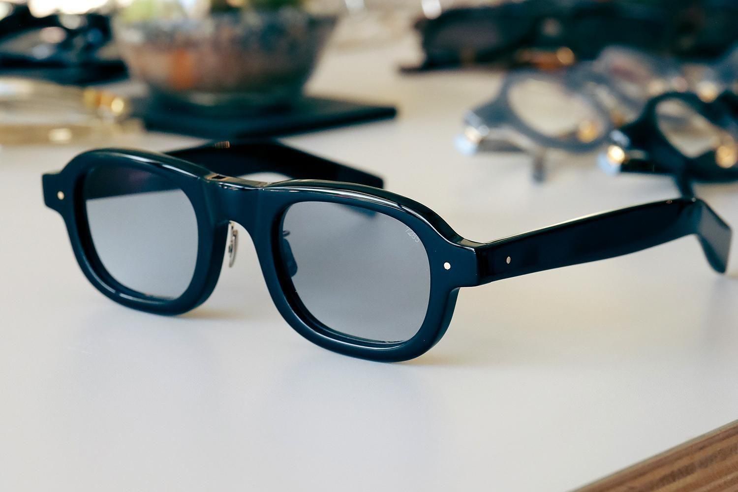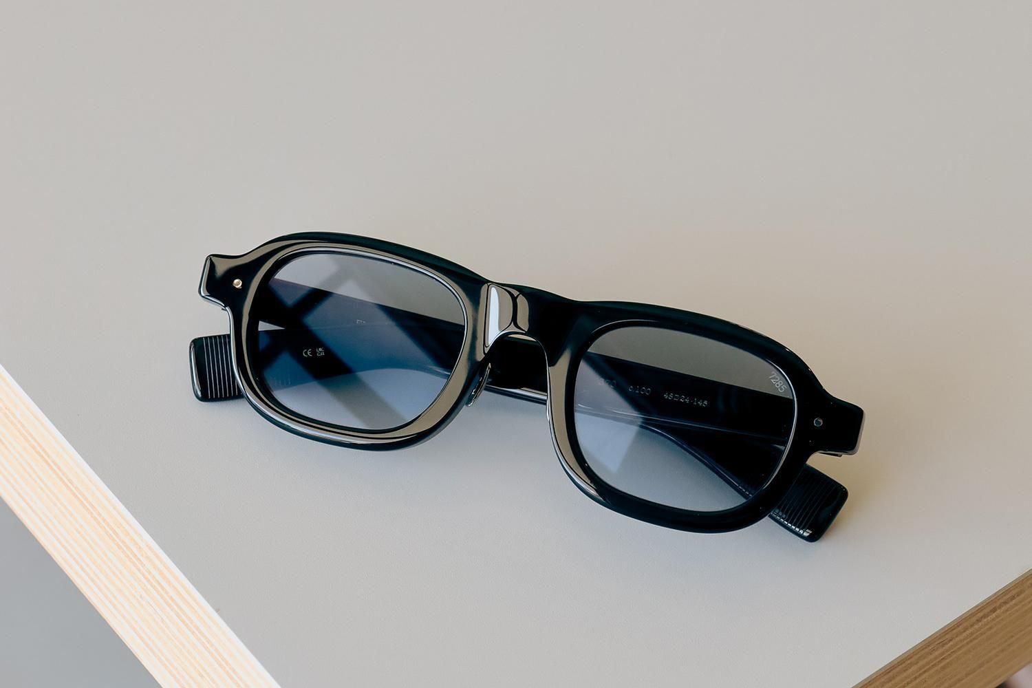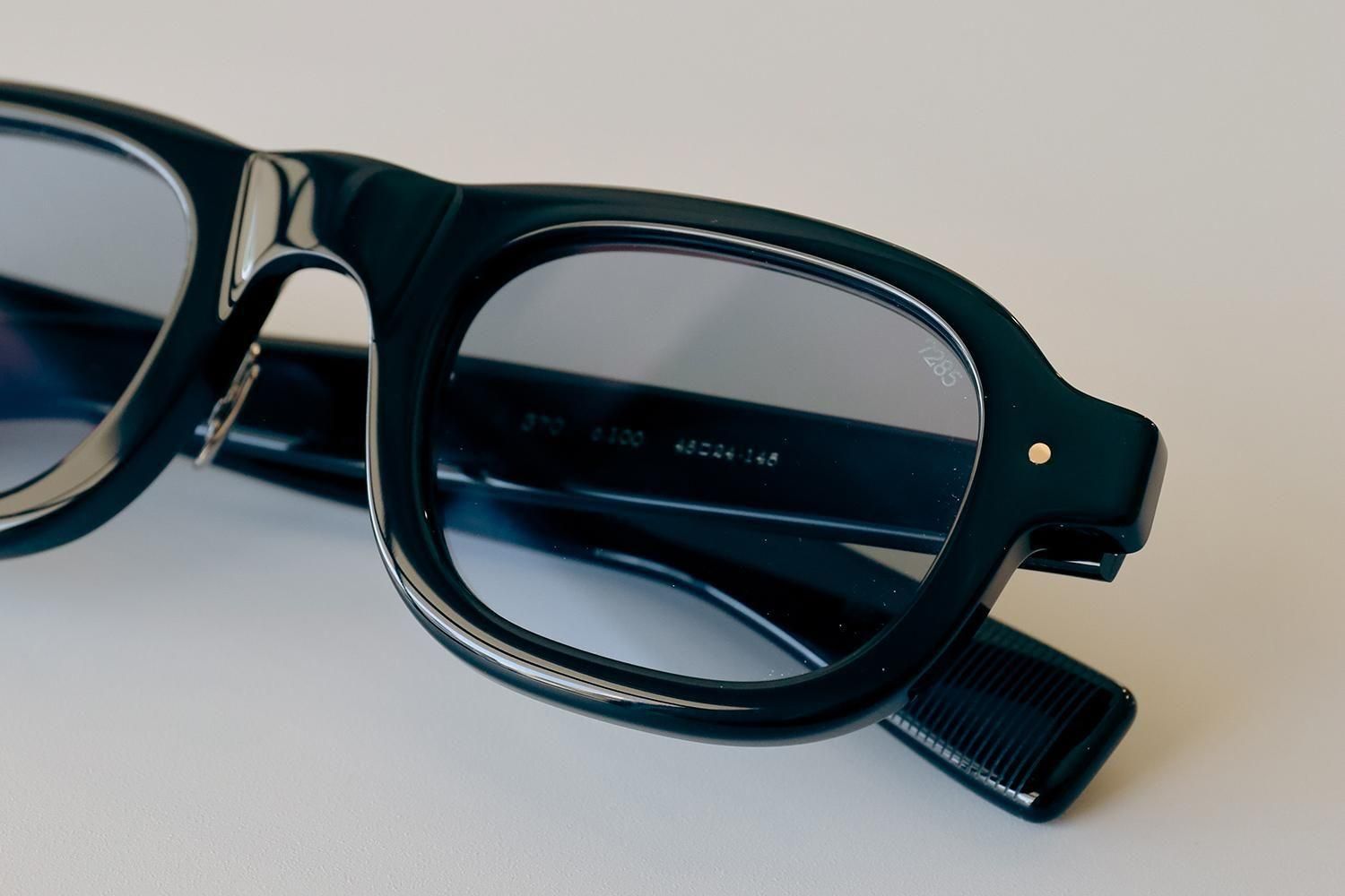 漠然としたシェイプデザインを具現化した「370」は、厚めの生地感や天地幅のあるブリッジなどが創出する無骨なイメージとK10の1PINや精緻な設計の埋め込みカシメ丁番が持つ繊細なイメージが同居した形容しがたいユニークな存在感を放ちます。