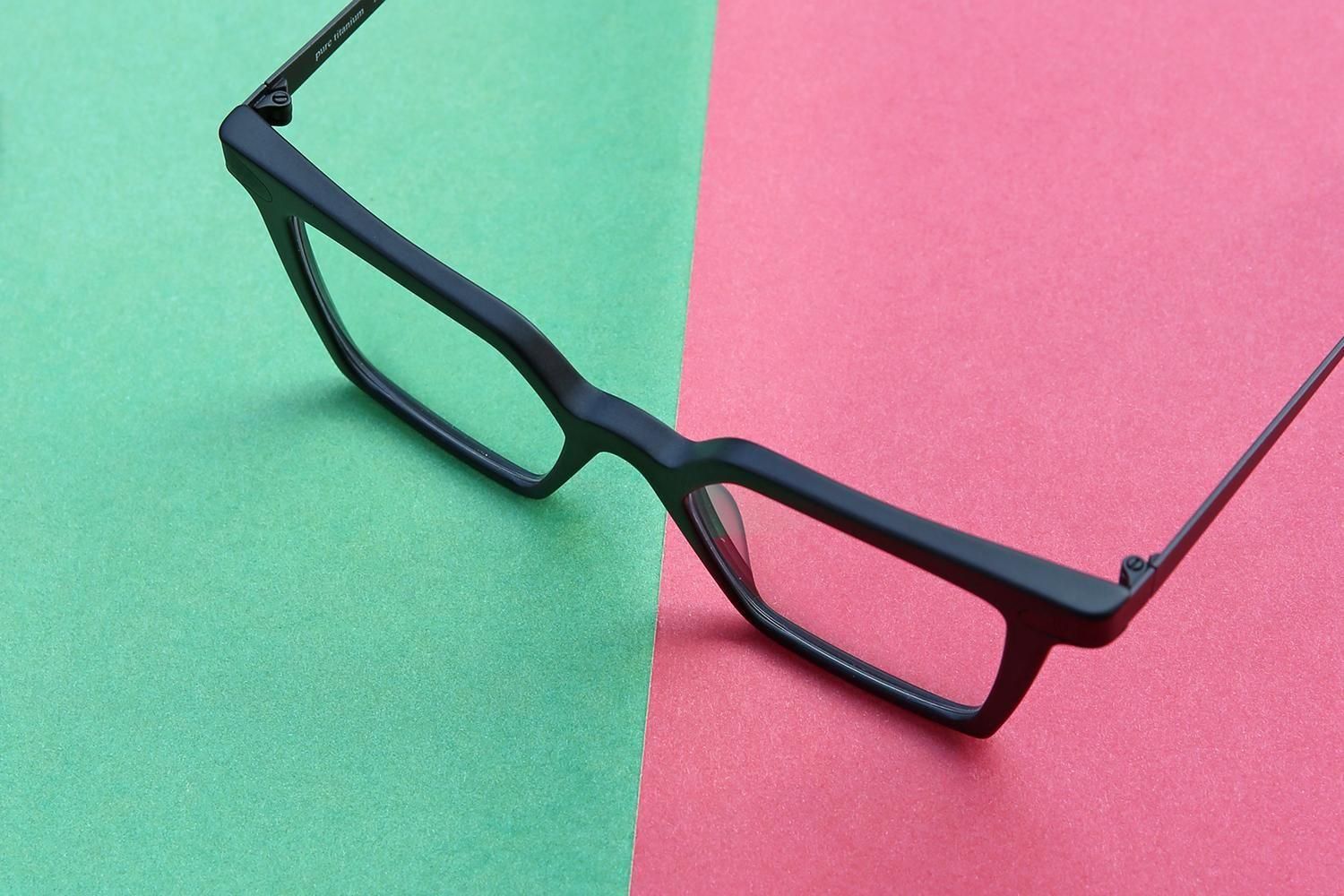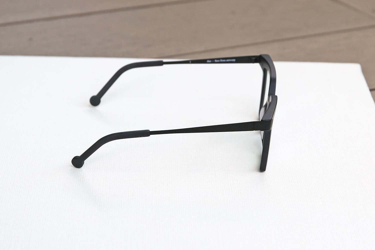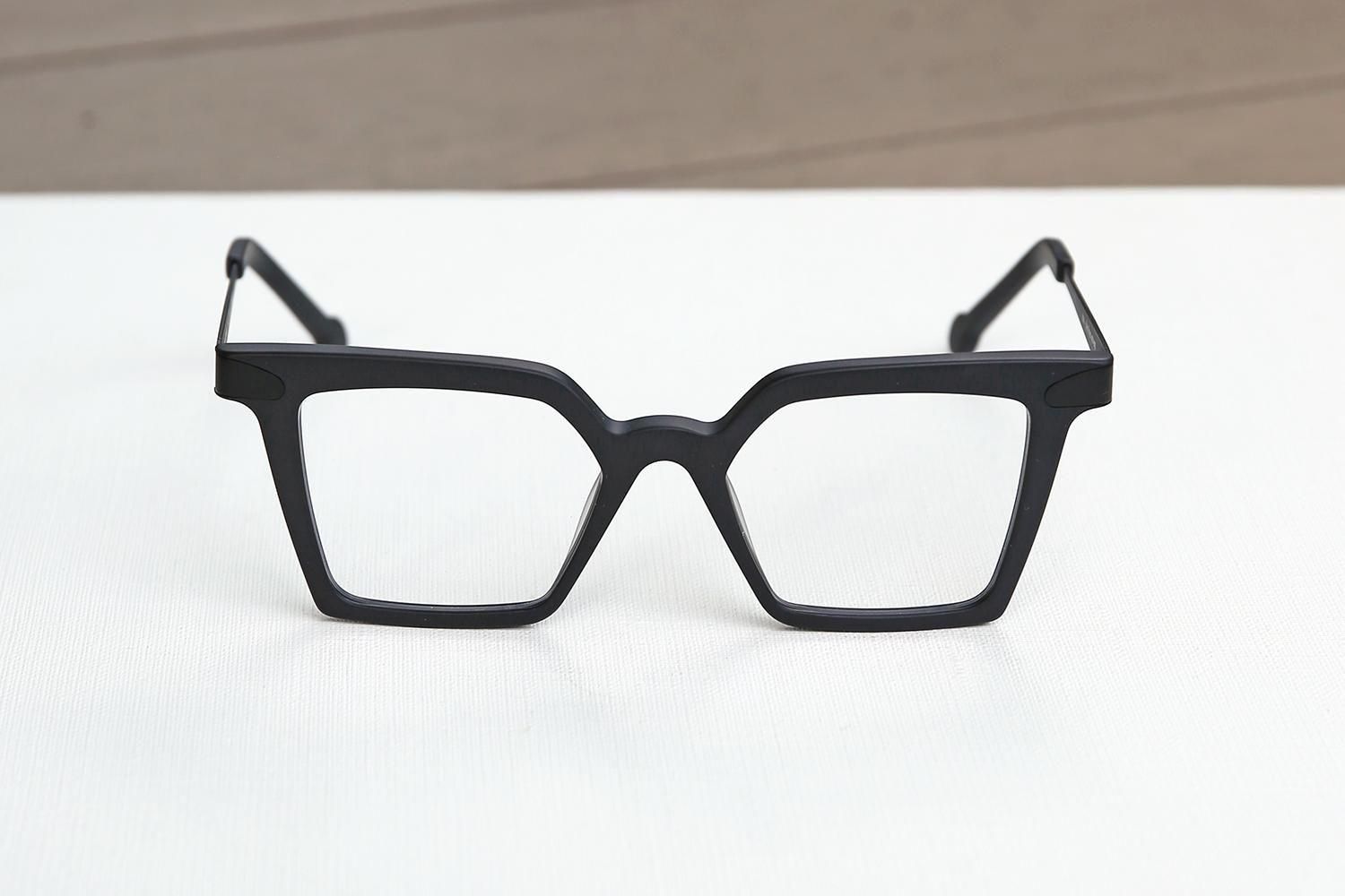 同色でまとめたブラックは、アセテートの黒とメタルの黒とのコントラストがなんとも独特な雰囲気を纏います。