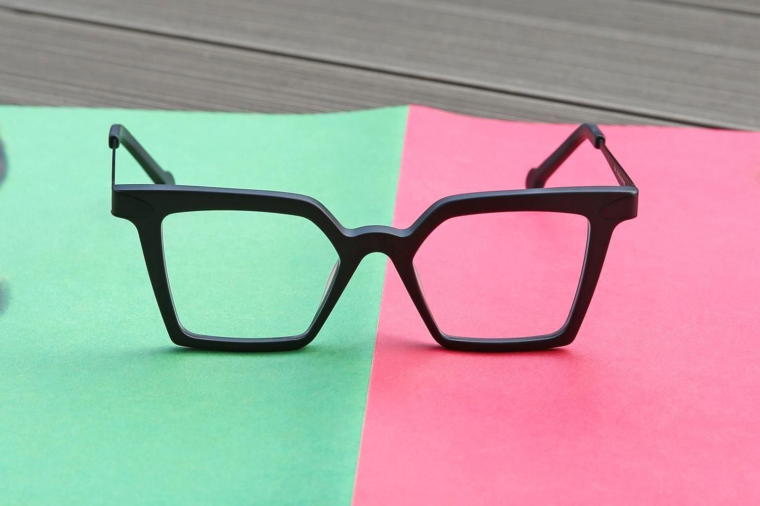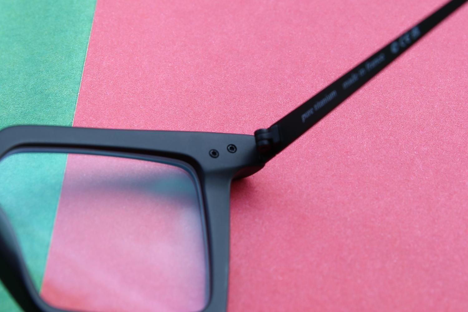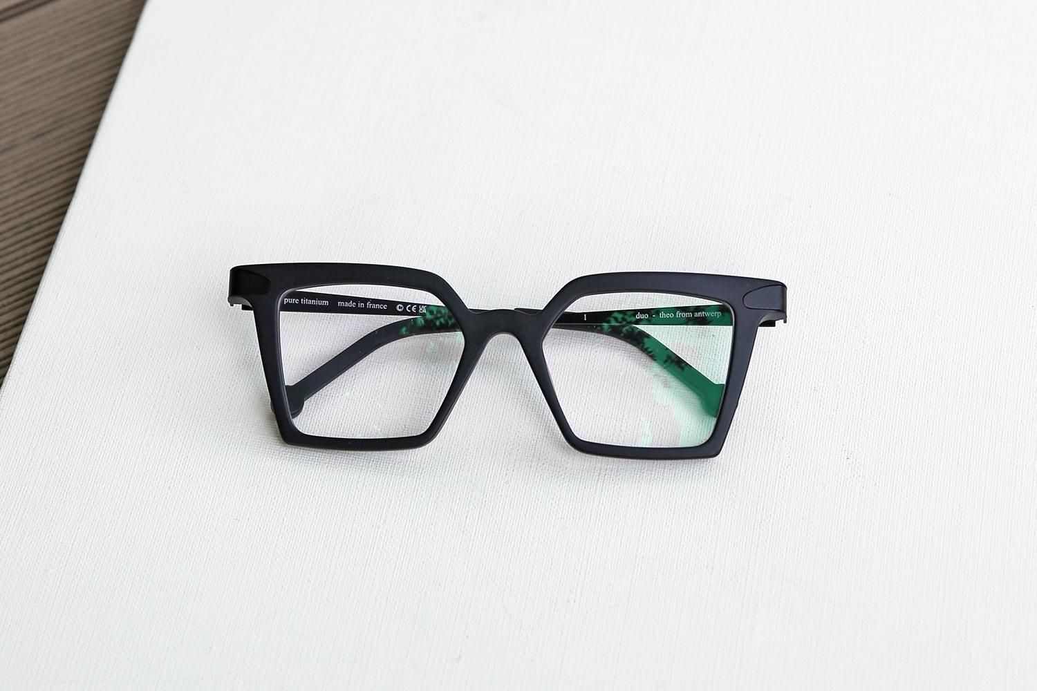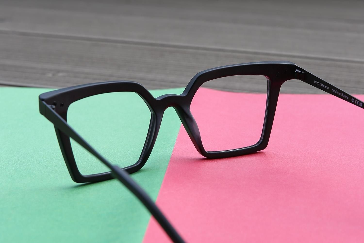 同色でまとめたブラックは、アセテートの黒とメタルの黒とのコントラストがなんとも独特な雰囲気を纏います。