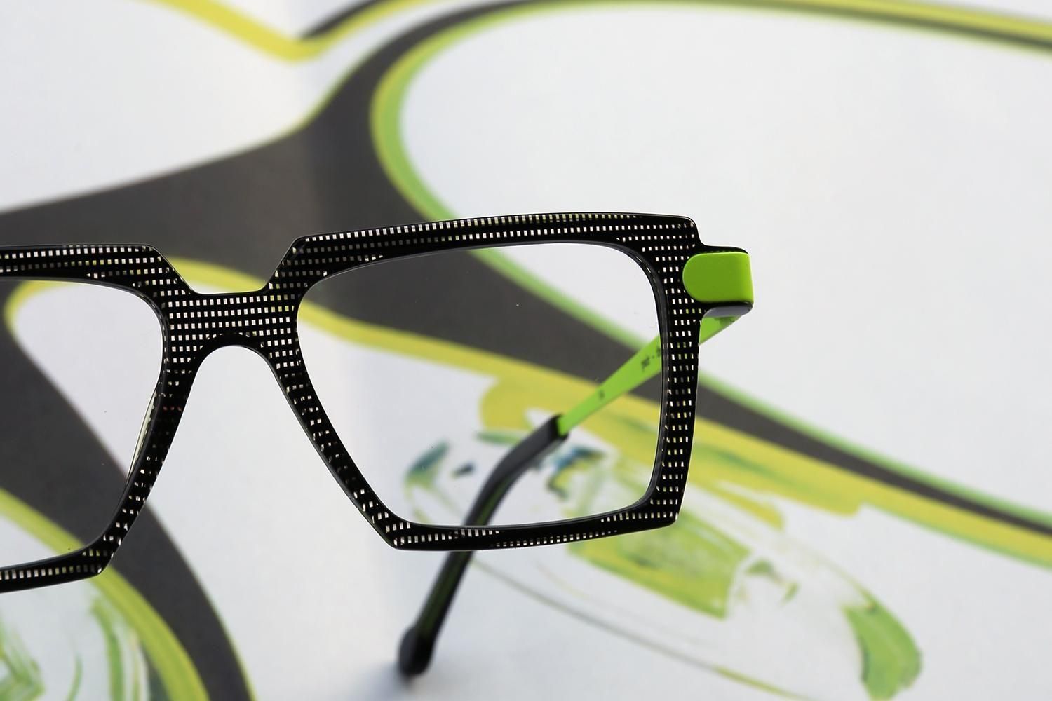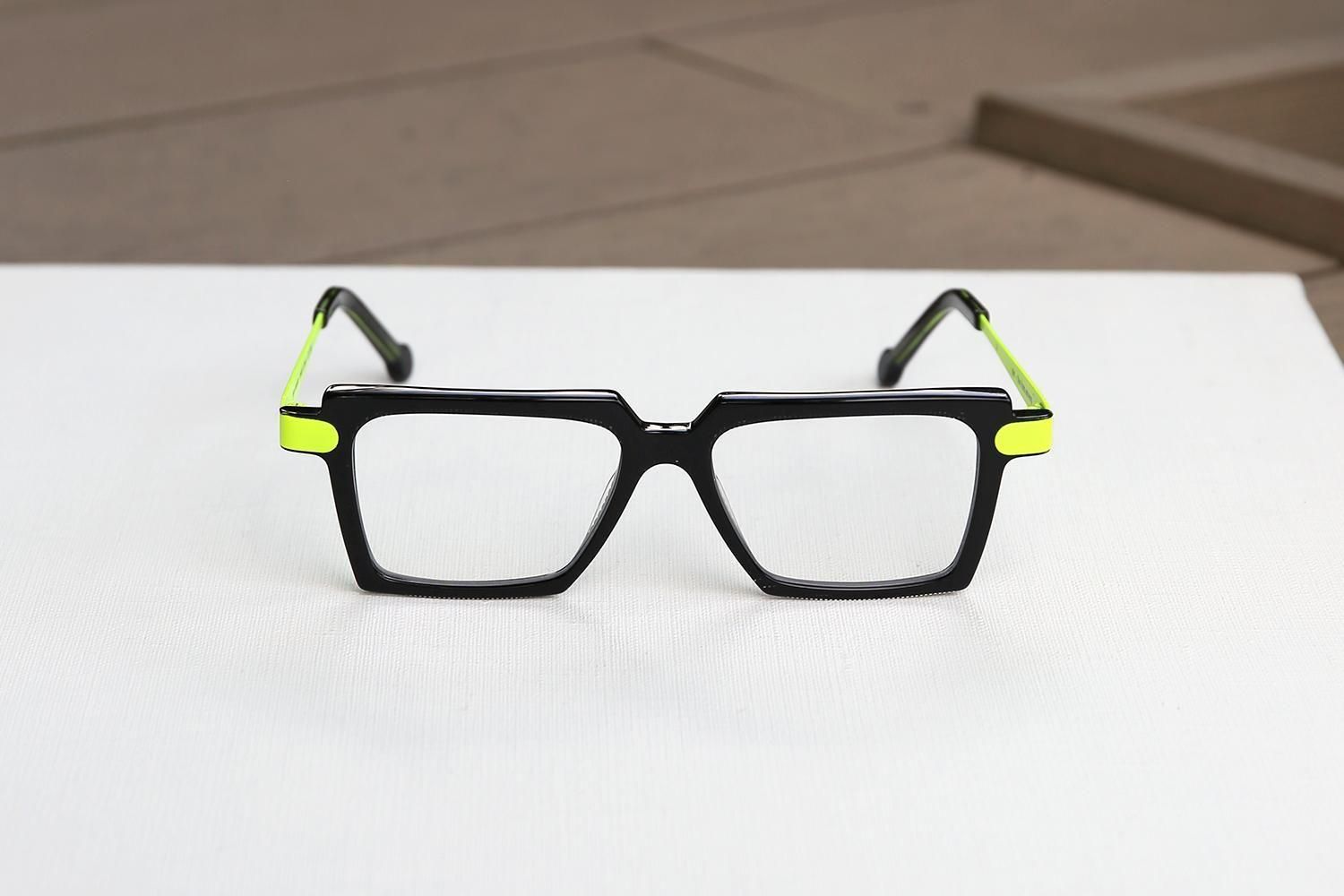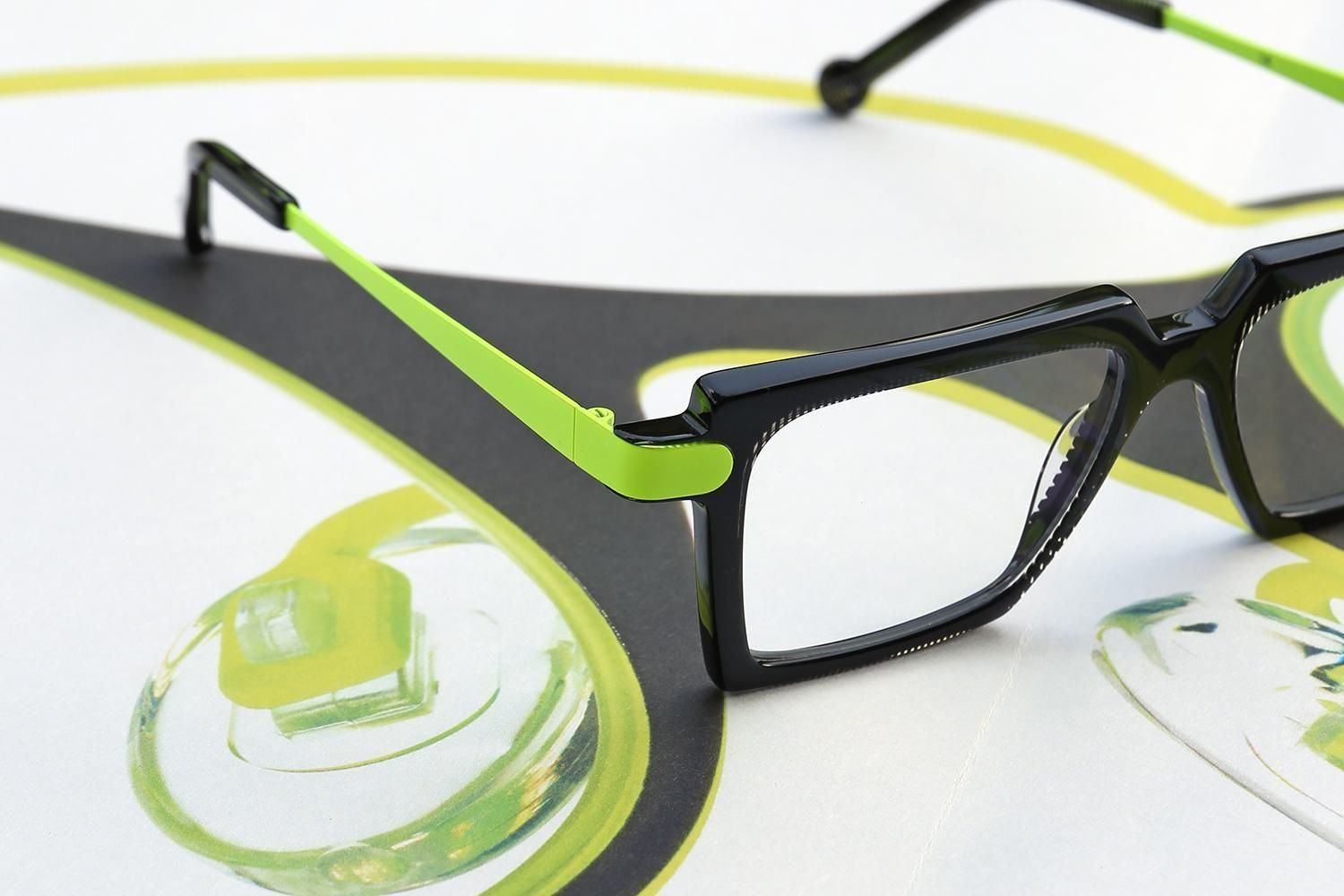 大胆なシェイプと色彩のコントラストが、掛ける人の顔をキャンバスに見立て、個性的な表情を創り出します。シンプルな服装にも映える、主役級のアイウェアです