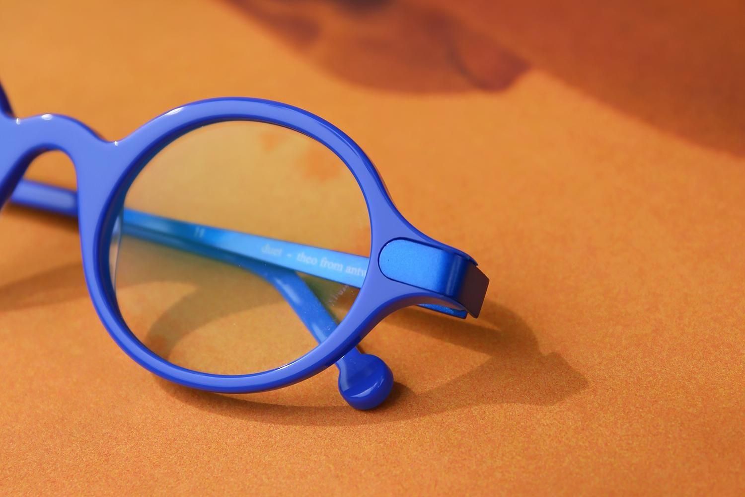 シェイプは、角を丸く削ぎ落としたまろやかな曲線が特徴的な優美なラウンドシェイプです。掛け手の表情に優しさと知性を灯し、見る人に親しみやすい印象を与えます。theoらしいユニークなエッセンスは保ちつつも、日常のコーディネートに違和感なく溶け込む融和性を持っています。